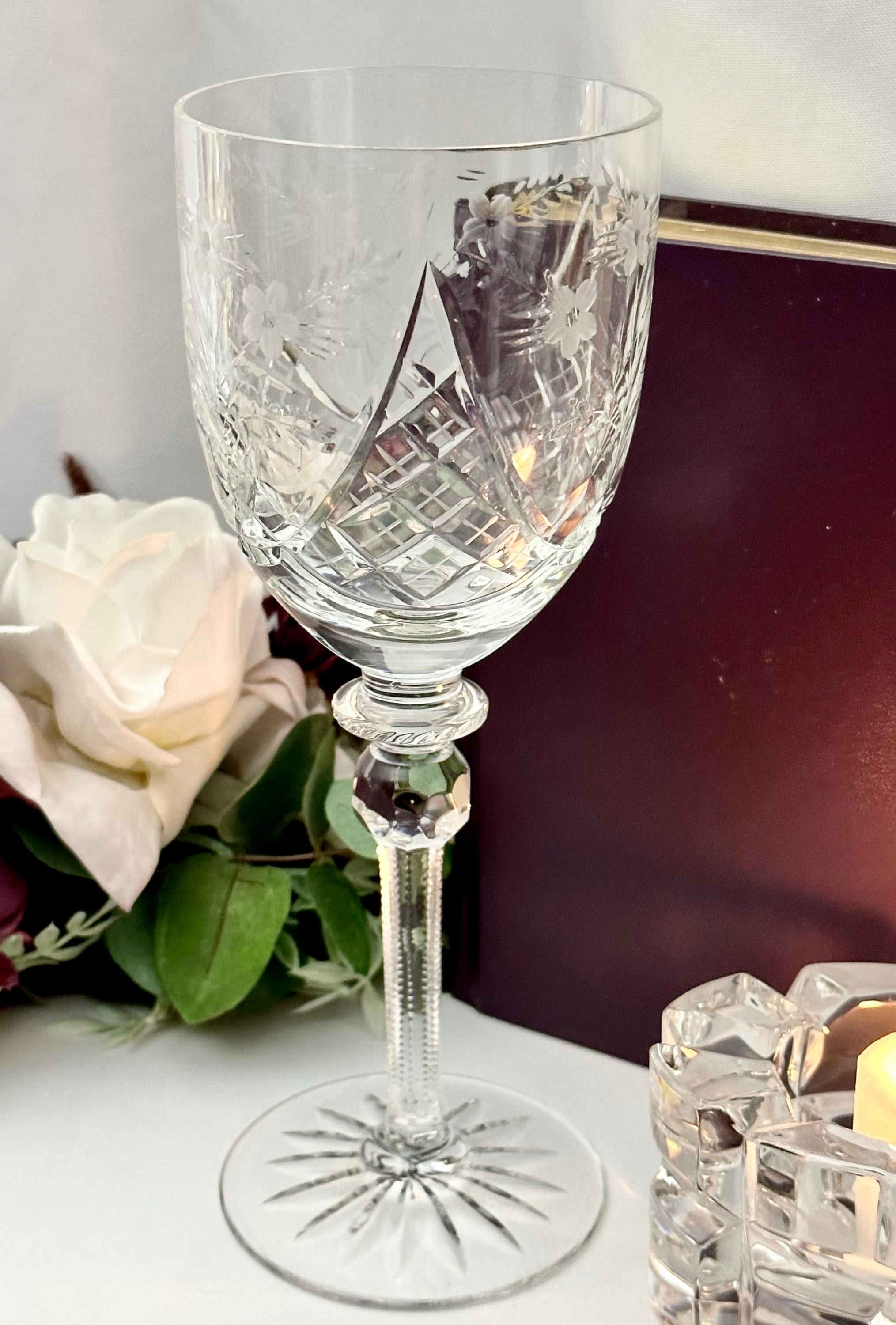 This is for 1 Rogaska Water Goblet in the Jasmine pattern. These were produced in Yugolasvia and are clear with floral cuts on the bowl and stem. This measures: 9 inches tall x 3.25 inches in diameter.