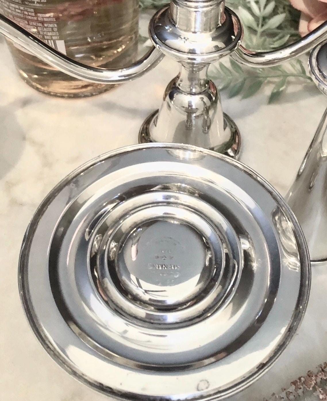 The middle is unmarked while the arm is marked Gorham, Sterling, reinforced and with an L. **There is slight twisted crinkling at the base shown in the pictures and is discounted for the issue which does not effect the beauty of the item!
