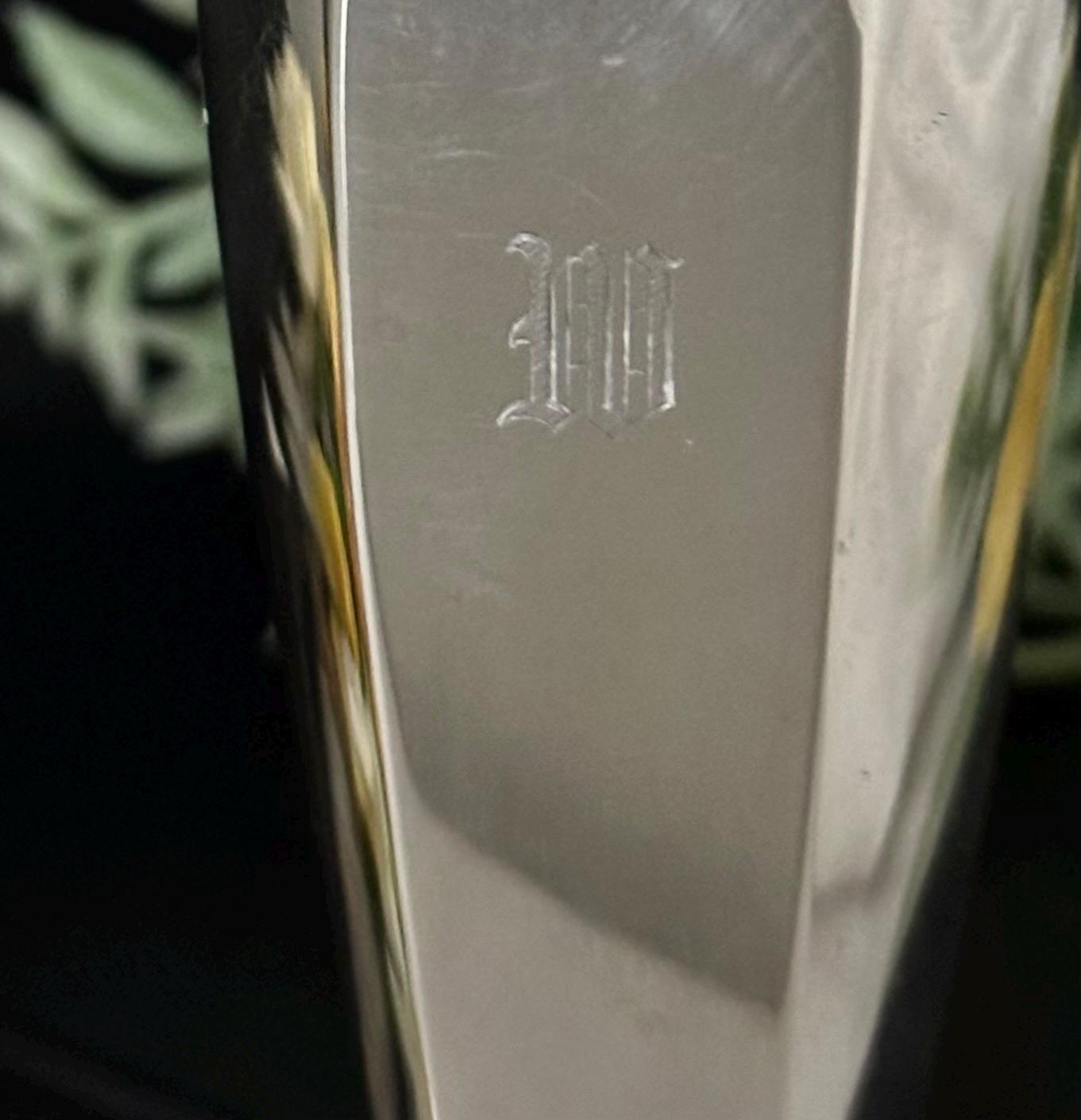 This lovely pair is in Pattern #17659. They are marked with the following: 4 0 8 9 / Sterling Silver / 925-1000 / M (makers mark for John Moore II / dated 1907 - 1947). Note the imperfect way the numbers are stamped on either side of the "Makers" as this is important to fact that these are not reproductions as they are hand stamped originals.