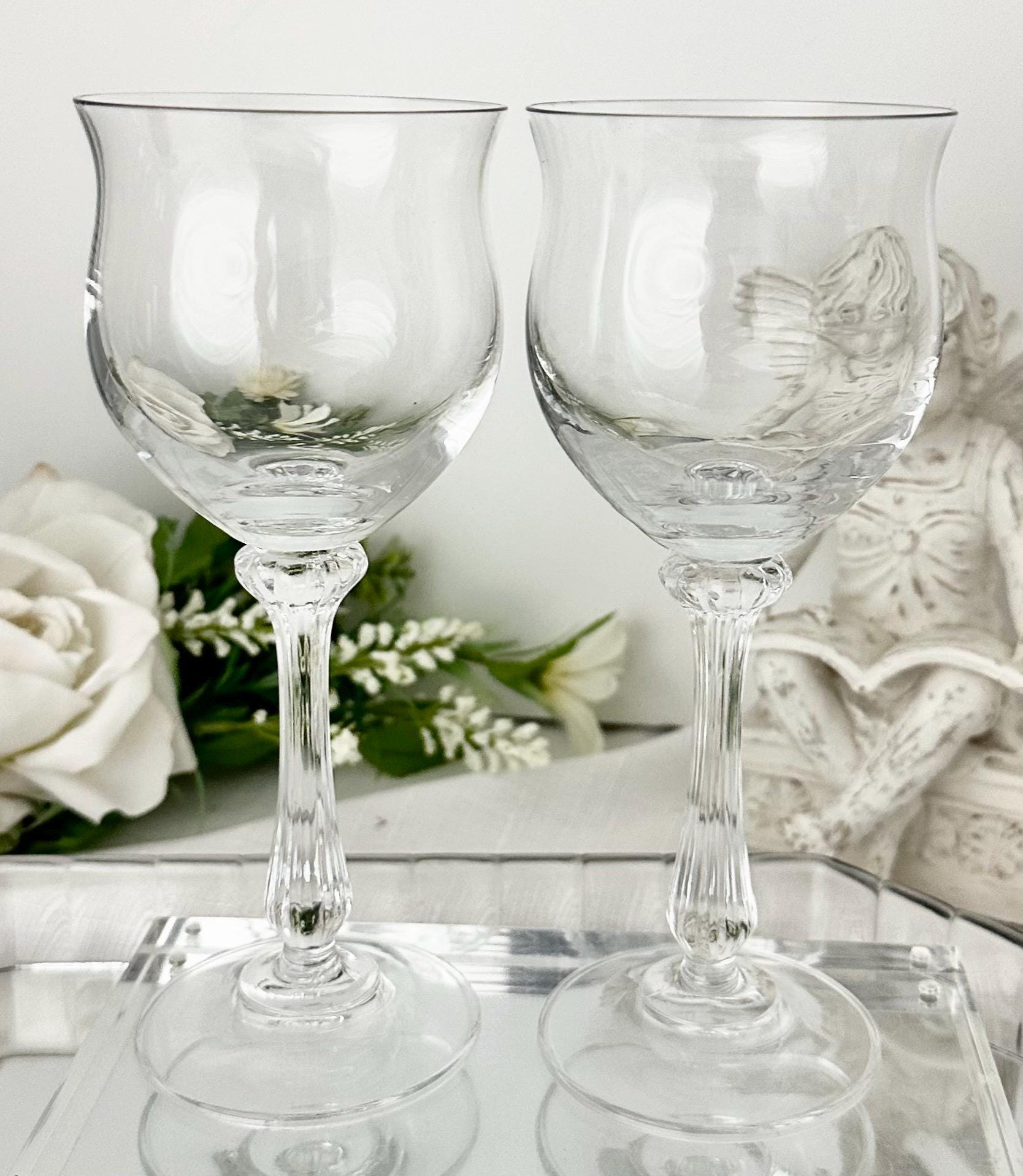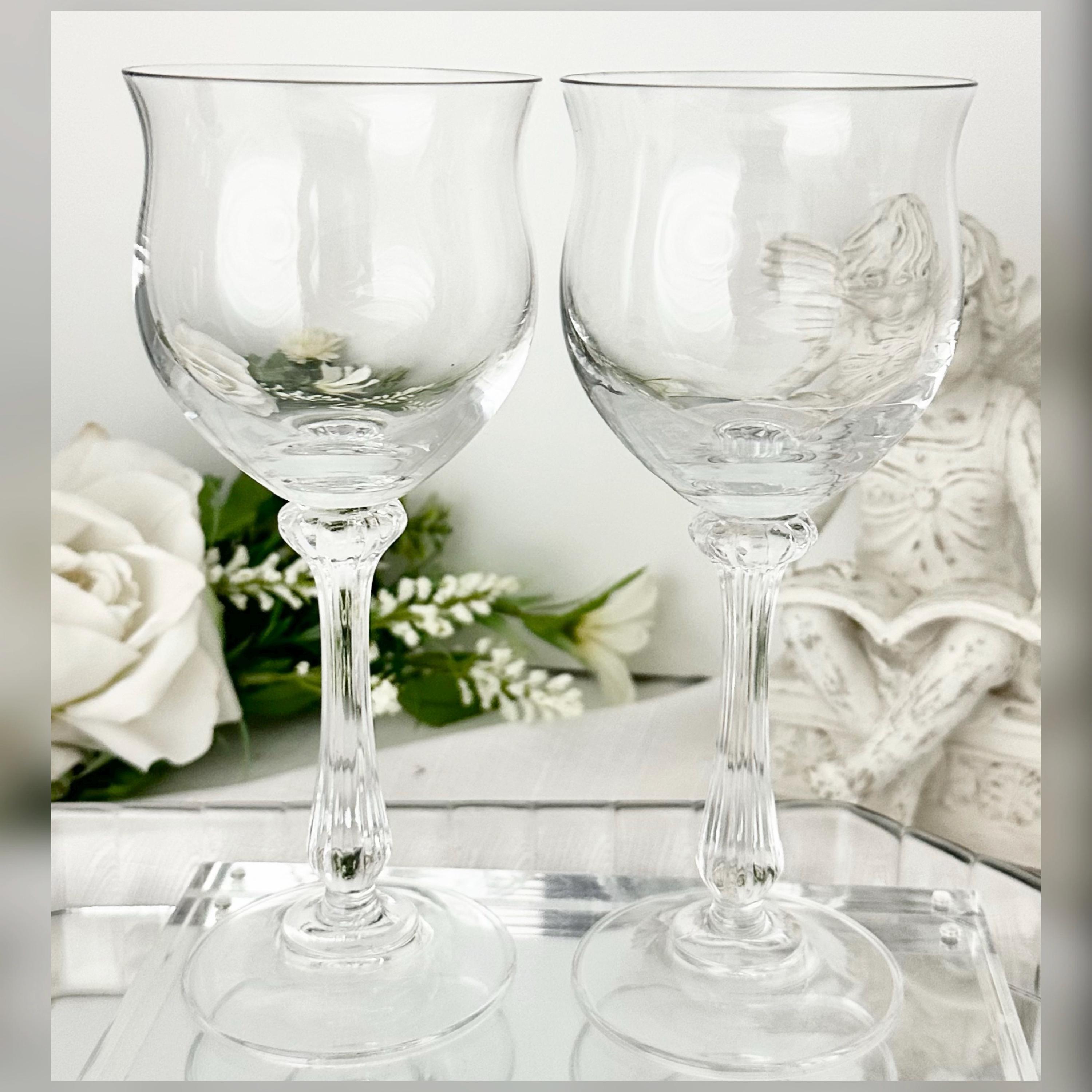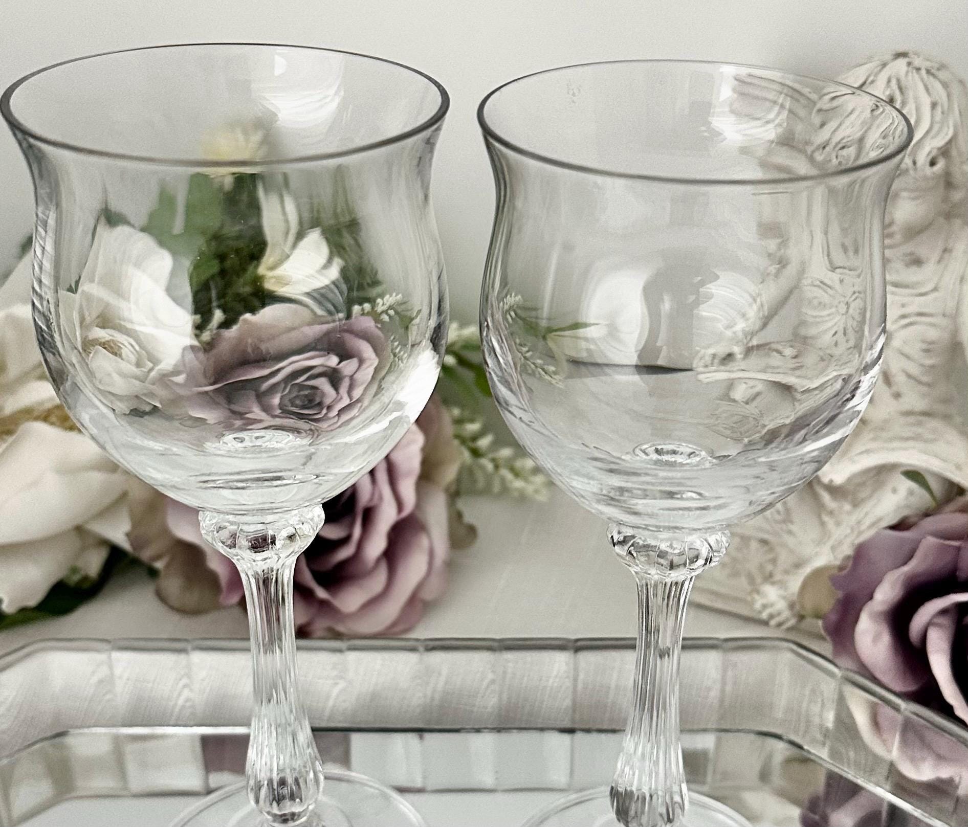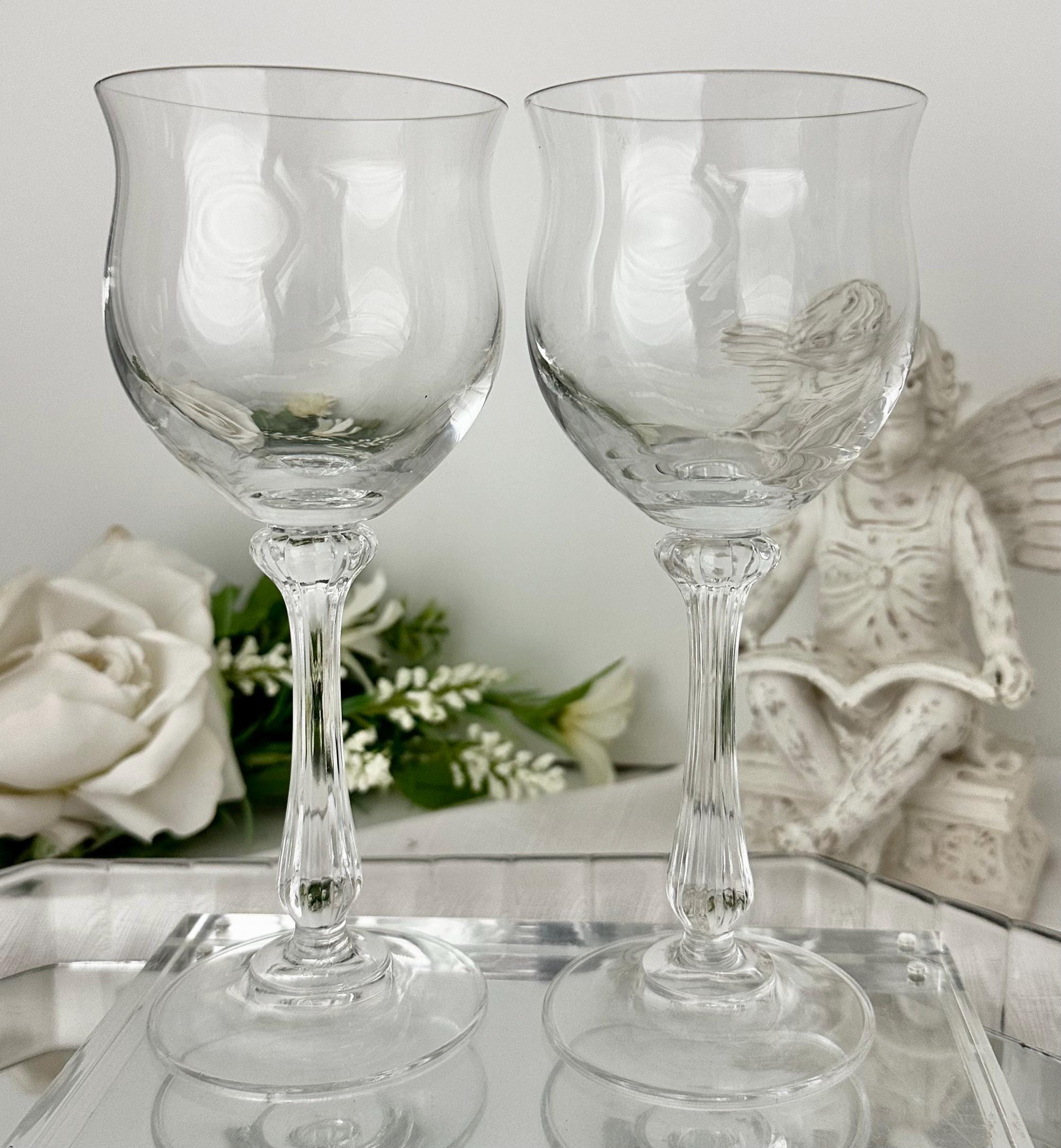 This is for a pair of Vintage Mikasa Glasses. These are in the Mikasa Ardmore pattern and in the wine Size. They have a plain flaired bowl and a textured round shaped stem and a plain foot. These lovely glasses measure: 7 1/8 inches tall x 2 7/8 inches in diameter. They were in production from 1982 to 1993 and are now discontinued.