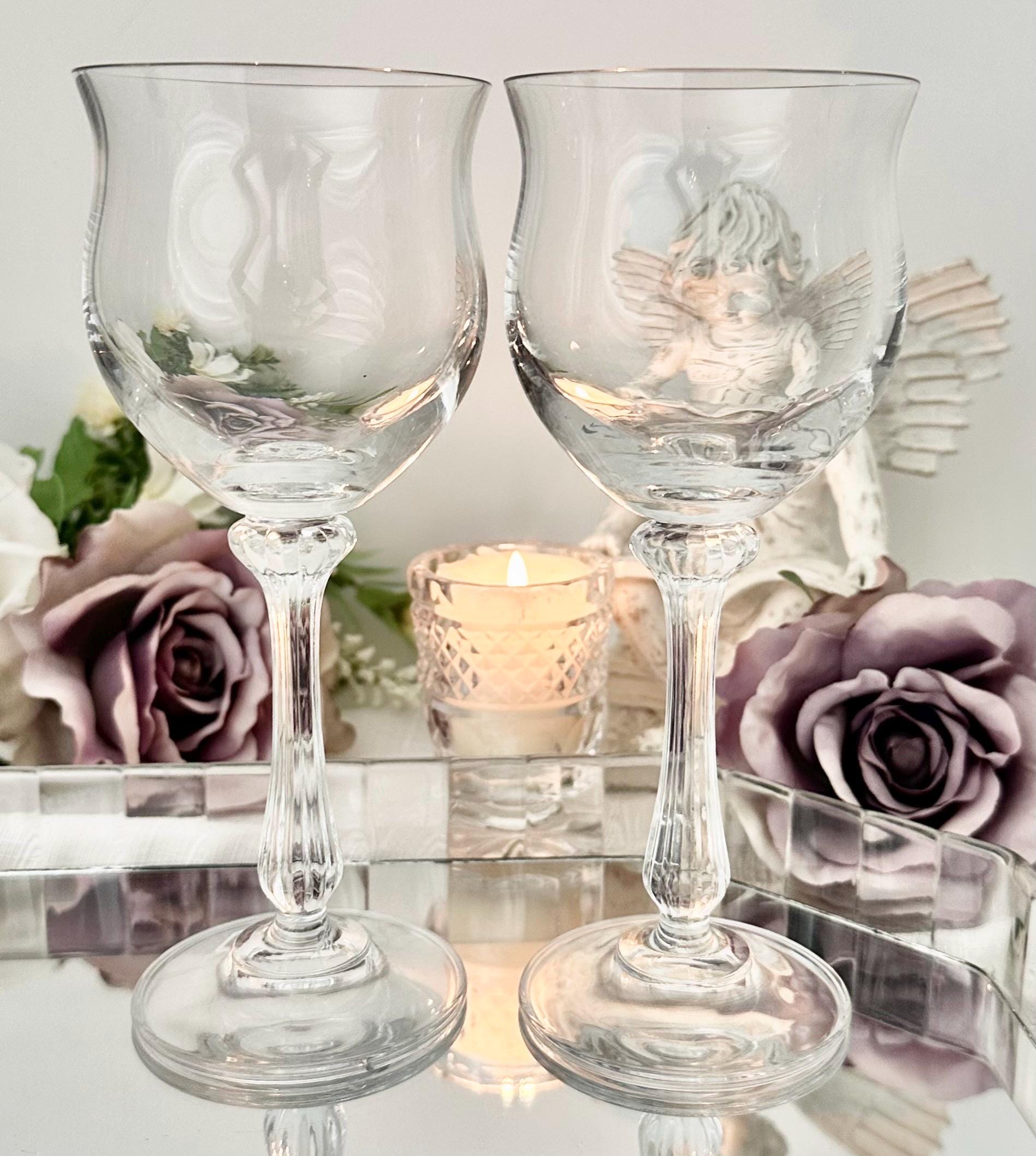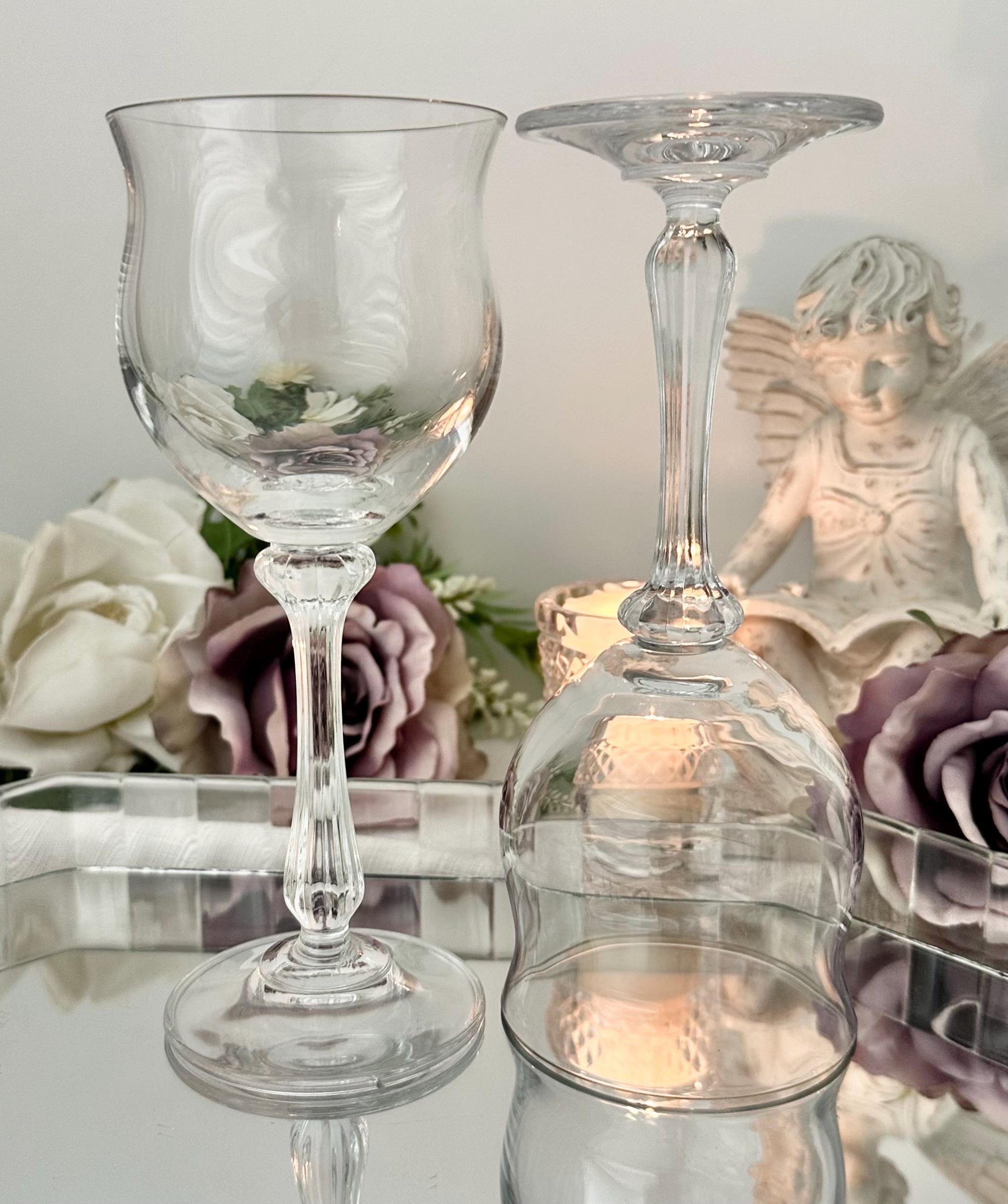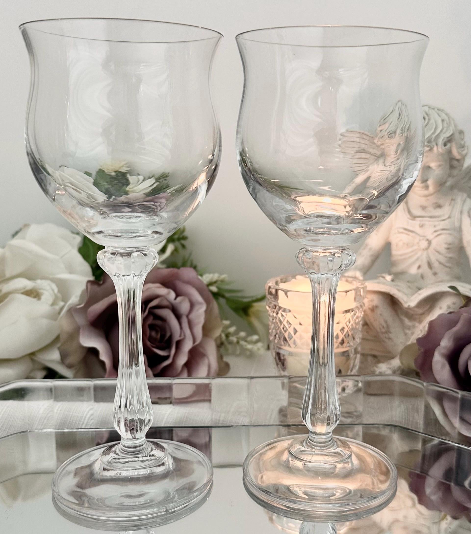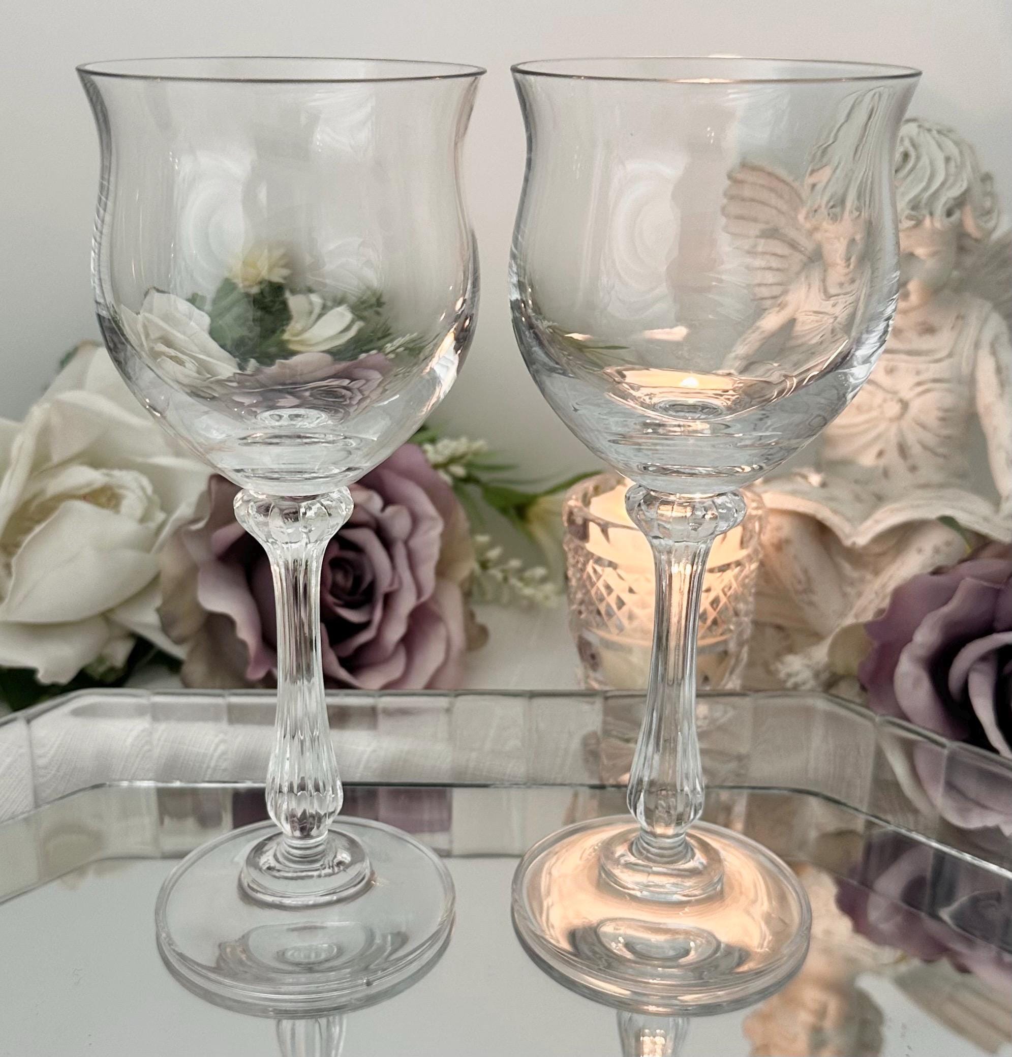 This is for a pair of Vintage Mikasa Glasses. These are in the Mikasa Ardmore pattern and in the wine Size. They have a plain flaired bowl and a textured round shaped stem and a plain foot. These lovely glasses measure: 7 1/8 inches tall x 2 7/8 inches in diameter. They were in production from 1982 to 1993 and are now discontinued.