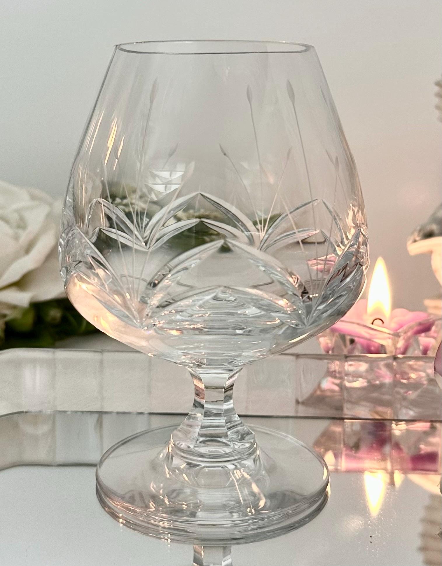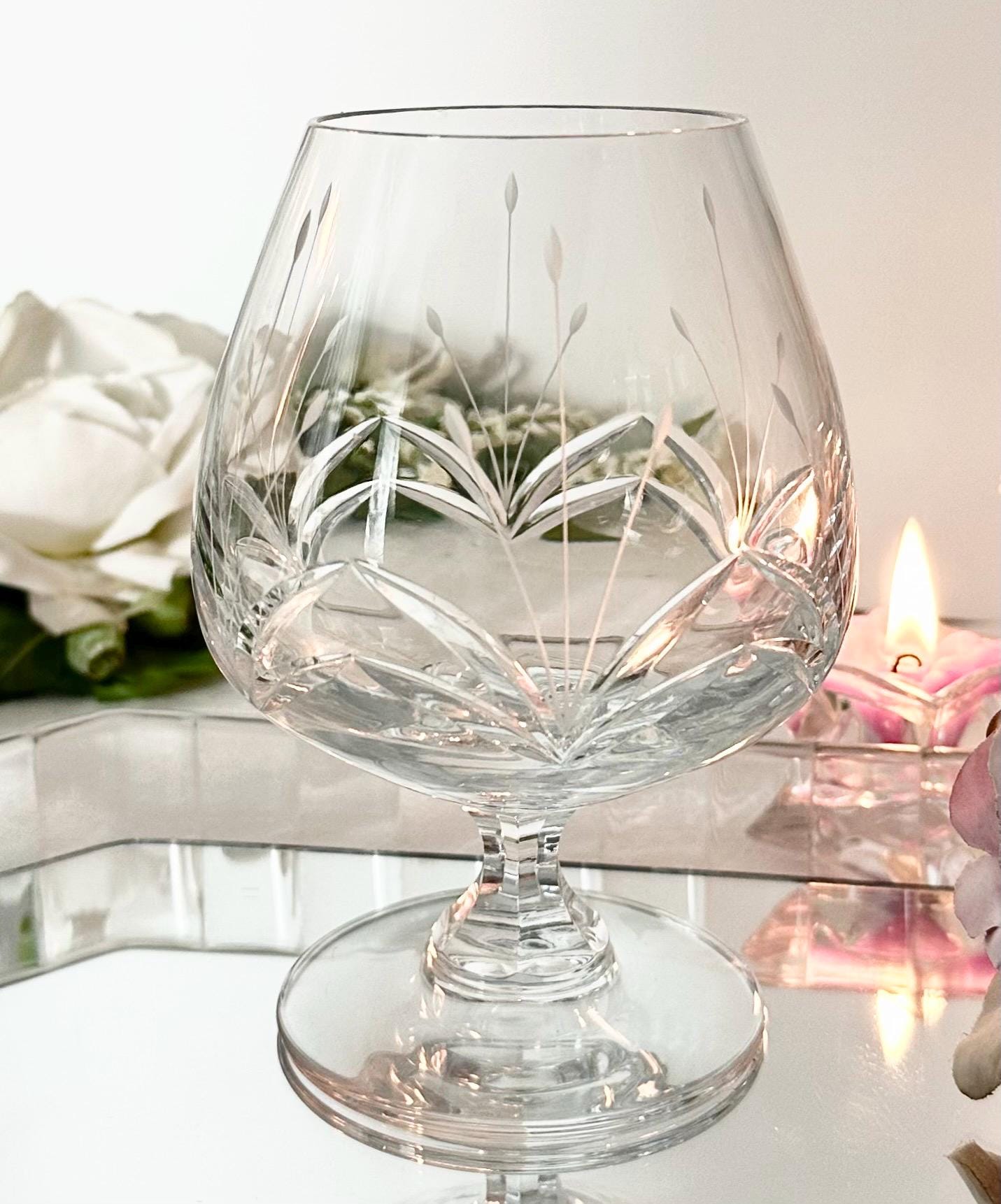This is for 1 Mikasa Petit Points Brandy Glass. This barware glass was produced from 1995 to 2004 and is now discontinued. This brandy / cognac glass is decorated with plants / small bud - flowers and leaves on the bowl and has a multi sided stem.