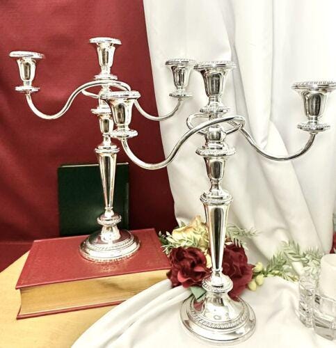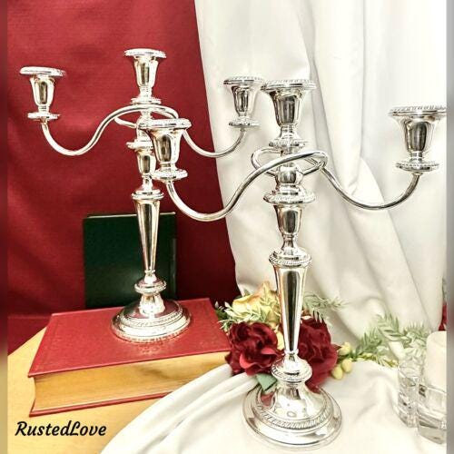 This is for a beautiful large Pair of Sterling Silver Candelabras. These are marked on the base with makers name of Crown and pattern number 306. These are weighted and reinforced with other materials.