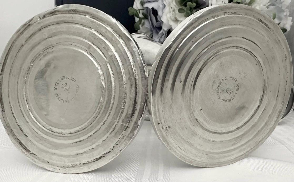 ** Note the pictures to see marked spots to show the dents and marks on the silver on one base. There are no other issues on the other base. These are heavily discounted due to the one bases issues.