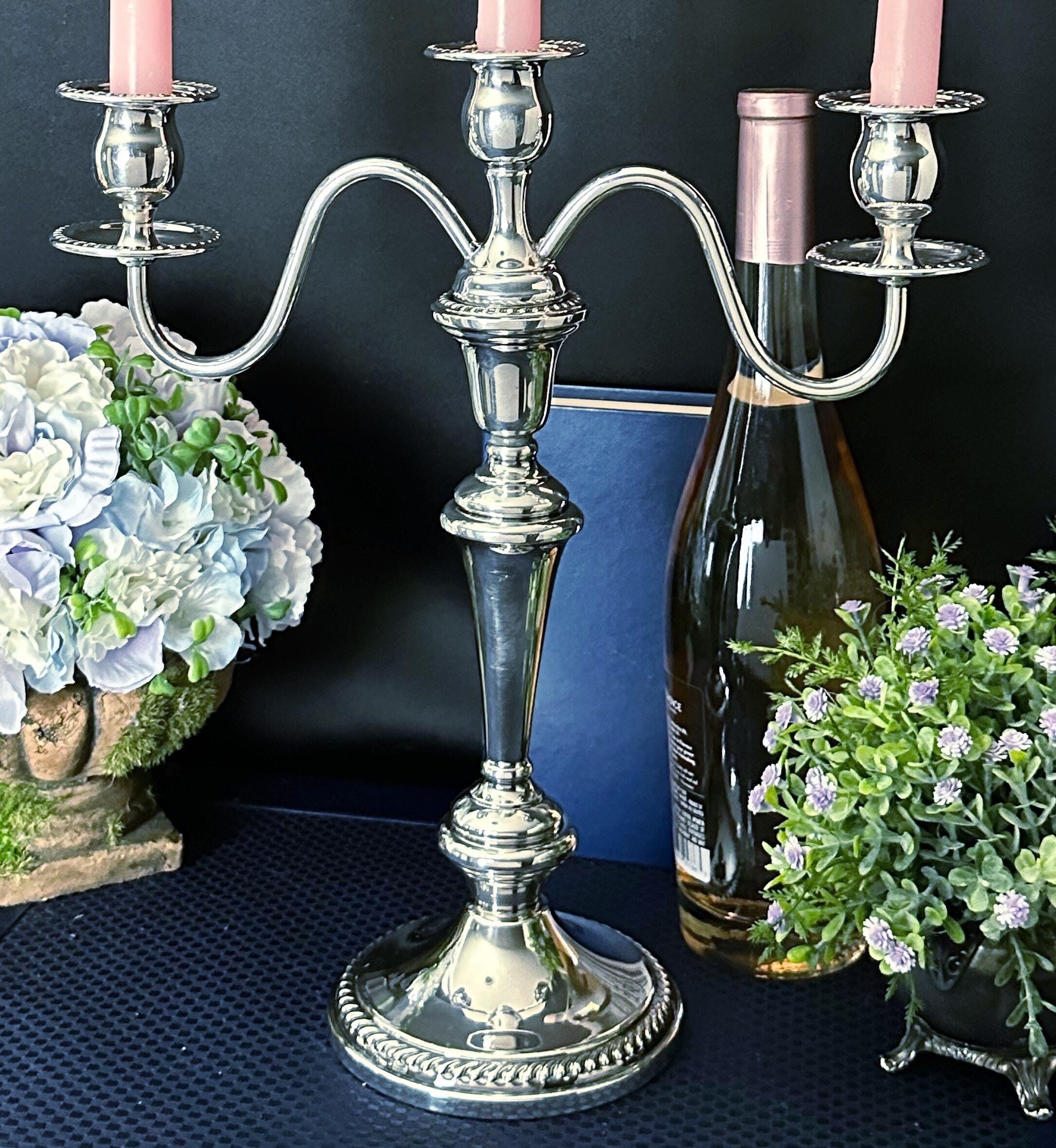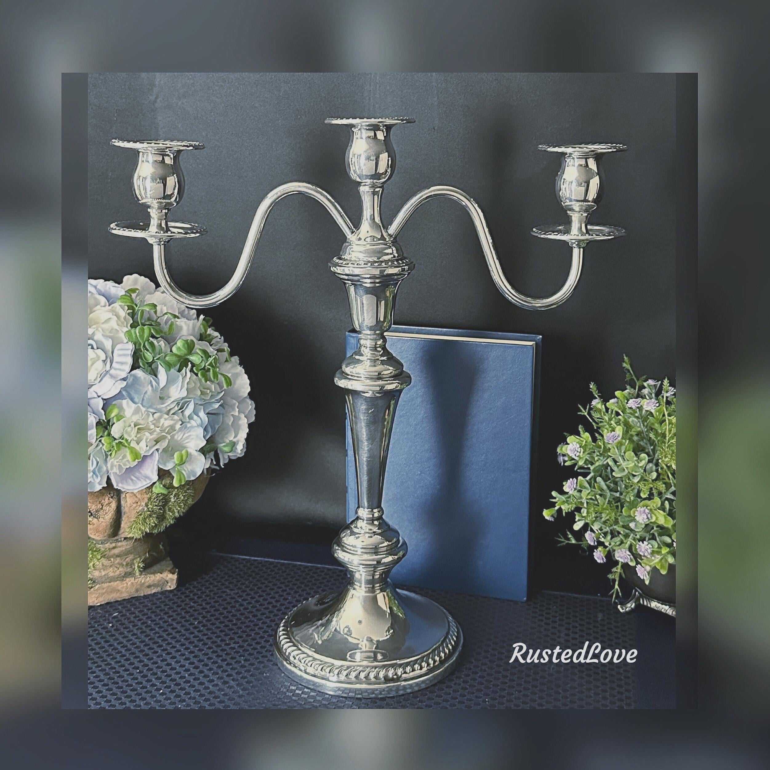 This is for a wonderful Cheshire Silver Silver Plated Candelabra. This elegant candle holder is in pattern #212 and measures: 14 inches tall x 13 inches wide x 5 inches deep. This is comprised of 4 pieces to arrange to make different configurations of the candle holder.