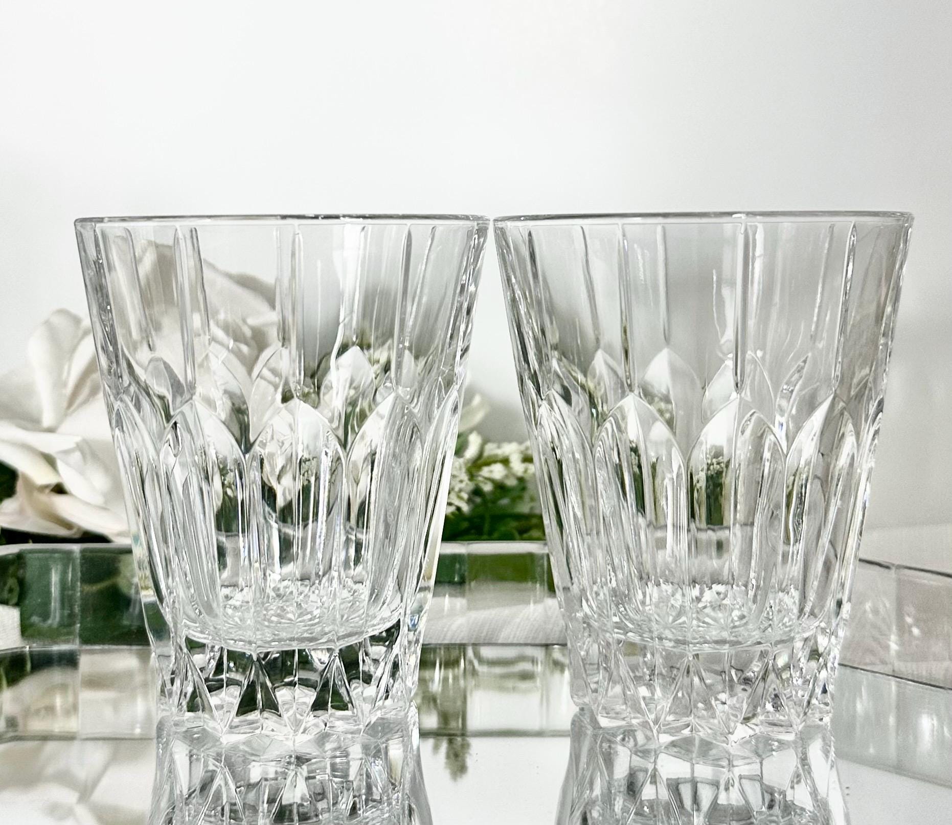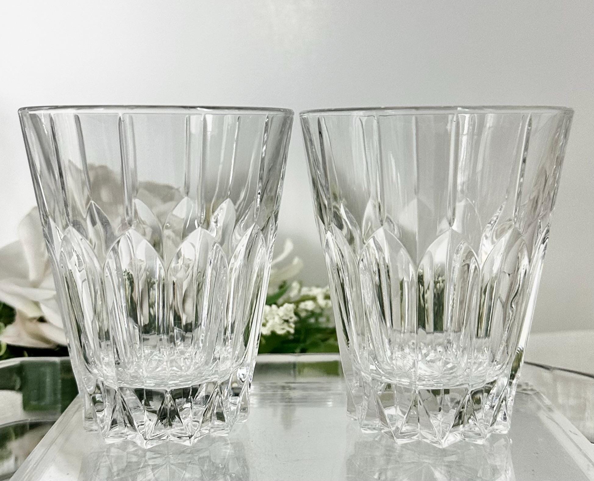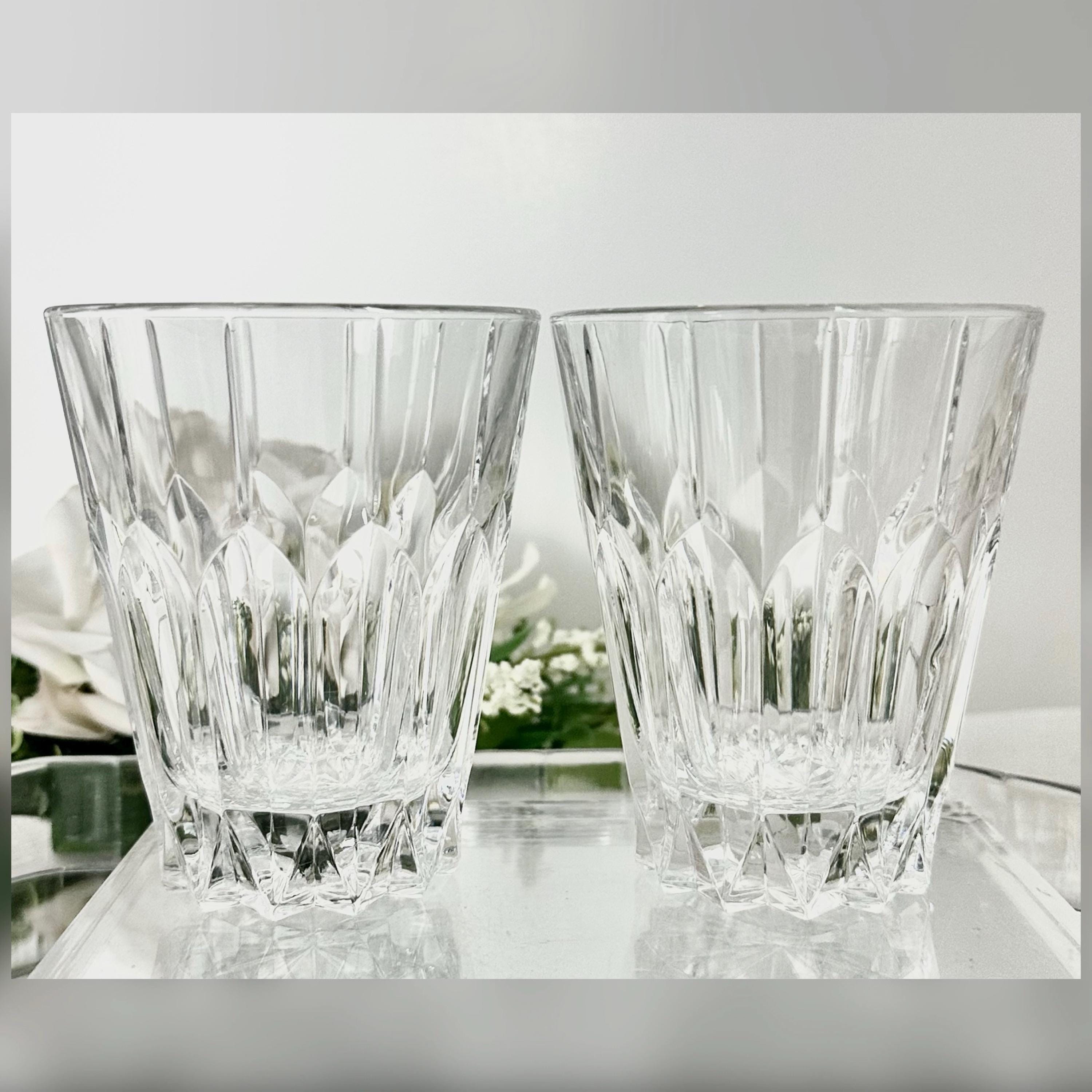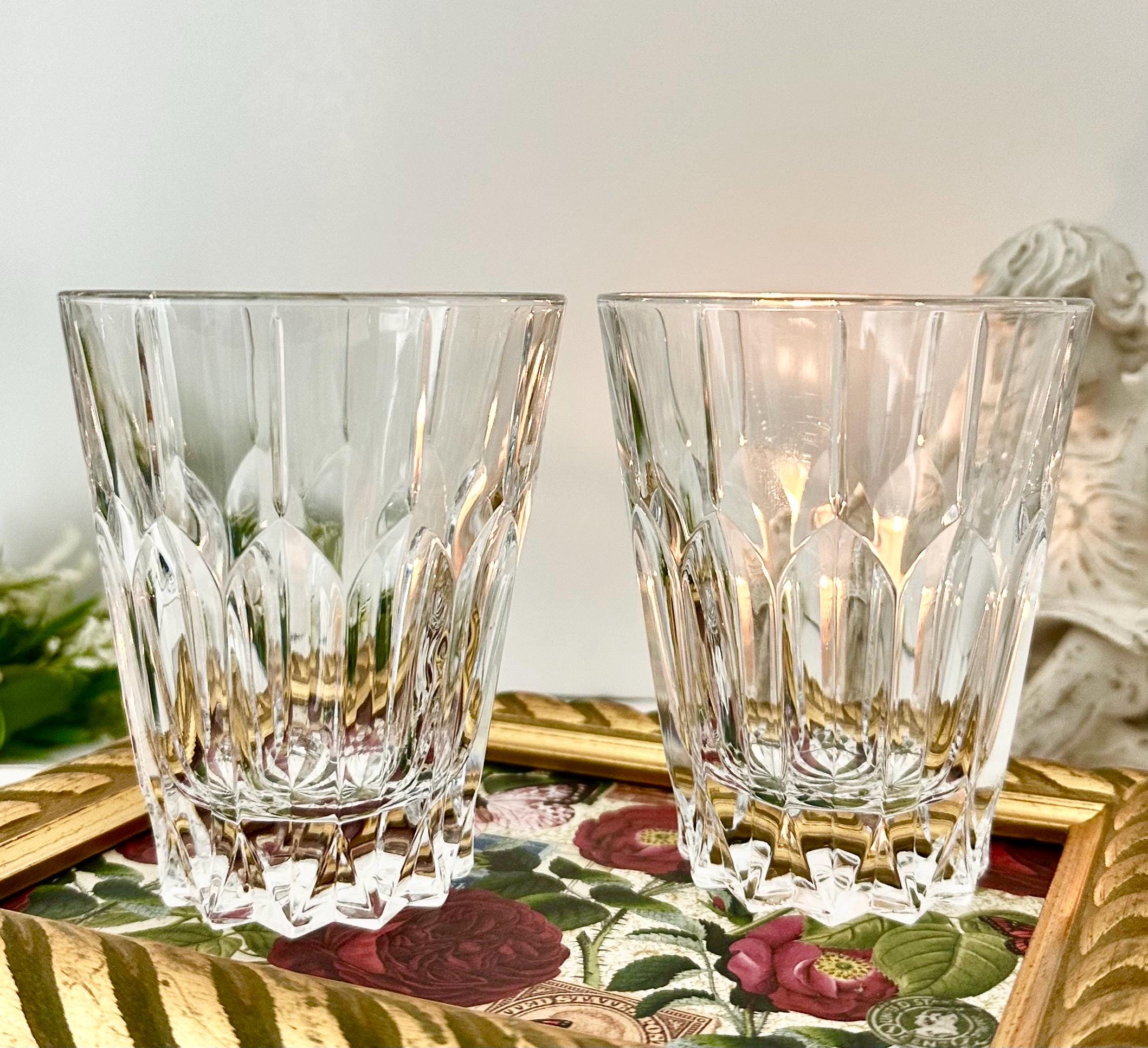 This is for a vintage set of 2 Double Old Fashioned Glasses from Mikasa. These are in the Sentry pattern. These are clear blown glass with vertical cuts and were produced in 1999. These measure: 4.25 inches tall with a diameter of 3.5 inches and are in a rare hard to find pattern.