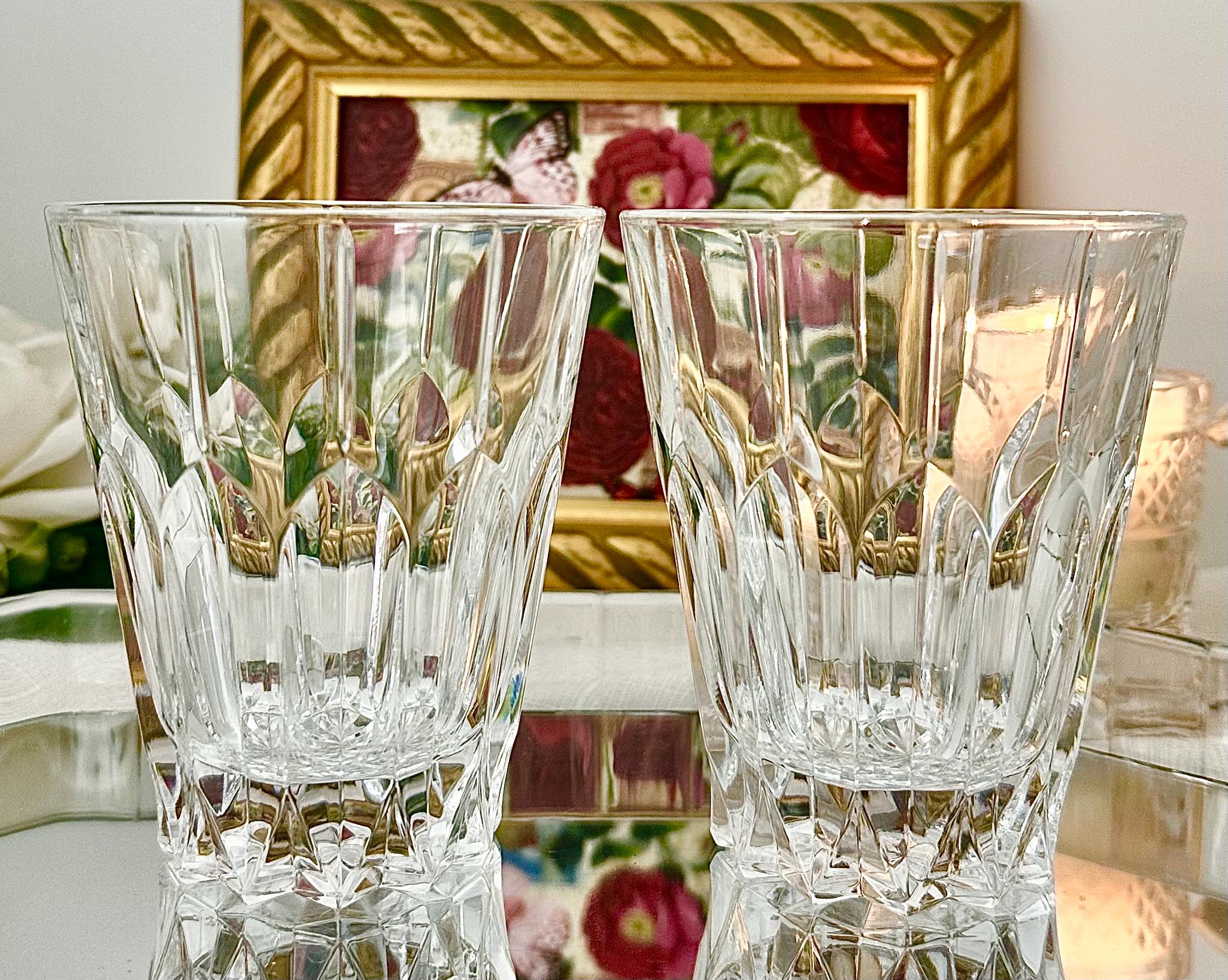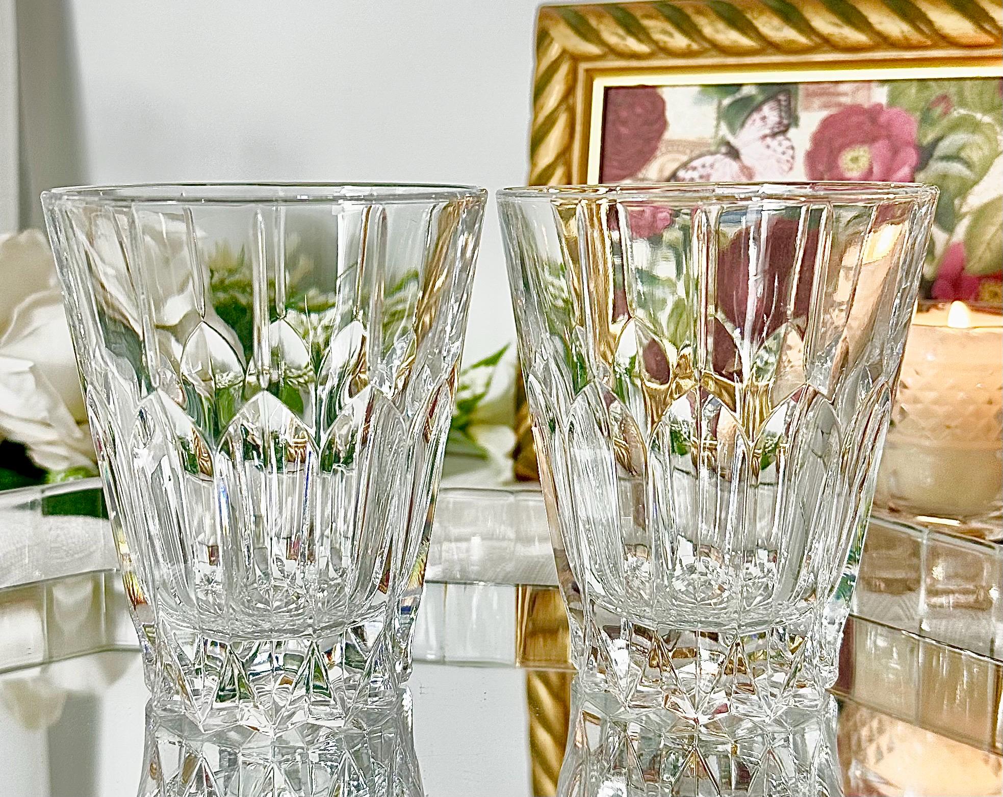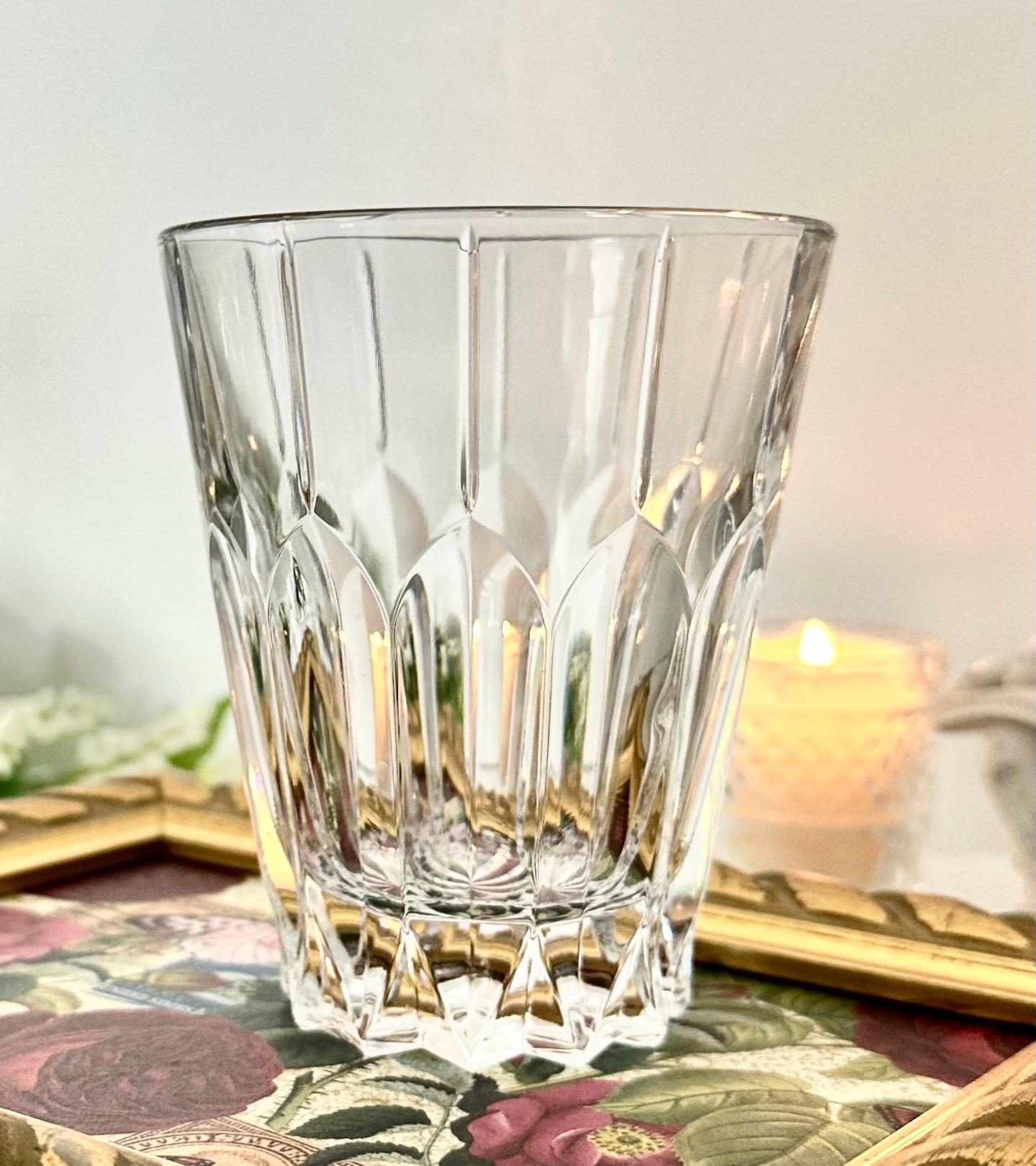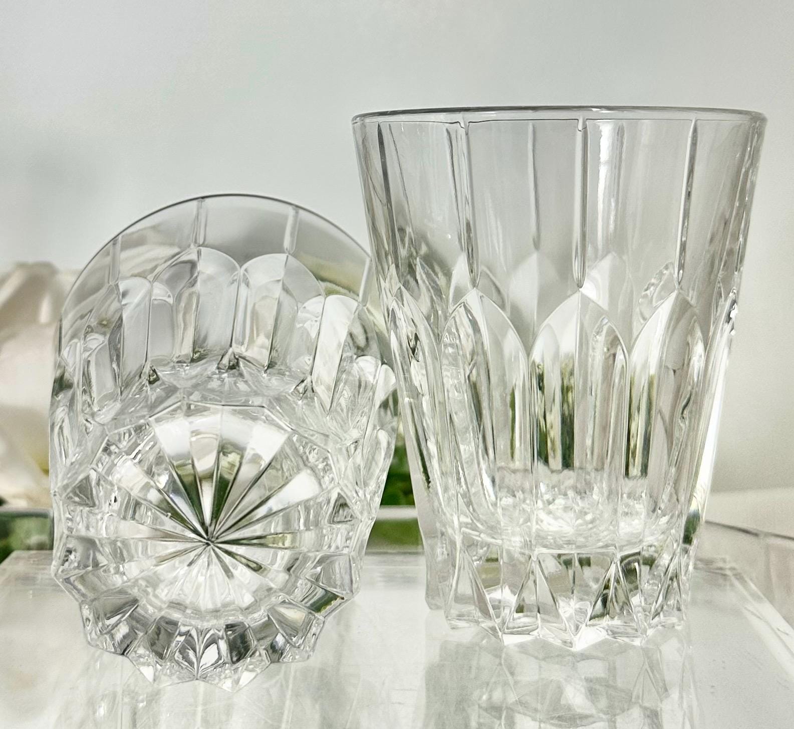 This is for a vintage set of 2 Double Old Fashioned Glasses from Mikasa. These are in the Sentry pattern. These are clear blown glass with vertical cuts and were produced in 1999. These measure: 4.25 inches tall with a diameter of 3.5 inches and are in a rare hard to find pattern.