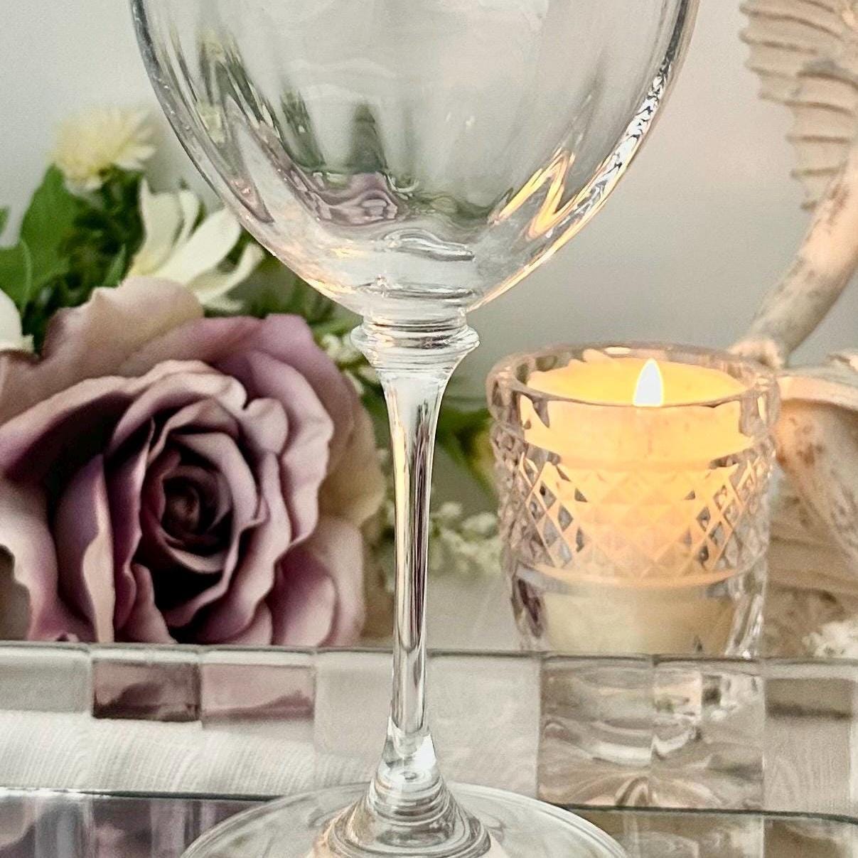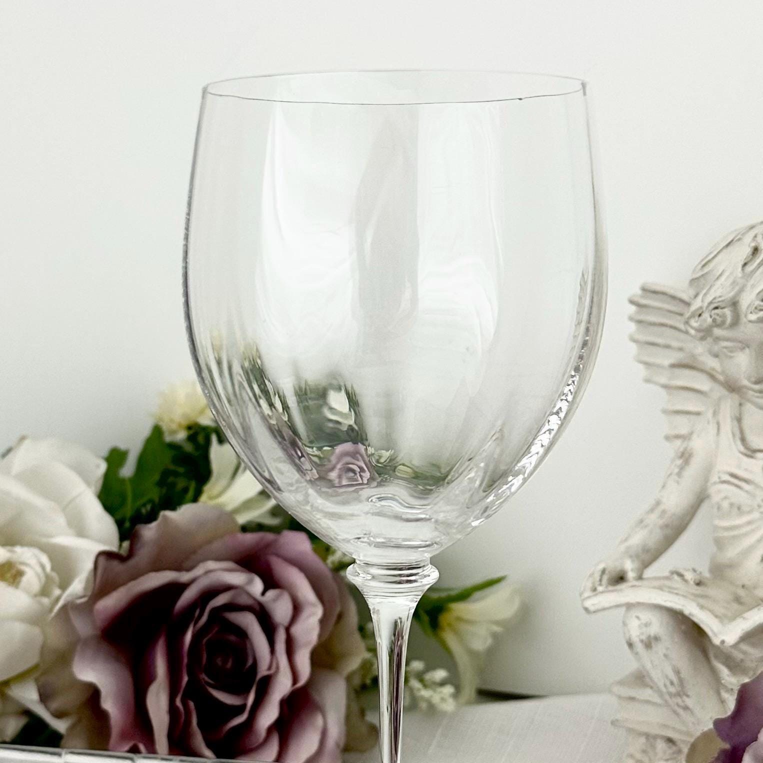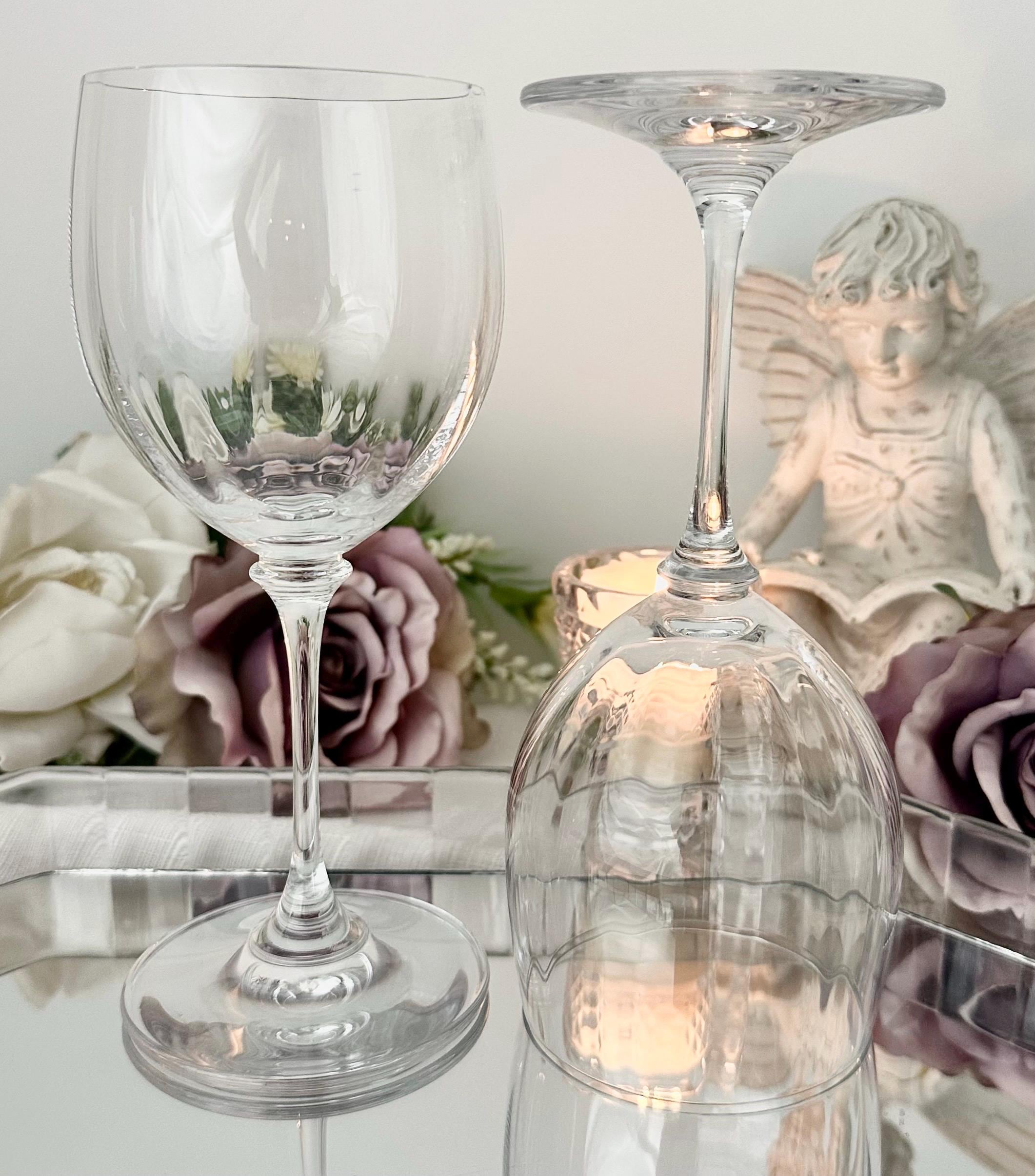 These Mikasa wine glasses are blown glass and have an optic bowl and were crafted in Hungary / Austria from 1992 to 2019 and then discontinued.