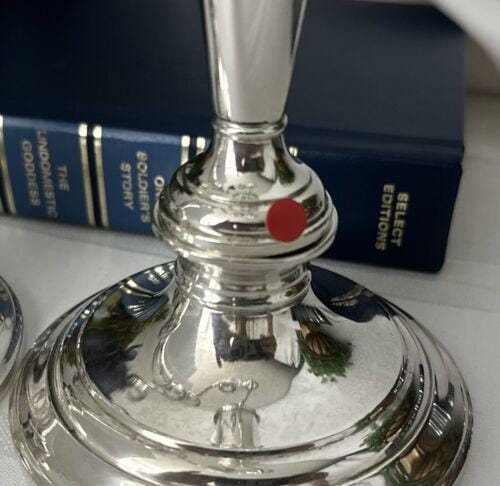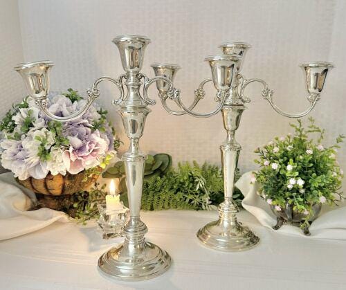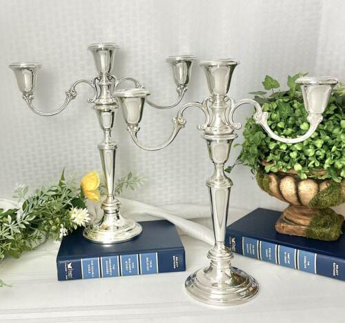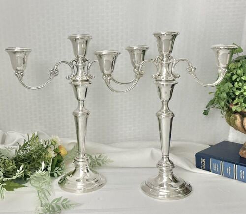 This is for a matching Pair of Vintage Sterling Silver Candelabra from Gorham Silver in the Puritan pattern. The base is marked 808/1 and has the makers hallmarks and reinforced. The arm on these is beautiful with the scroll design to add interest to the candle holders.