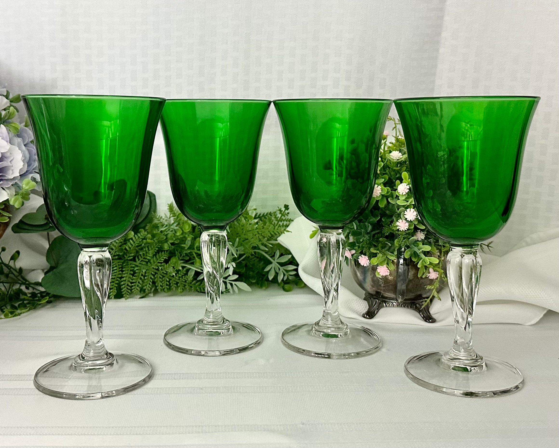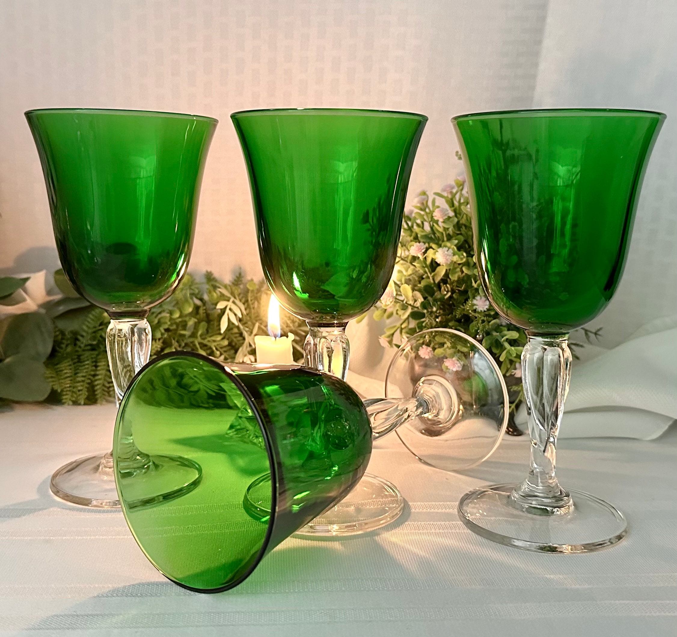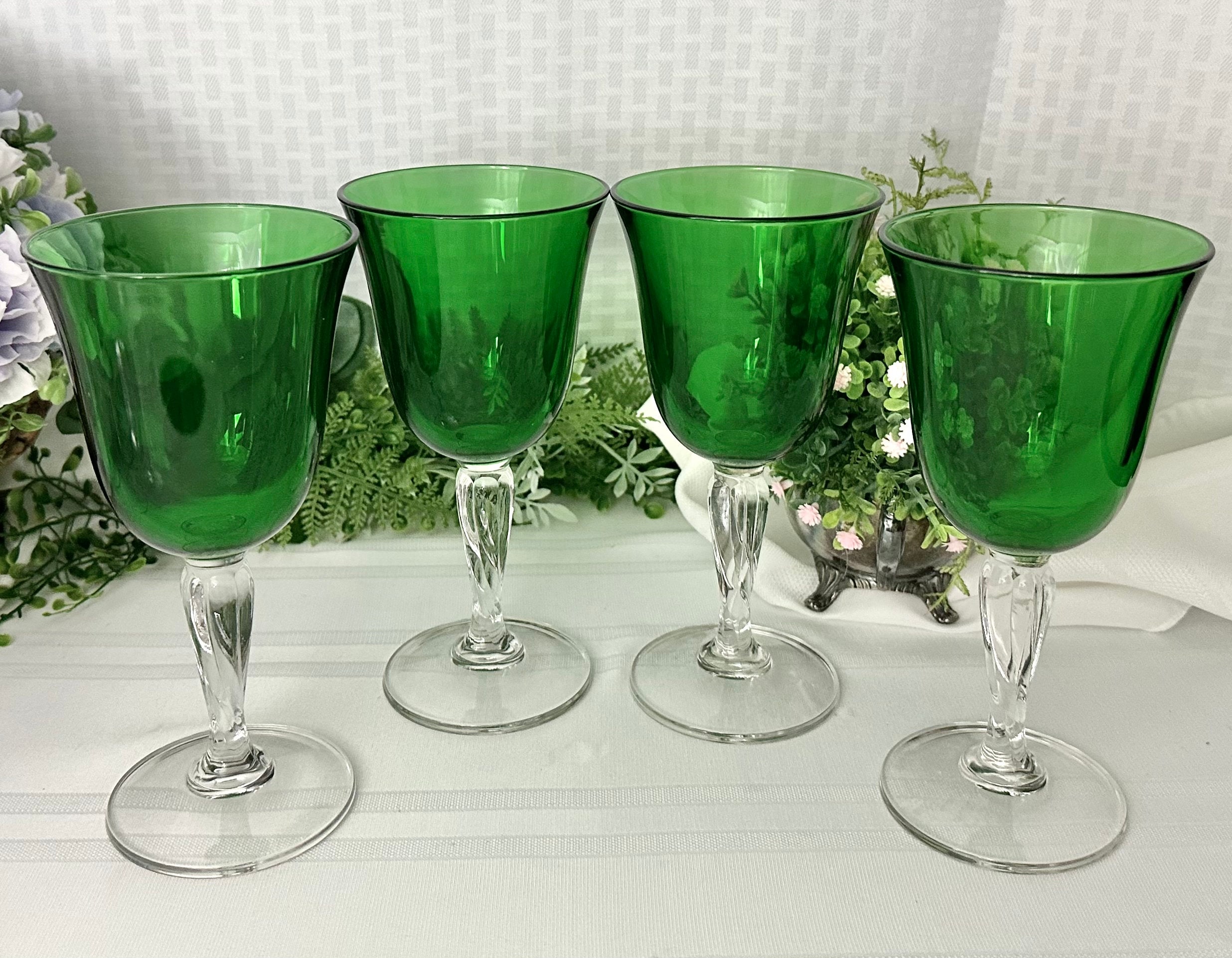 This is for a set of 4 Cristal D'Arques-Durand Wine Glasses in the Casual Setting pattern in the Emerald Green color.