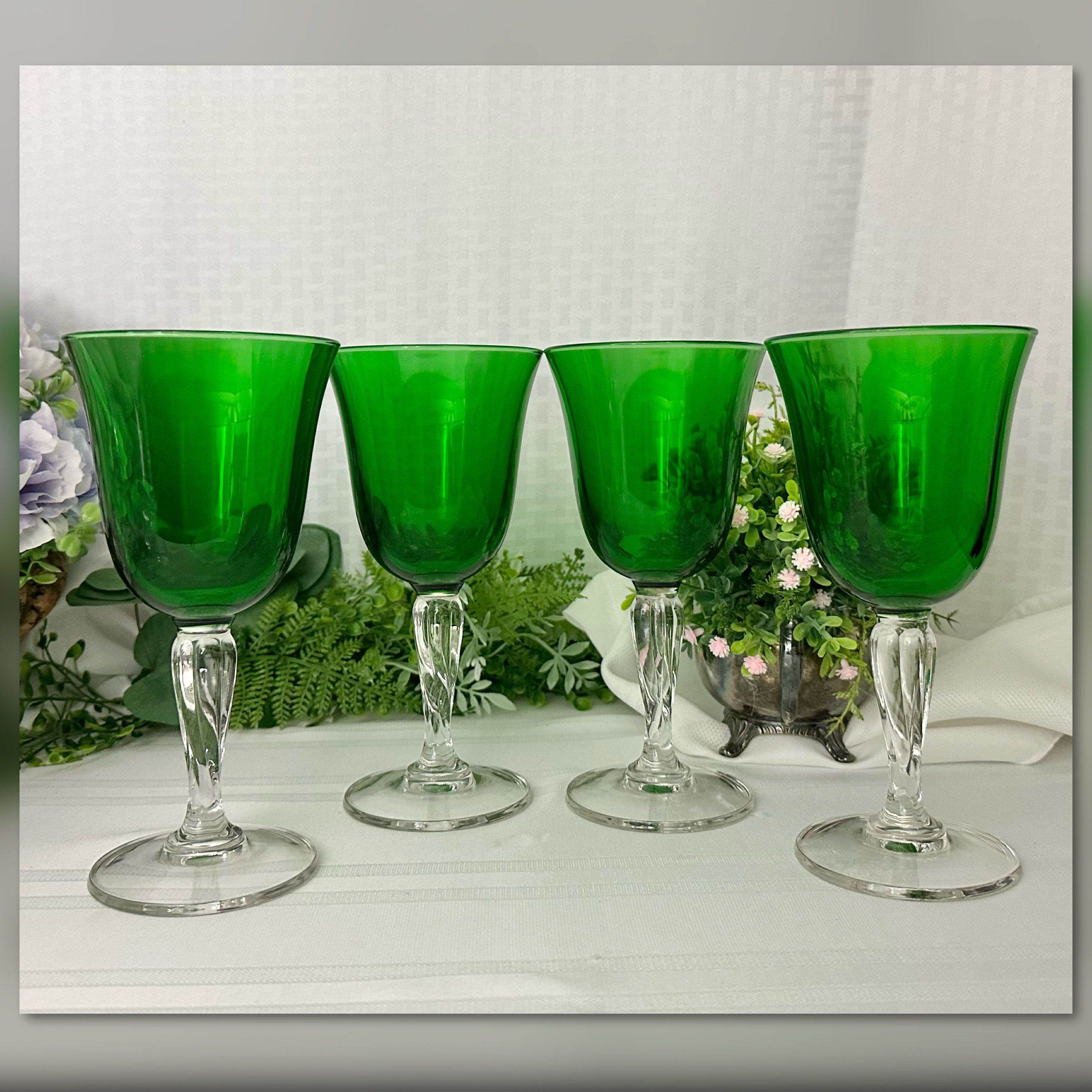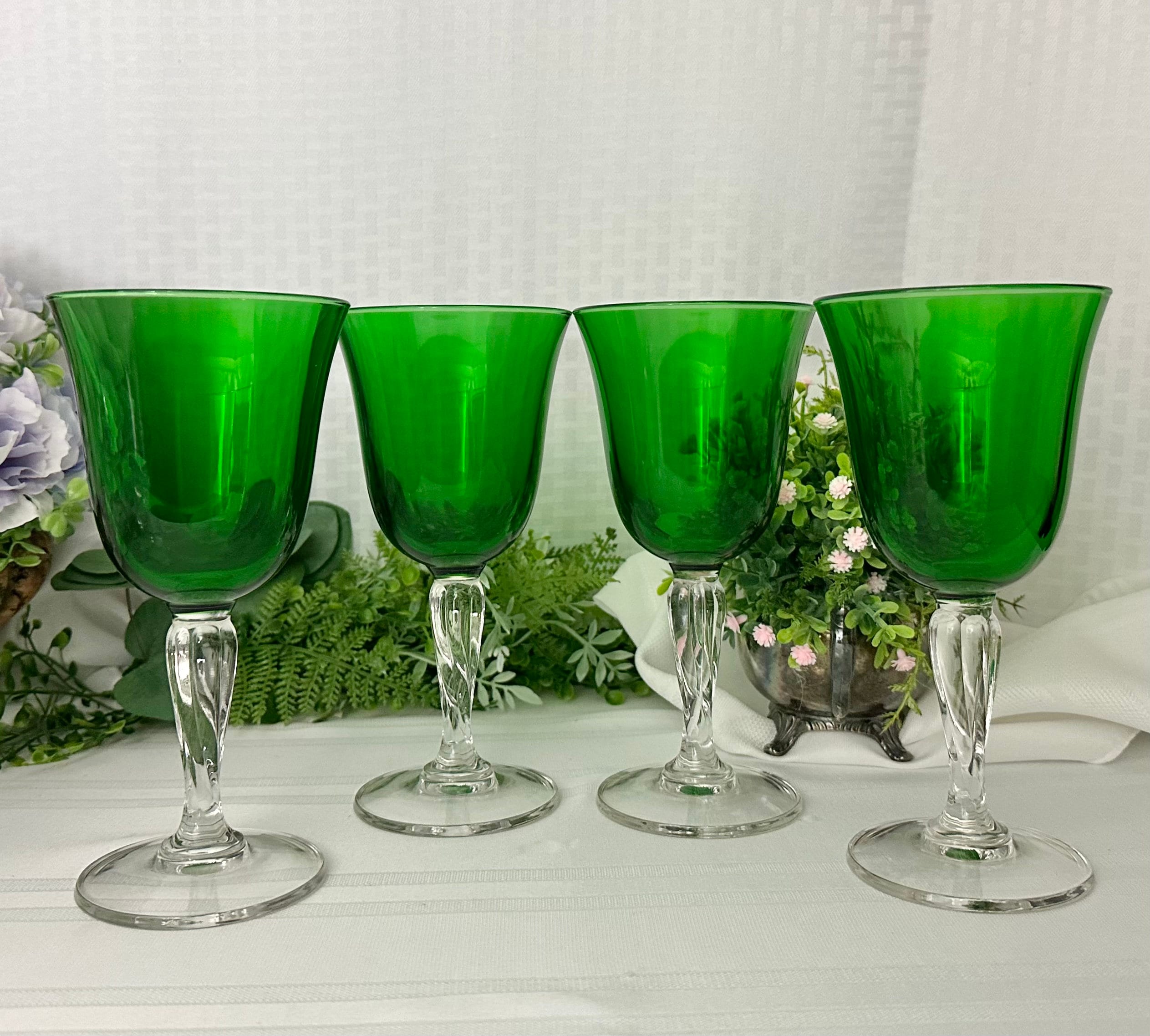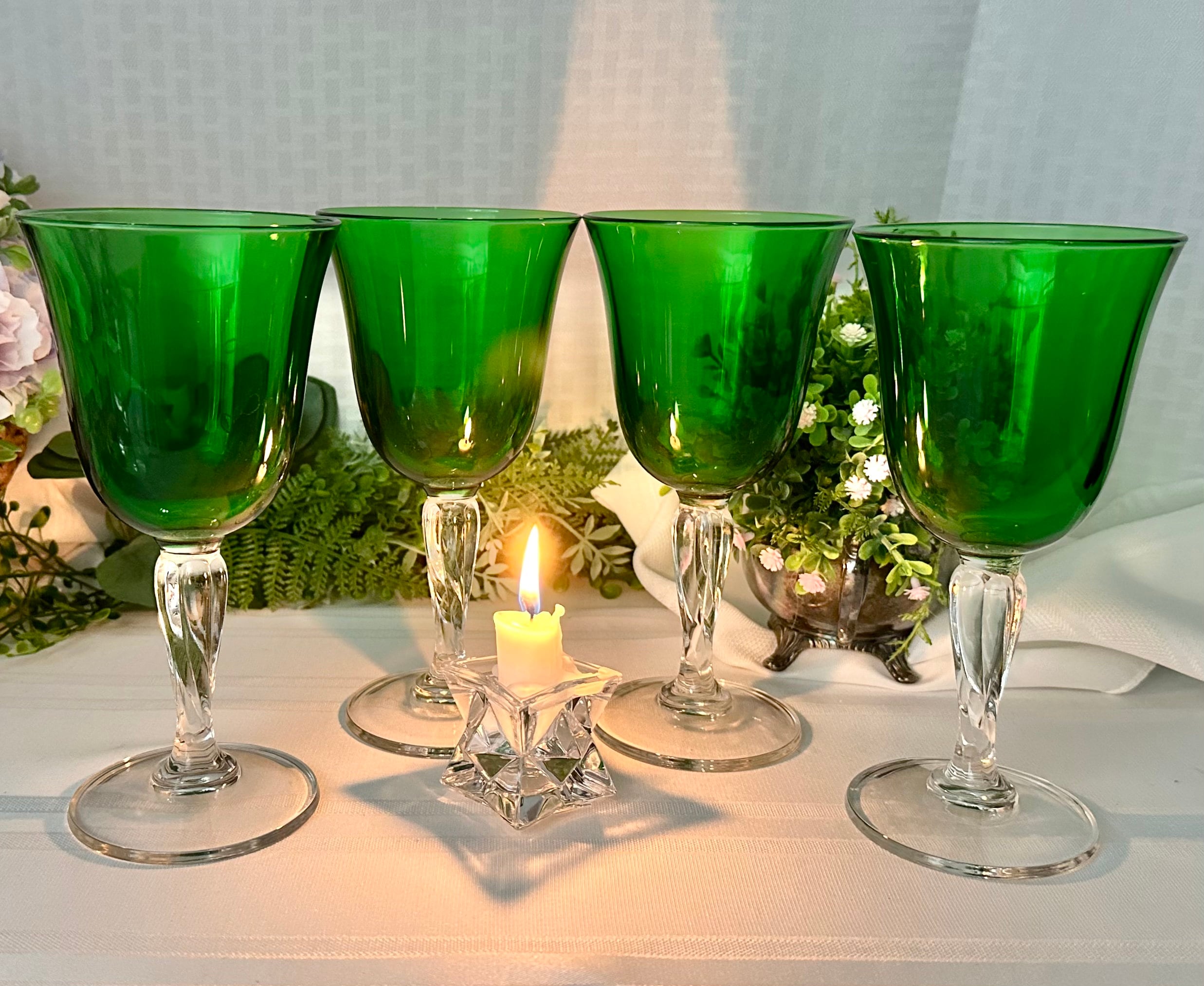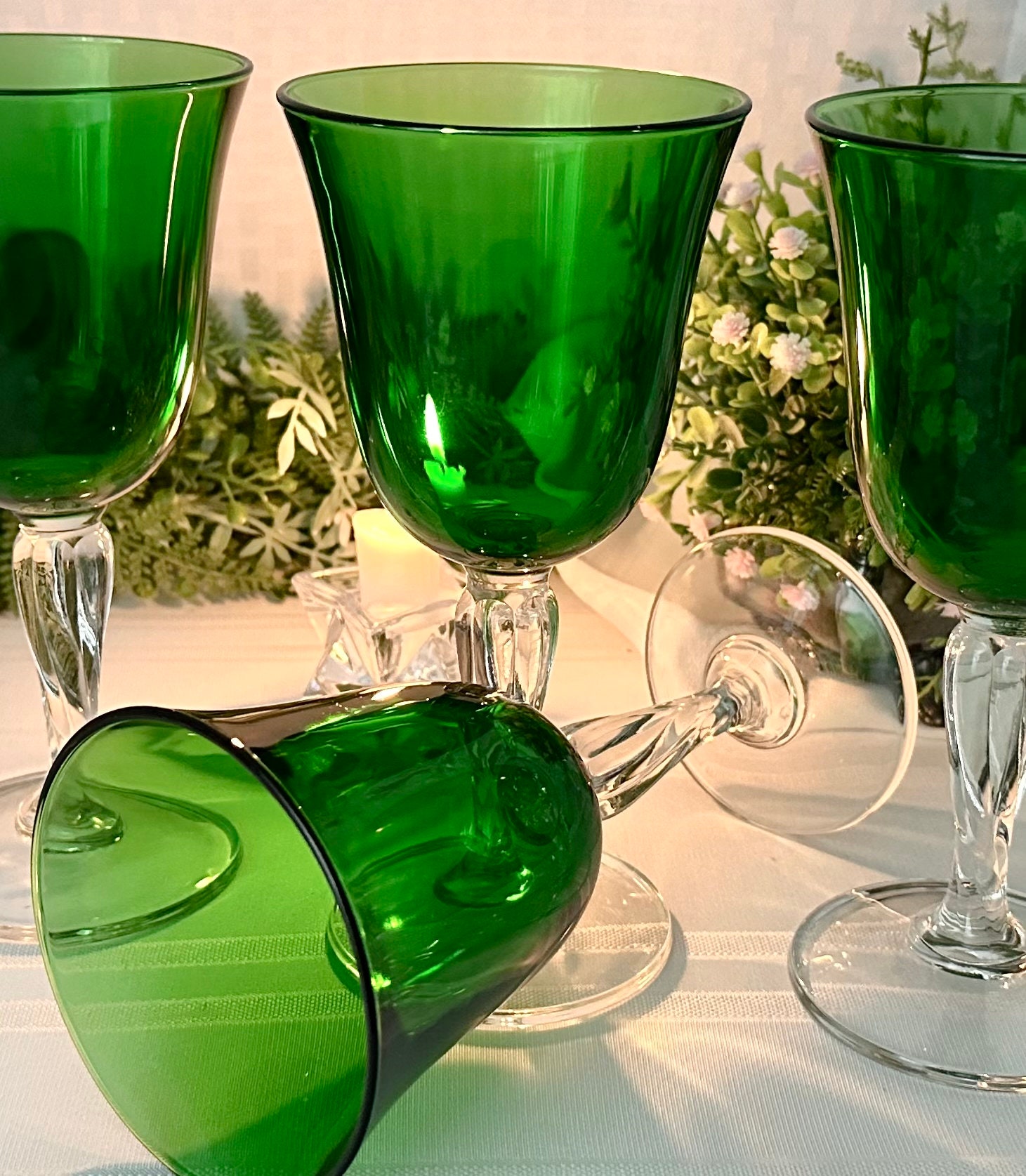 This is for a set of 4 Cristal D'Arques-Durand Wine Glasses in the Casual Setting pattern in the Emerald Green color.