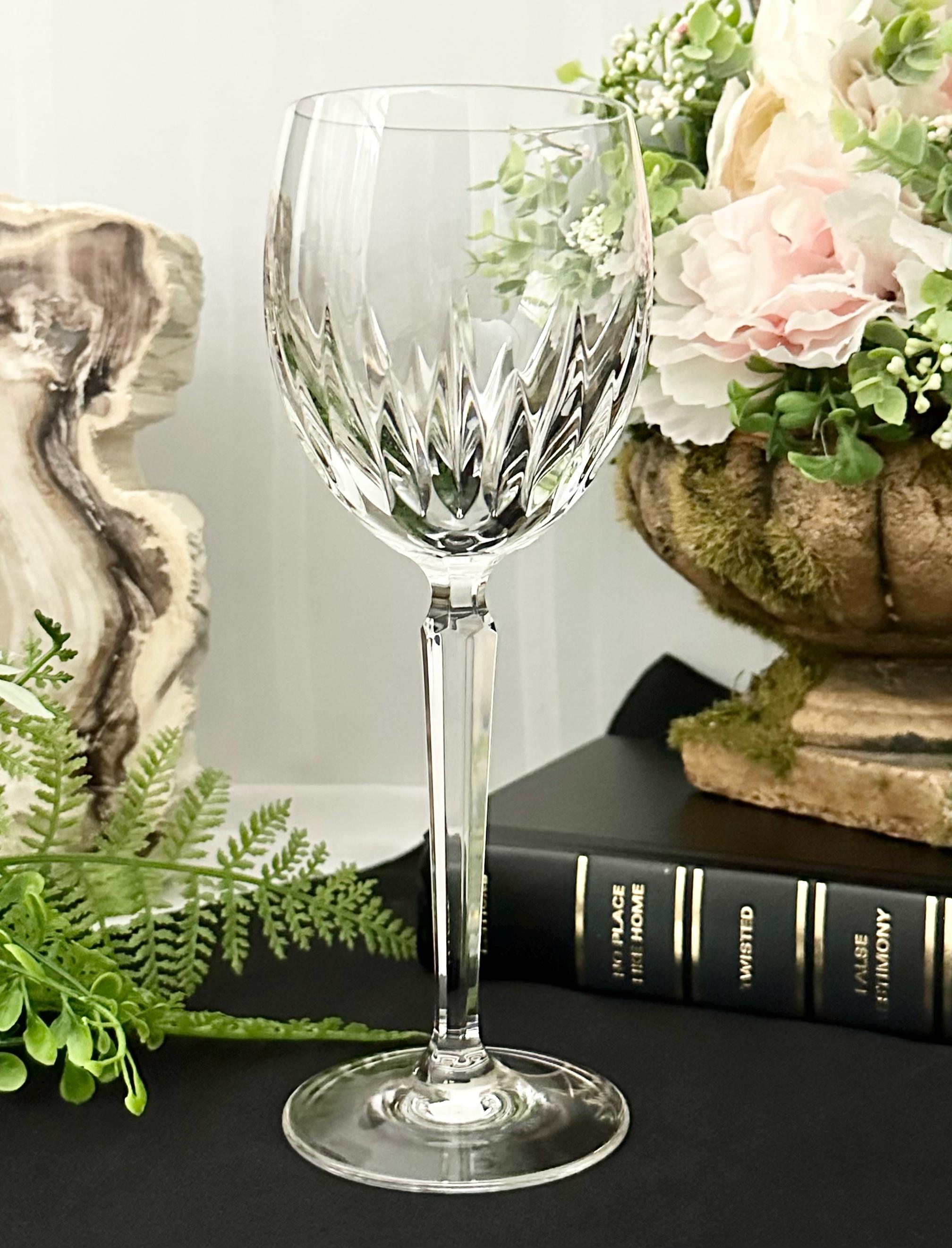 This is for 1 Waterford Crystal Wynnewood Water Goblet / Red Wine Glass. This Vintage Waterford glass is blown glass with vertical cuts with a multi sided stem and plain foot.