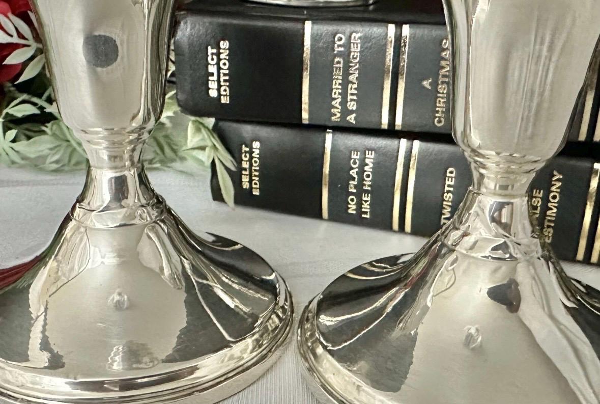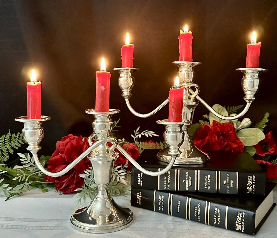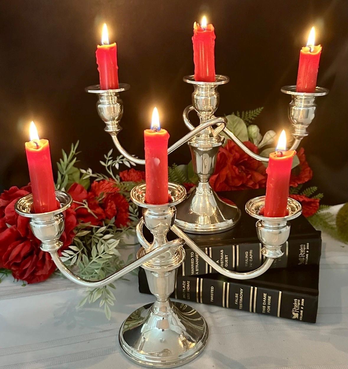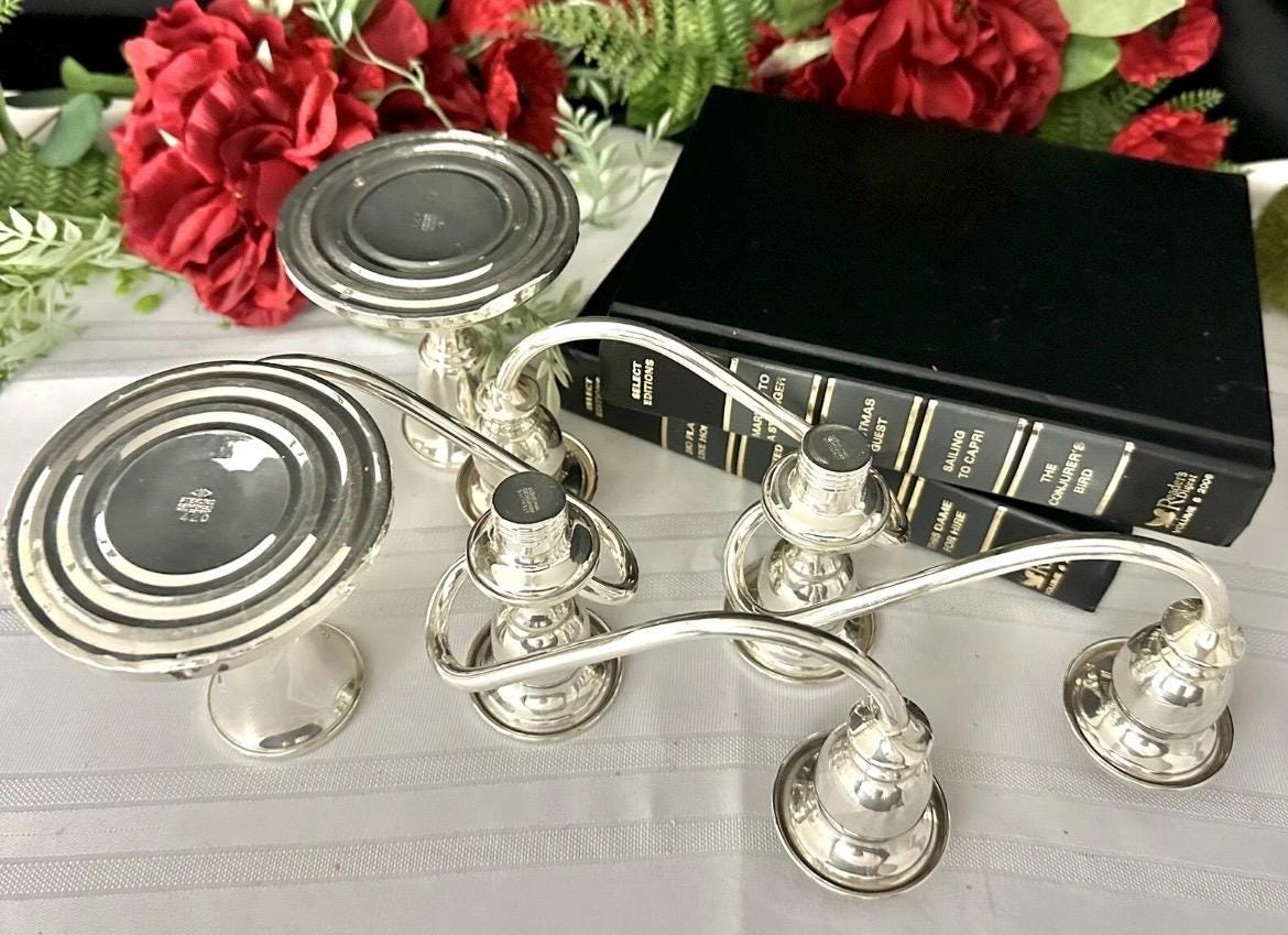 This is for a vintage pair of collectible Sterling Silver Vintage / Antique Candelabras. These have twisted arms and each holds a total of 3 taper Candle sticks. These elegant candle holders are Sterling Silver from JW Mueck (maybe later to be Mueck-Cary ... Inc., New York, NY - which is now owned by Towle silversmiths.