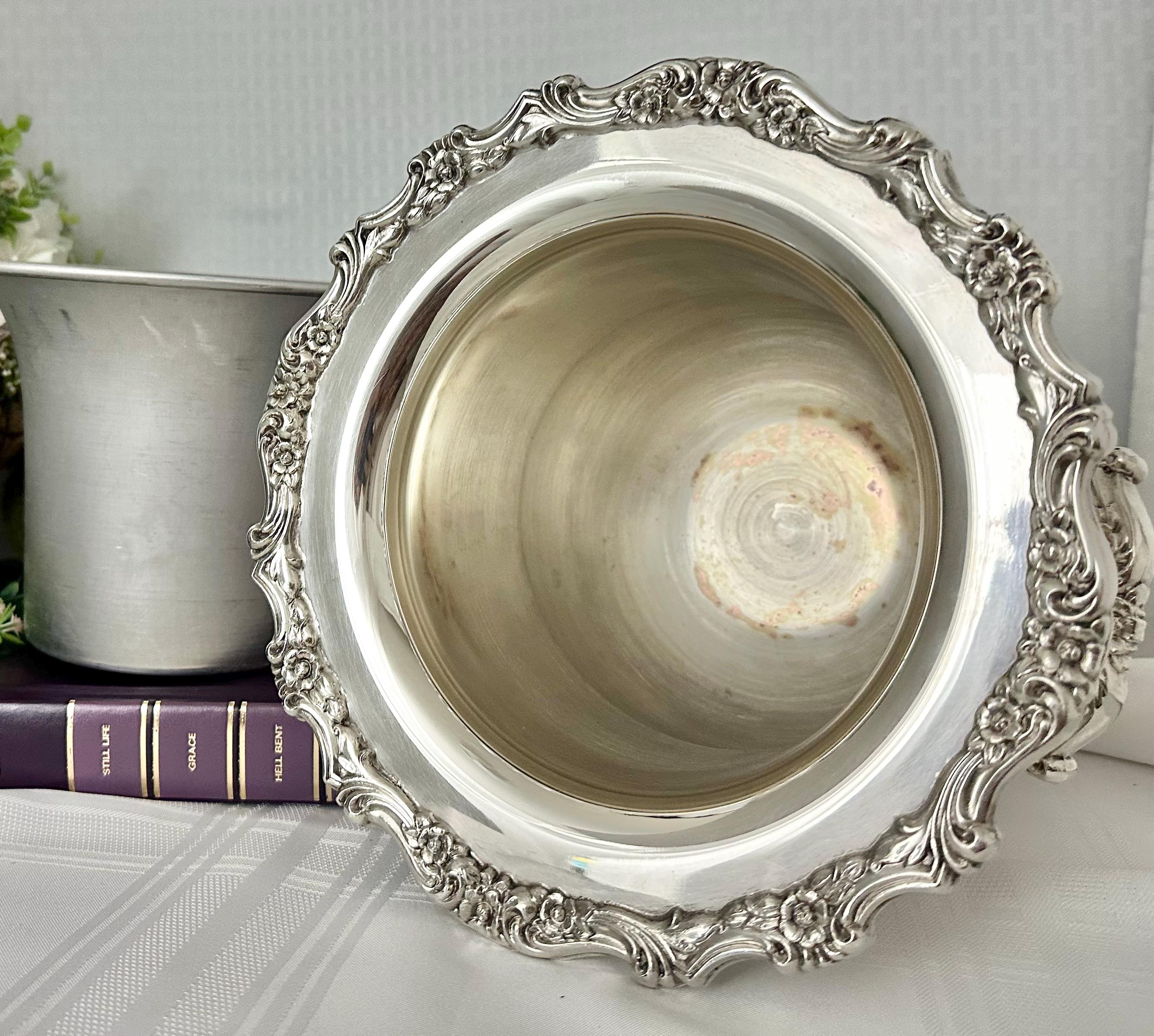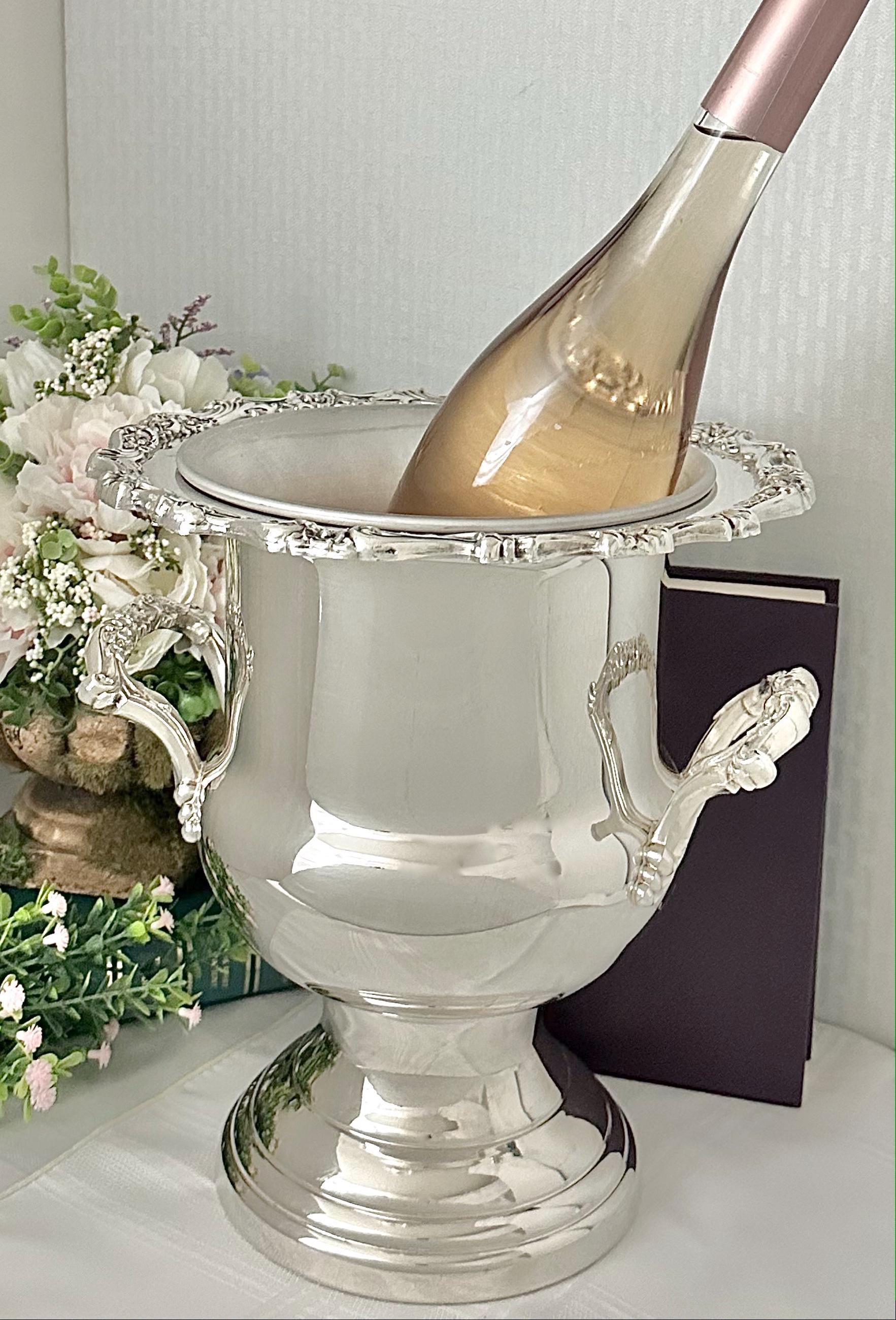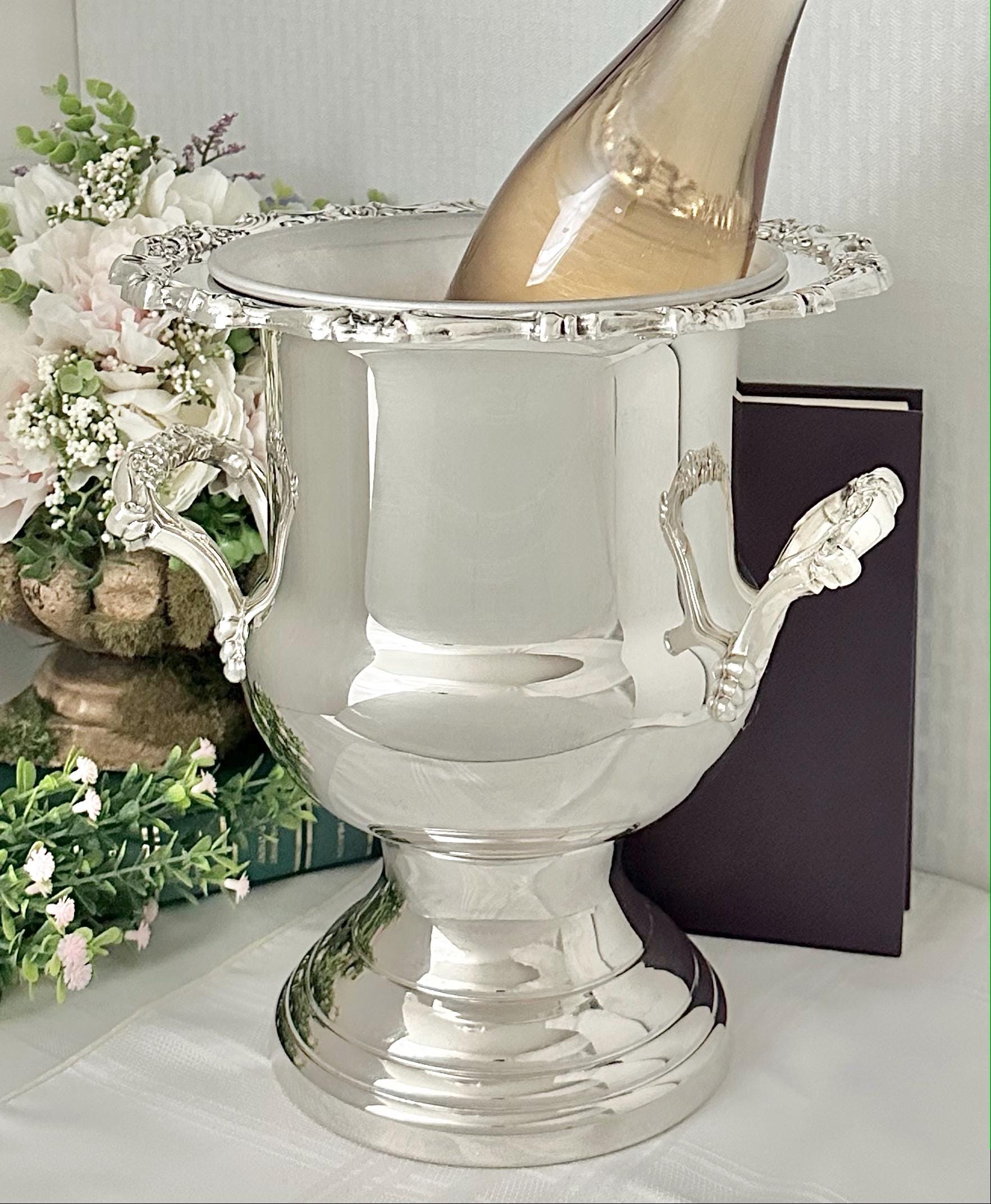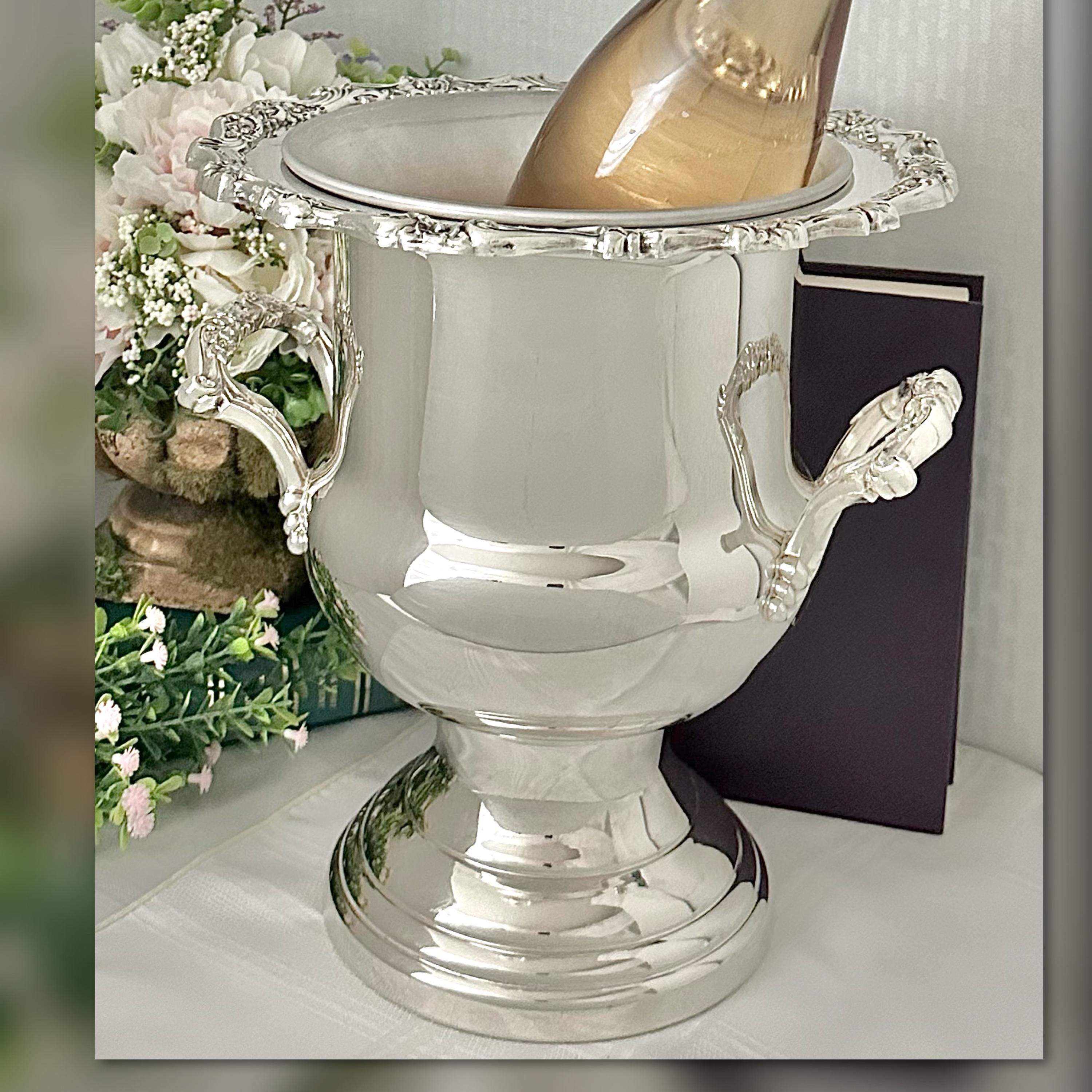 This is for a Vintage Oneida Champagne bucket / Wine chiller / Flower Urn / Trophy vase. This champagne bucket is Silver Plated with a floral rim and decorated handles.