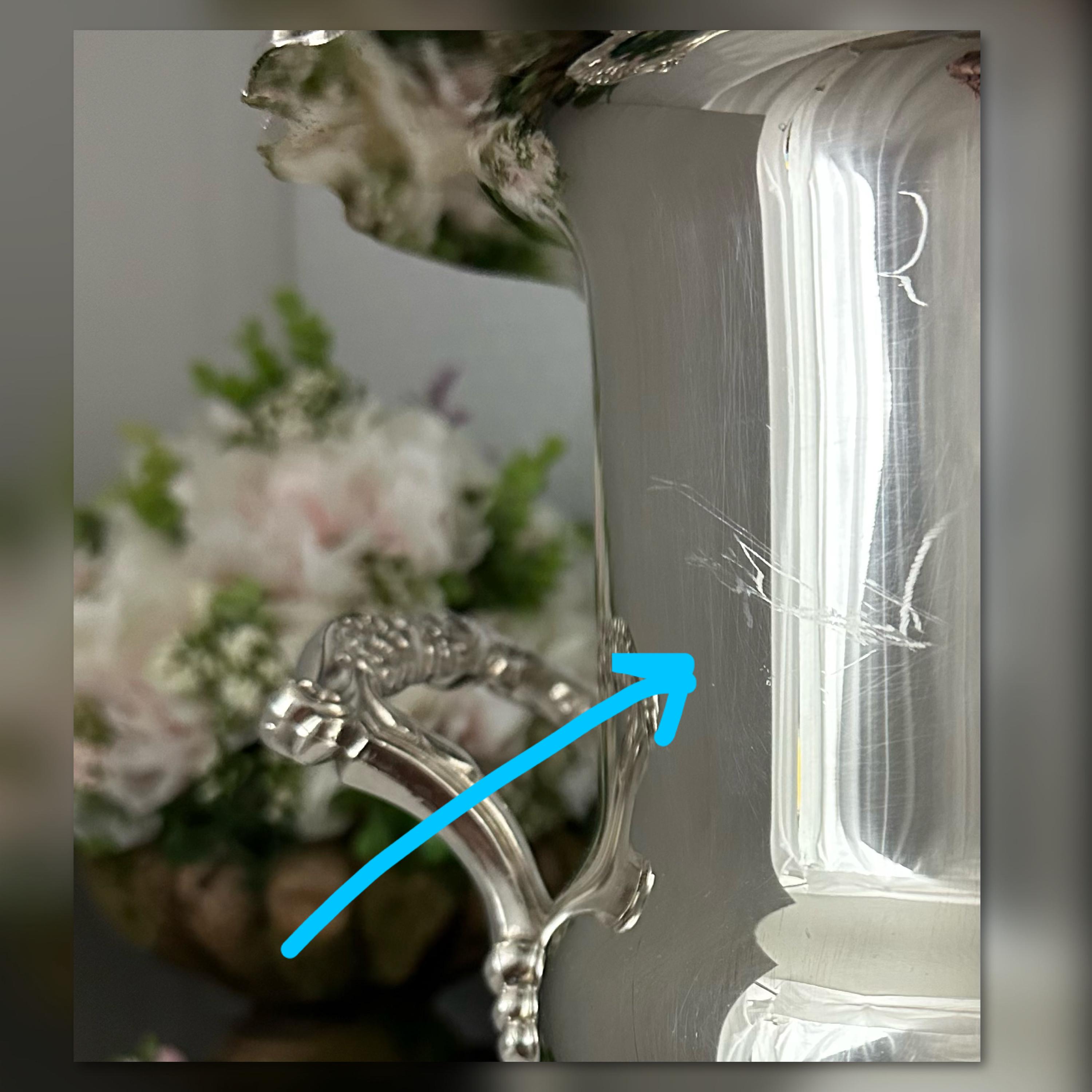 **The inside has some missing silver plate on small spots on the inside so I included a liner with listing if wish to use for holding ice as best to keep the spots dry. There is a noted area with scratching on one side. Item is discounted some for the issues.
