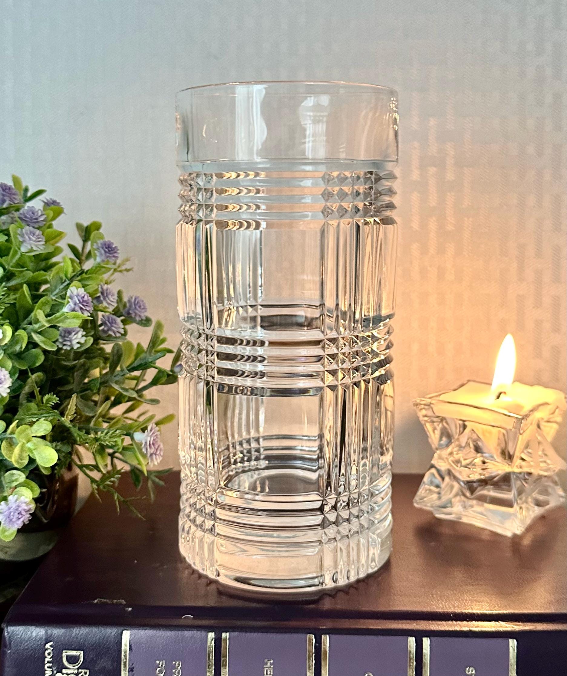 This is for 1 Ralph Lauren Glen Plaid elegant glass. This is in the Highball size and measures: 6 1/4 inches tall x 3 inches in diameter and holds 14 Oz of liquid. These were first produced starting in 1993 with an unknown discontinuation date.