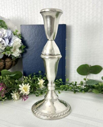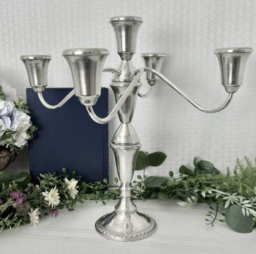 This is for a convertible Sterling Silver Candelabra that holds 5 candles when the arm is used. This is marked on the base with the maker, Duchin Creations. This lovely candelabra is weighted and reinforced.The arm can be set aside and the center candle holder will hold a single taper / dinner candle.