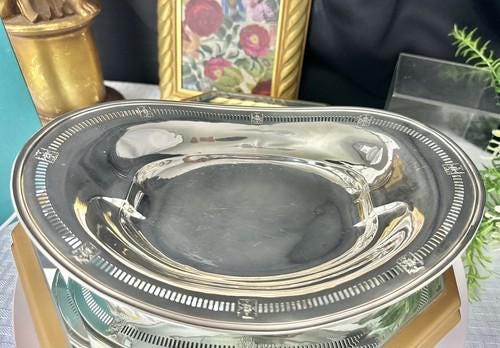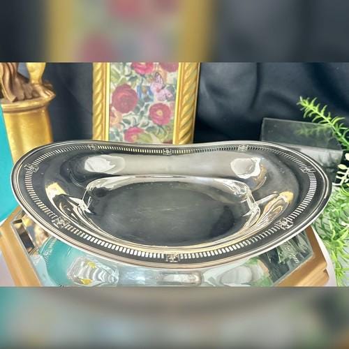 Experience the elegance of the Art Nouveau era with this sterling Bread basket. The silver bowl - bread basket is a beautifully crafted dish boasting a pierced edge pattern that exudes sophistication and timeless design.