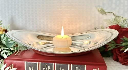 The bowl weighs 5.5 Oz. and does have some surface scratches and small dents on the base, as sterling is soft.