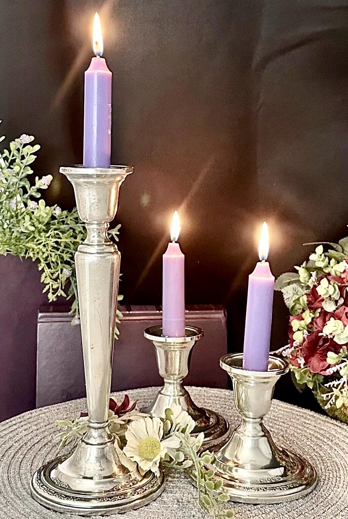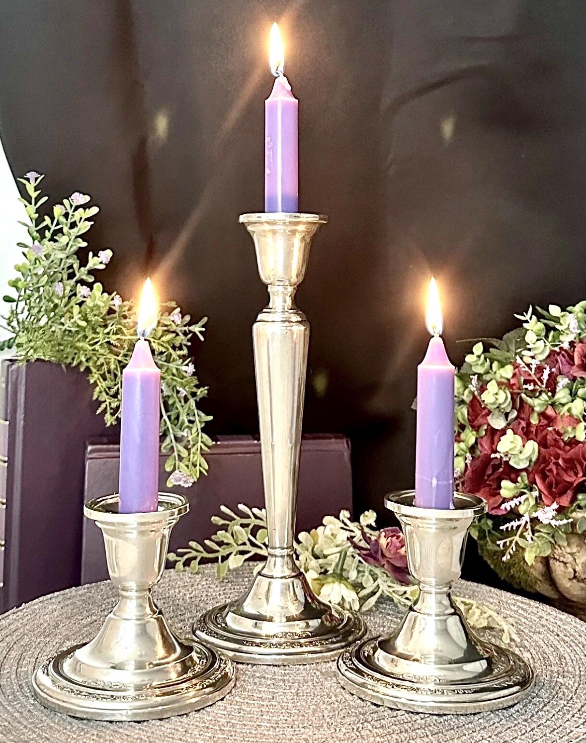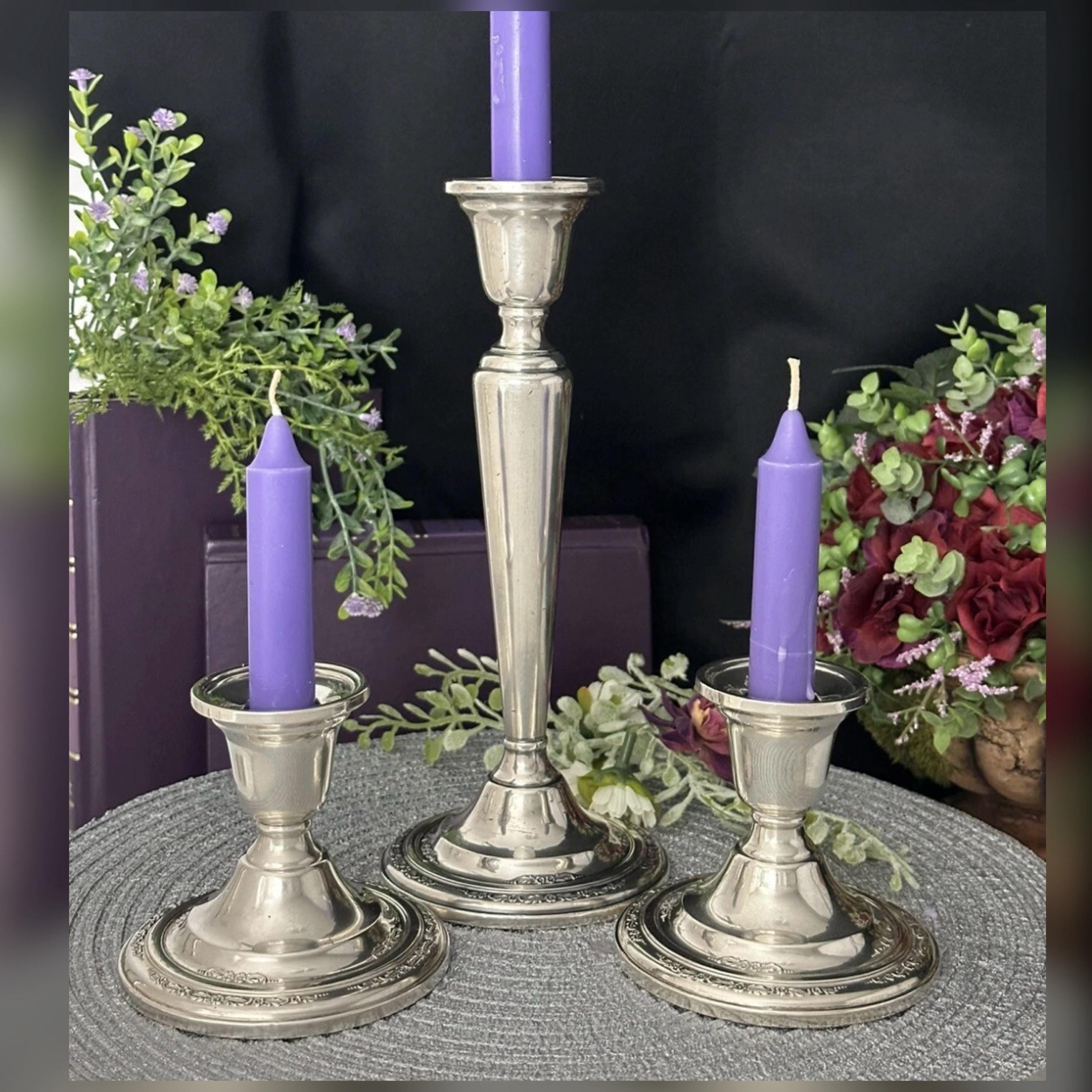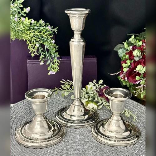 This is for 3 vintage International Sterling Silver candlesticks. These are in the International Silver in the Courtship pattern, 1936.This pattern was produced from 1936 to 1996.