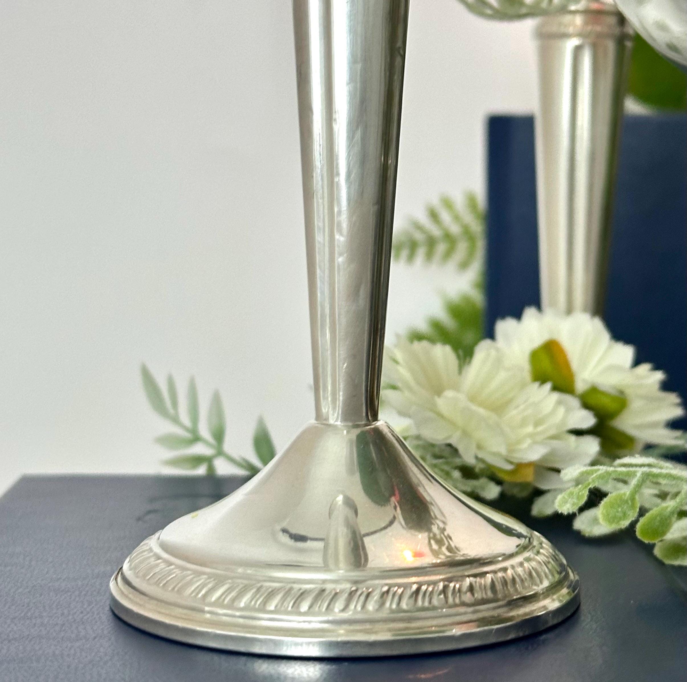 2 - Crown Sterling Candle holders measuring : 8 inches tall with a diameter of 3 inches