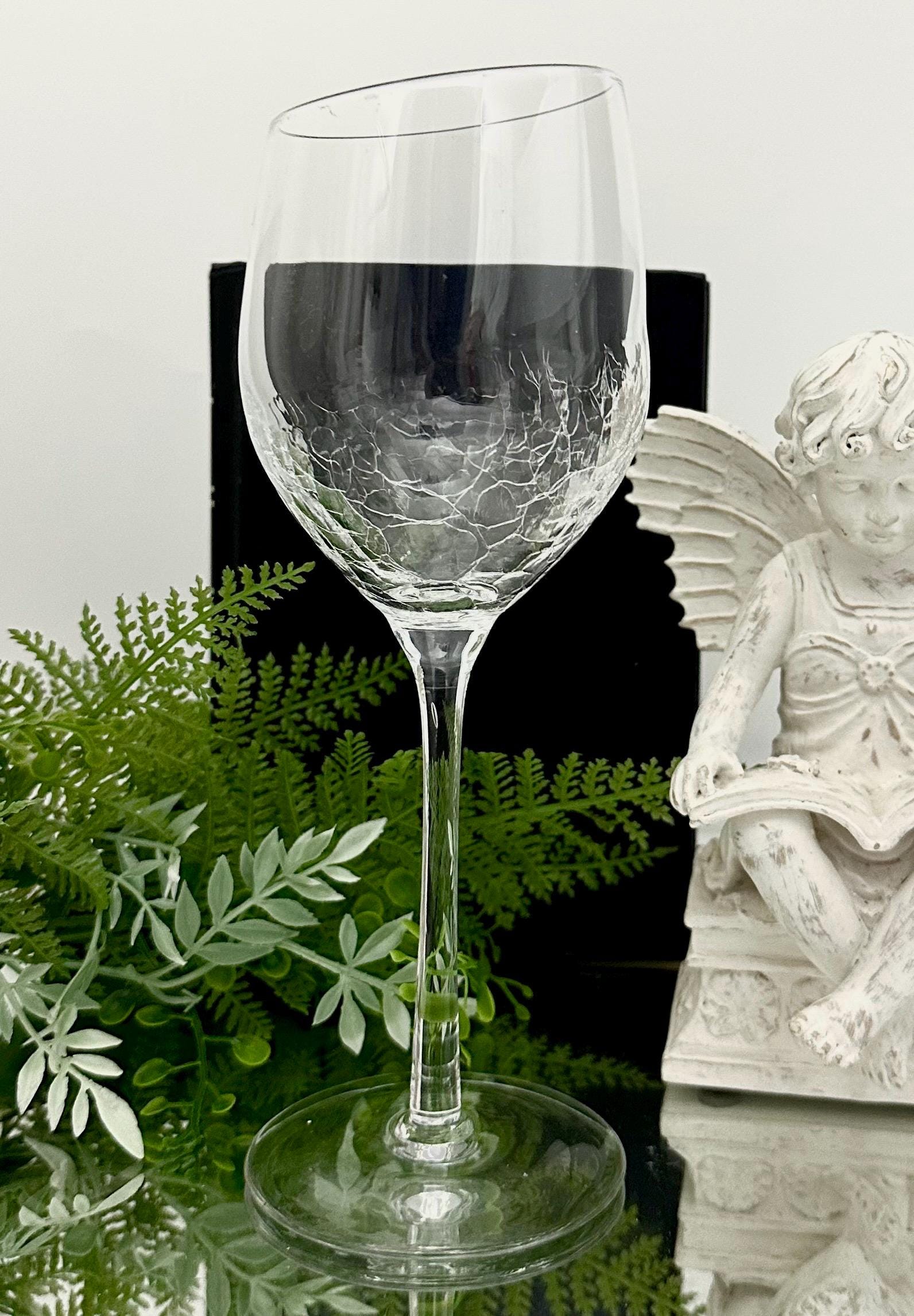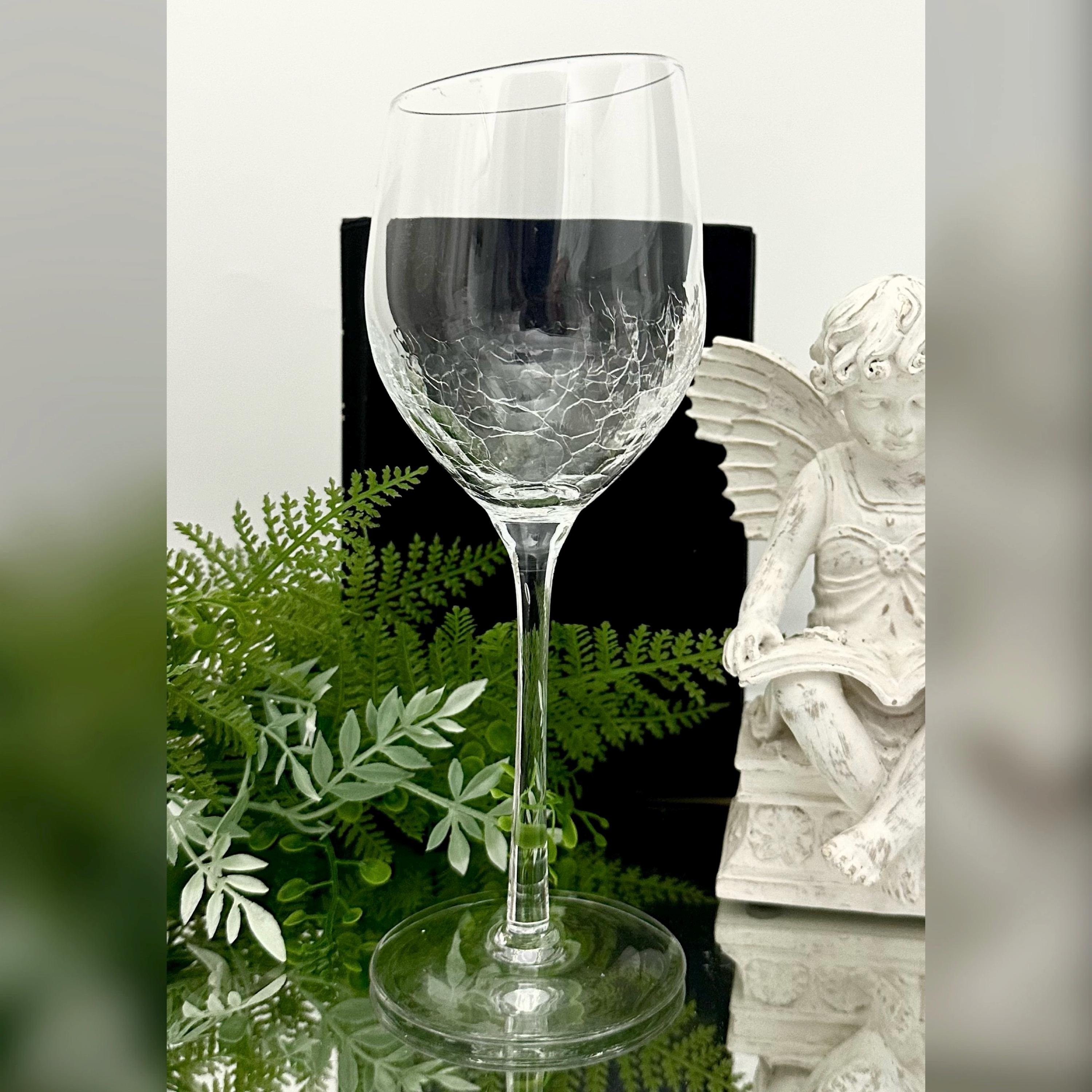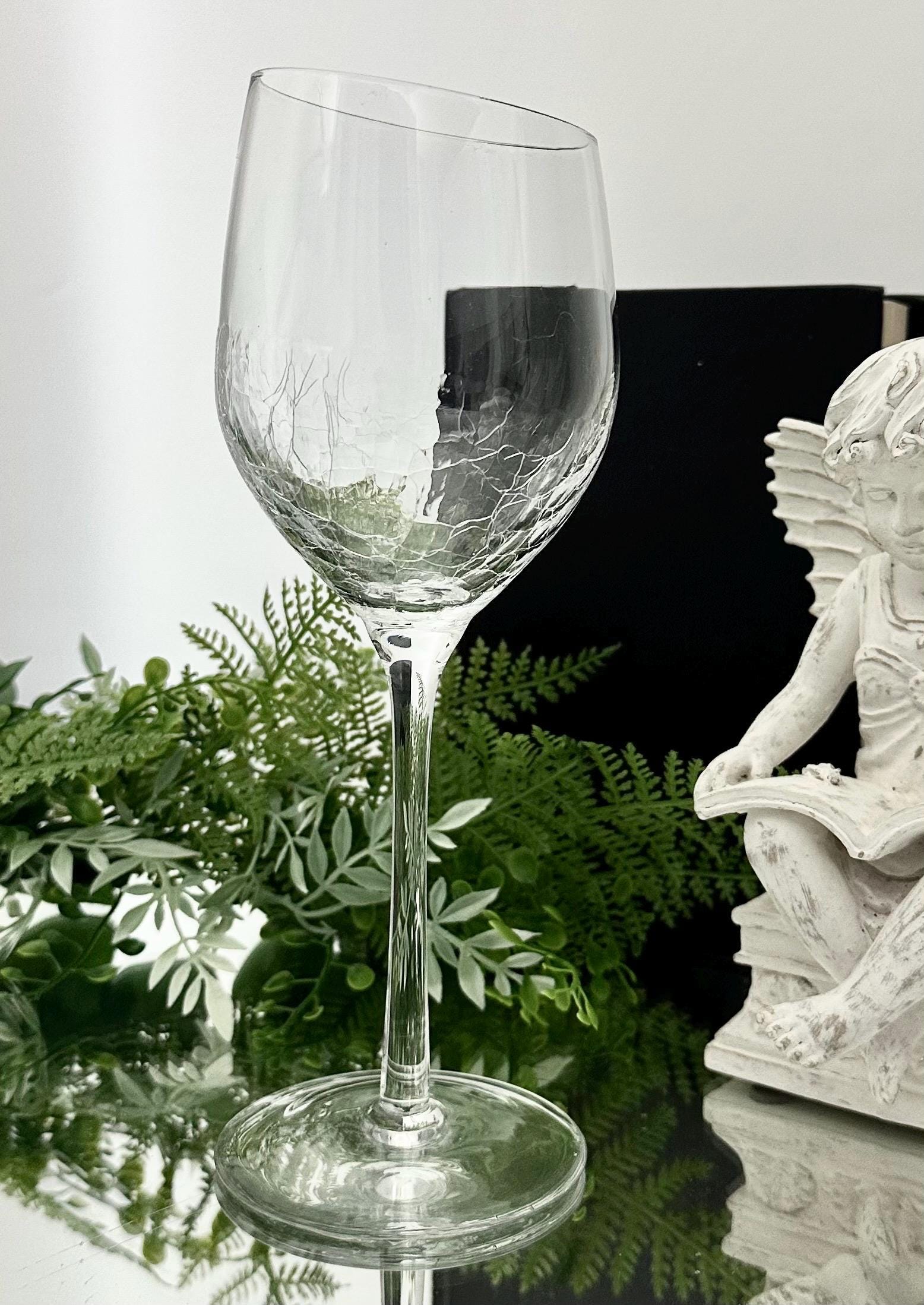This is for 1 Vintage Angled Rim Pier 1 Crackle White Wine Glass. This glass measures: 8 7/8 inches tall x 2 3/4 inches in diameter.