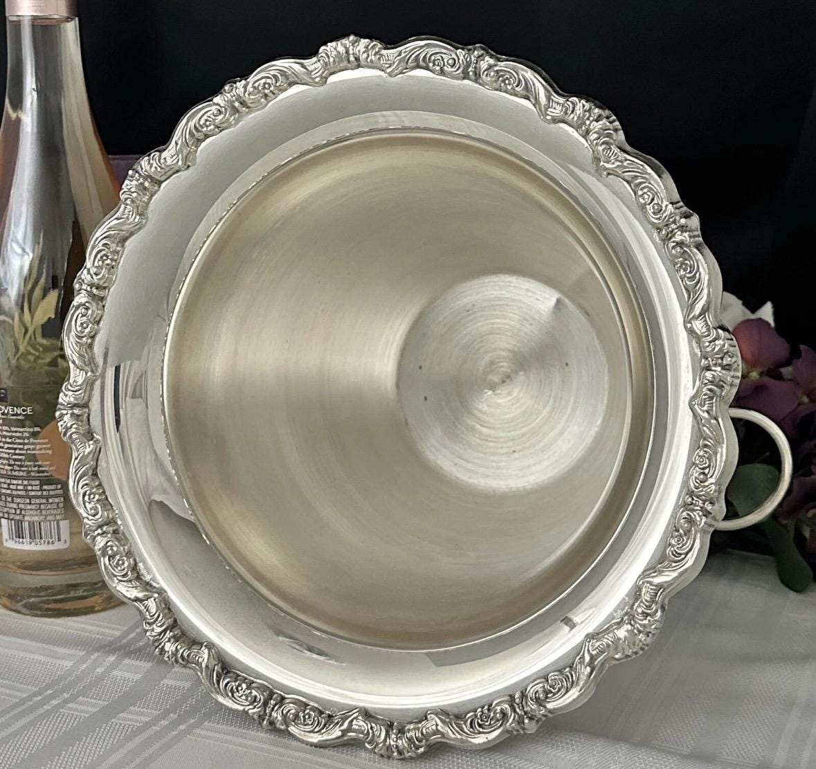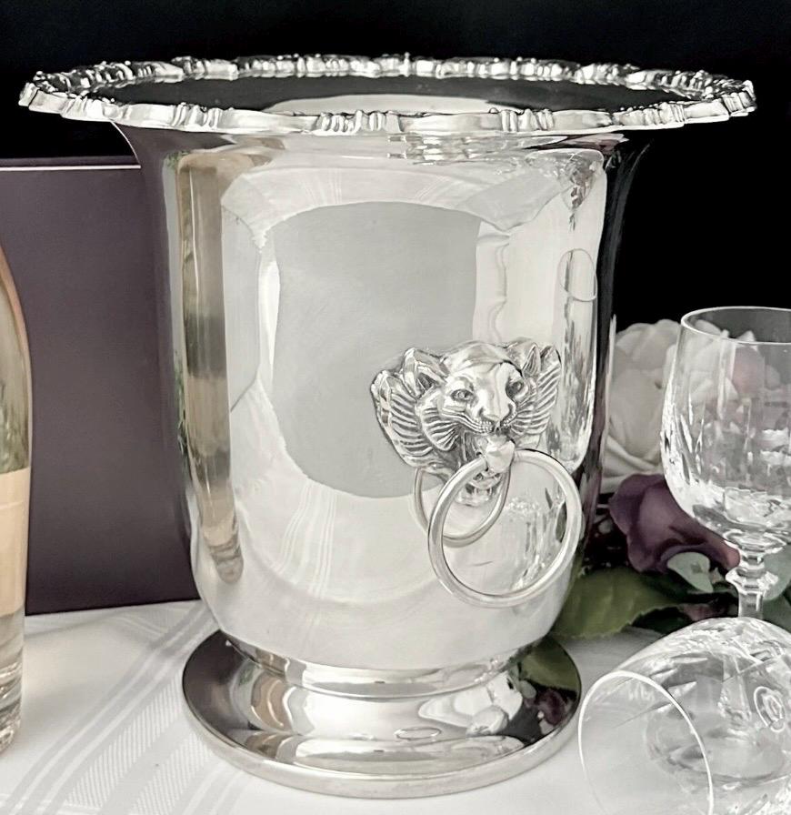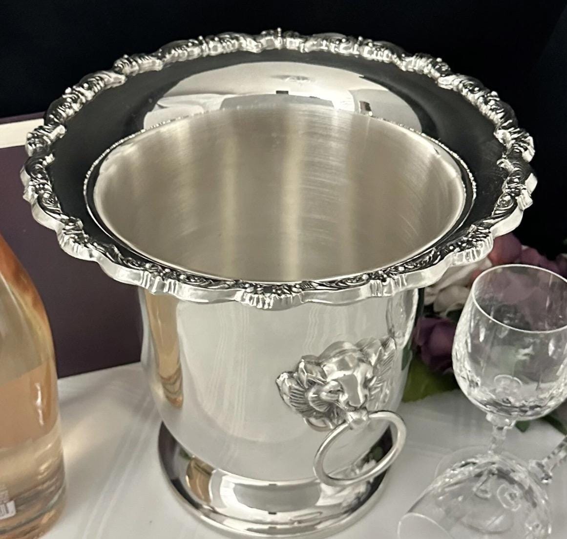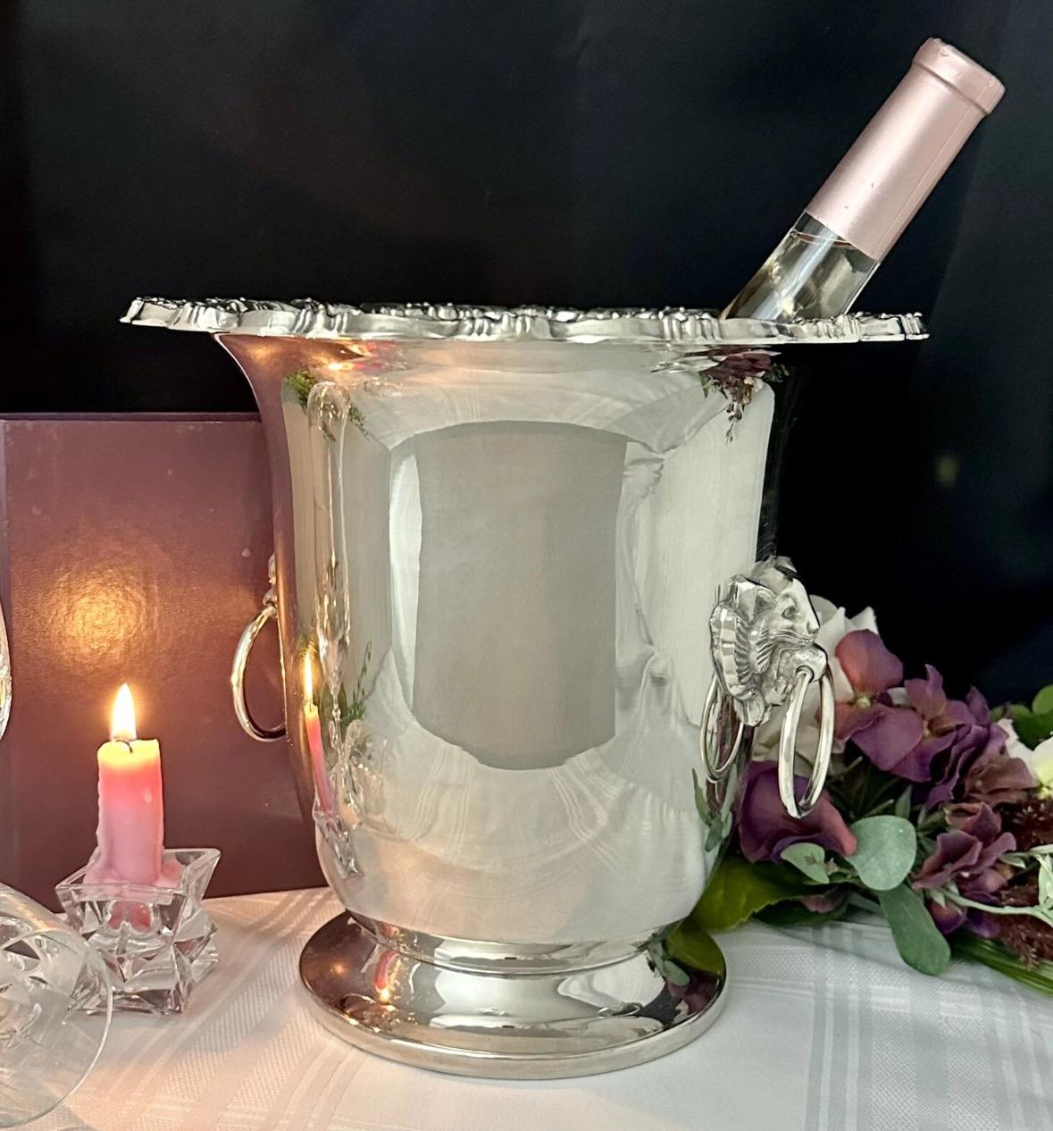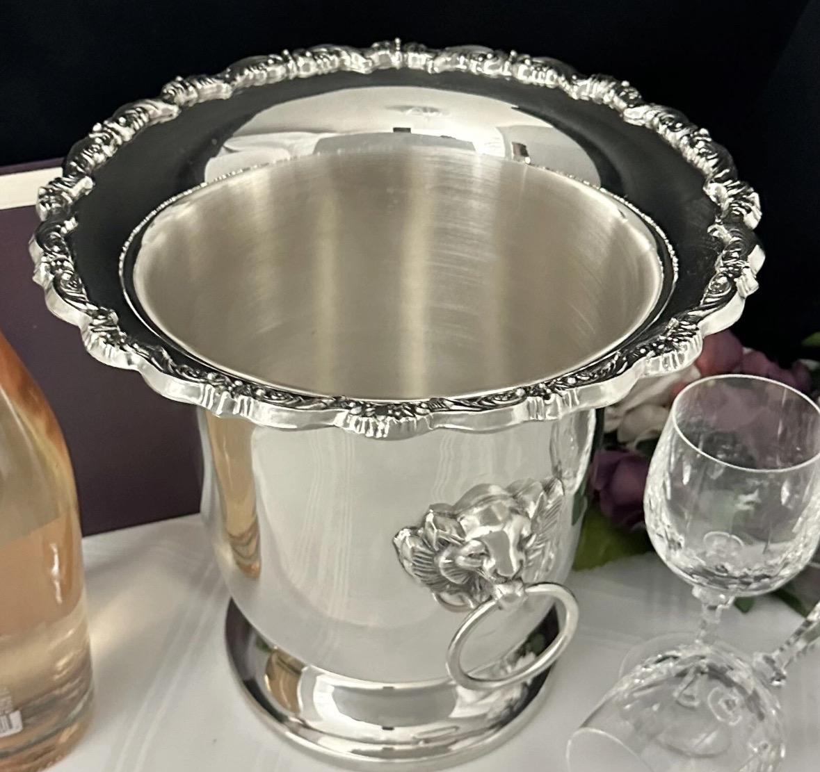This large champagne bucket is polished and very shiny and ready to use and display along with being enjoyed for years to come. The inside of the piece is also in lovely condition. To keep in this wonderful condition always dry after use to keep from spotting.