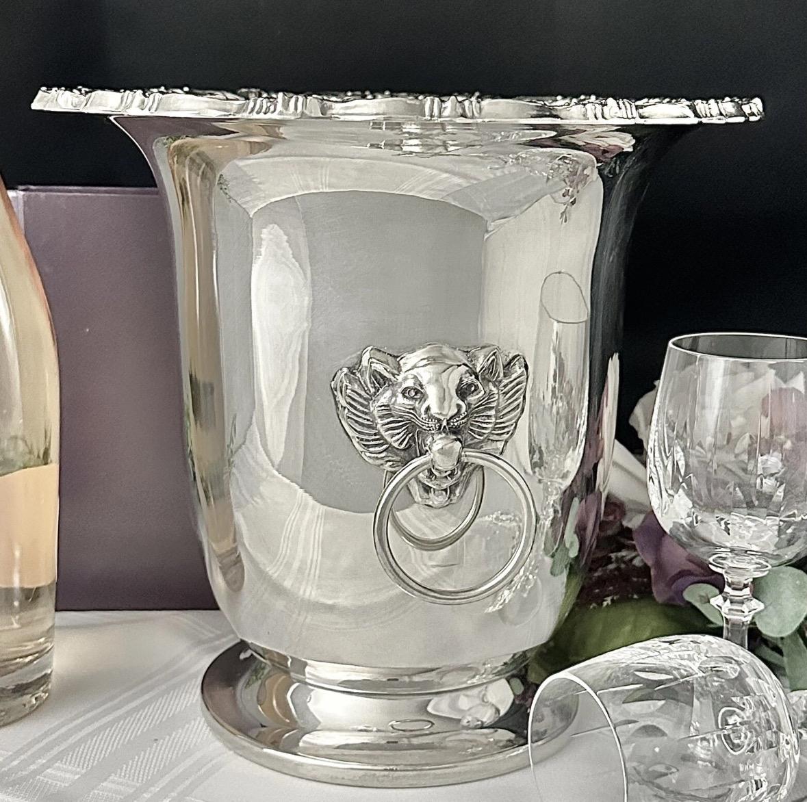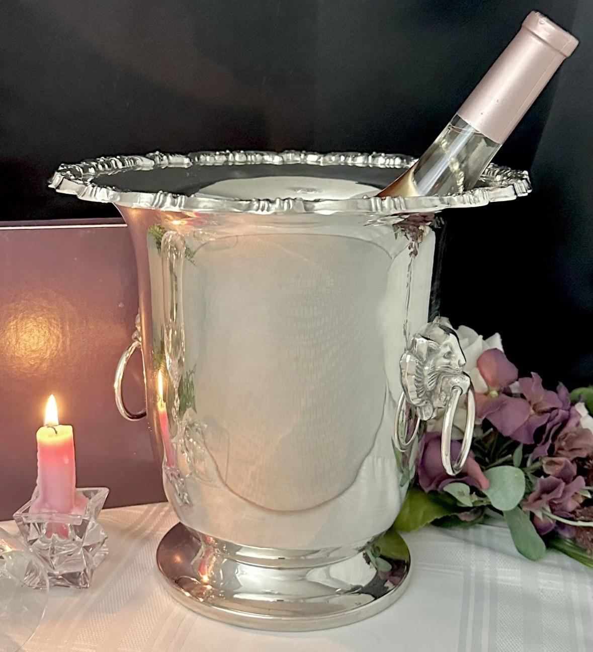 This is for a lovely Leonard Silver Company Vintage Silver plated Champagne Bucket / Ice Bucket or Wine Chiller. This Silver Urn has wonderful lion handles with a ring in the mouths, has a decorated rim and a solid foot. This will make for a lovely Wedding Gift or a beautiful decoration for the home as perhaps used as an Urn for holding fresh flowers, as a centerpiece or used as a Trophy.