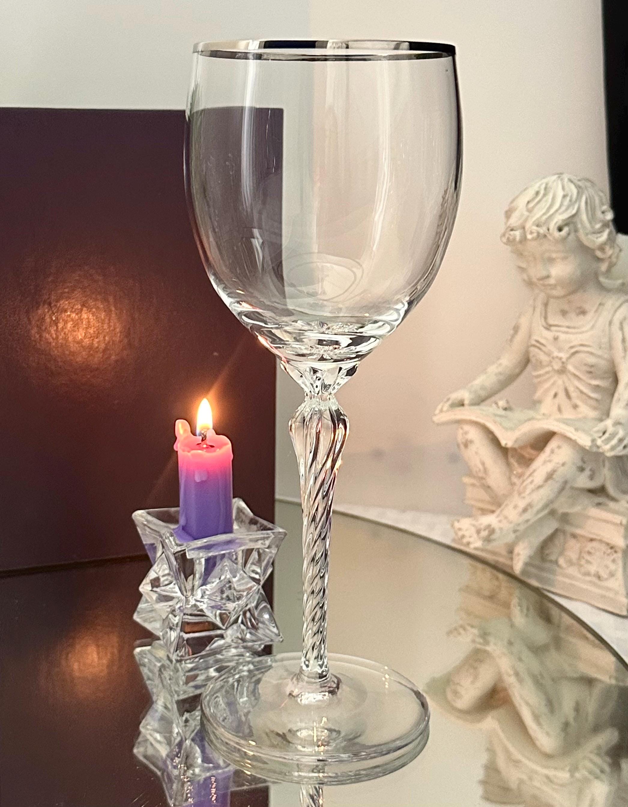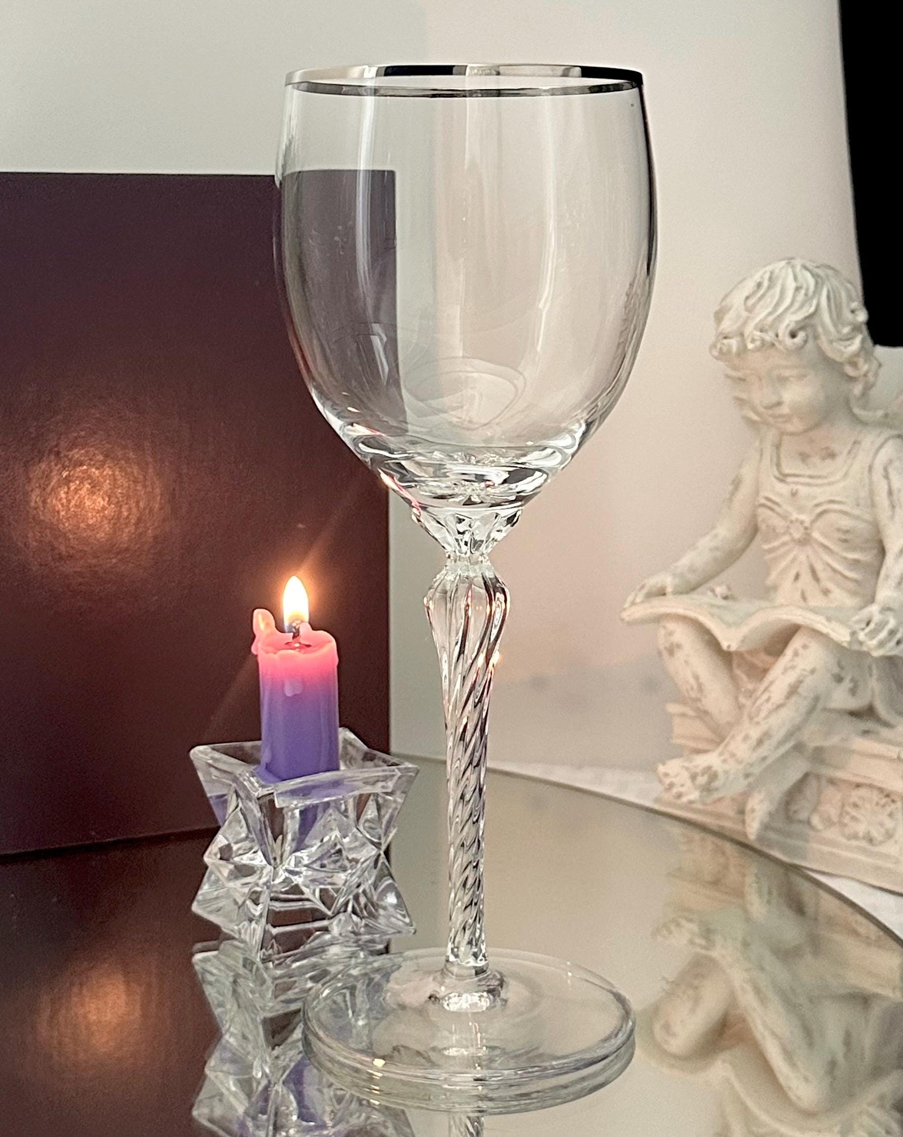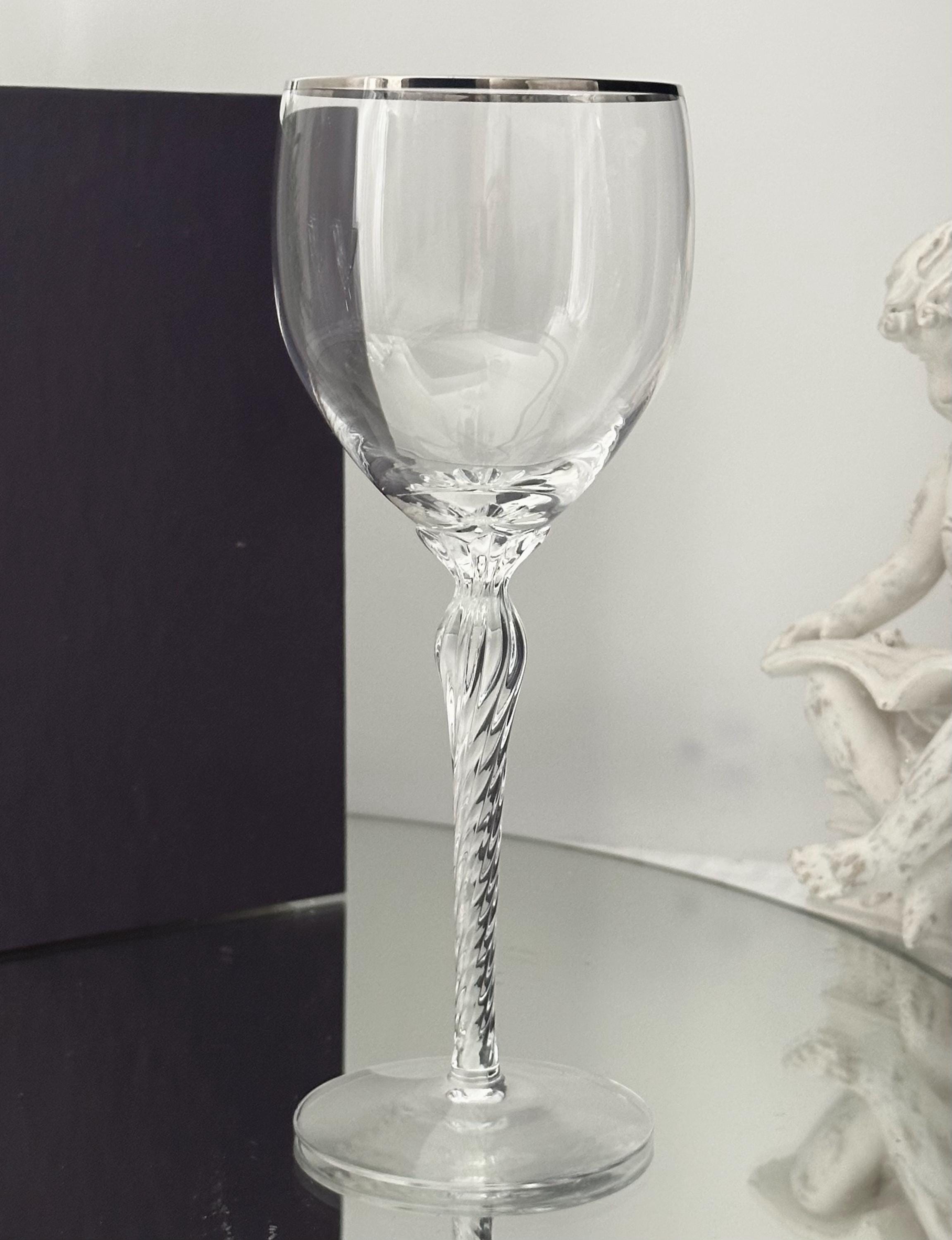 The glass is in wonderful condition with no chips, cracks or water staining and the platinum rim is also in wonderful condition. This makes for a perfect replacement glass or to start a new set! This needs to be hand washed to keep the platinum rim in beautiful condition.