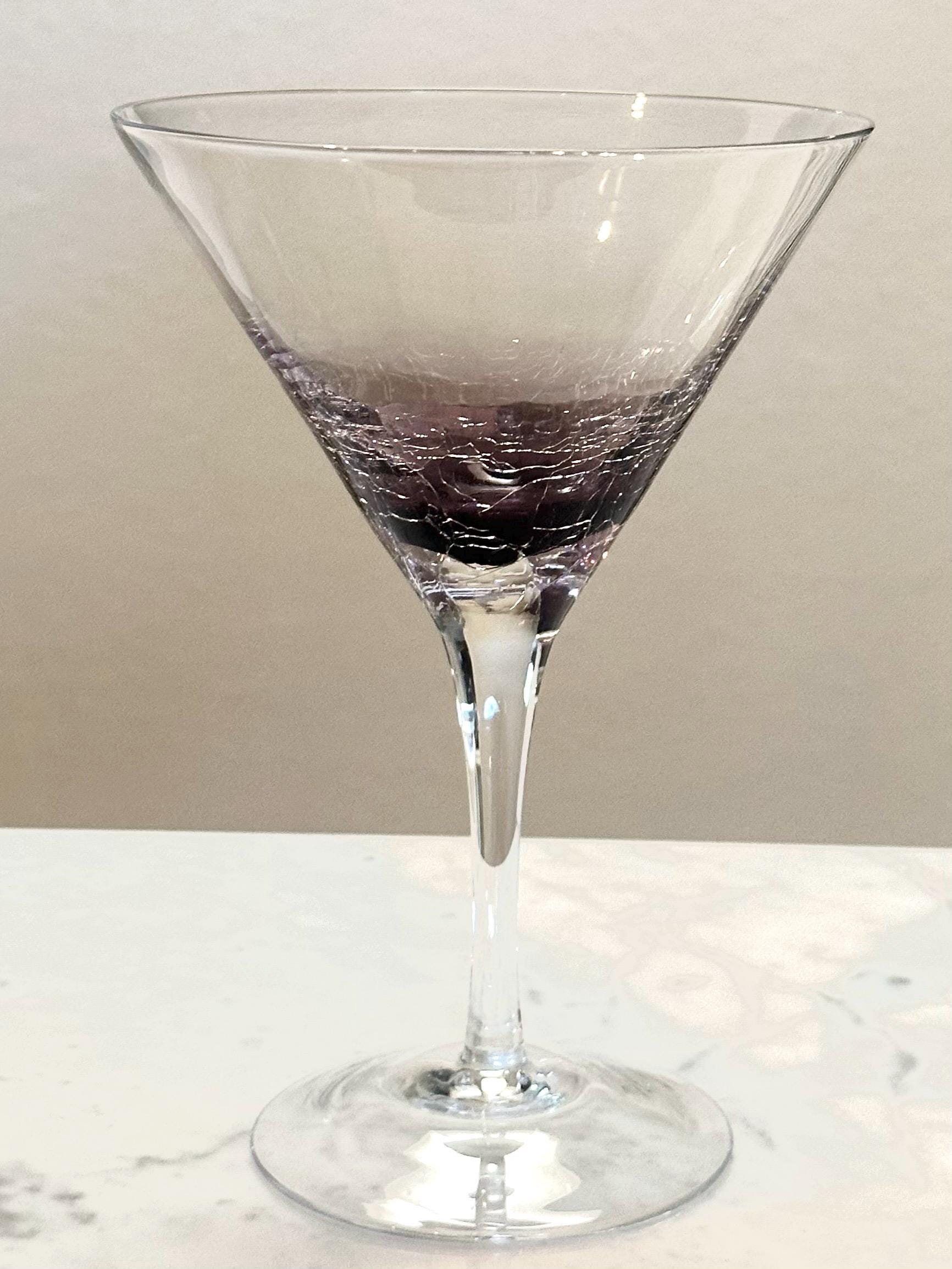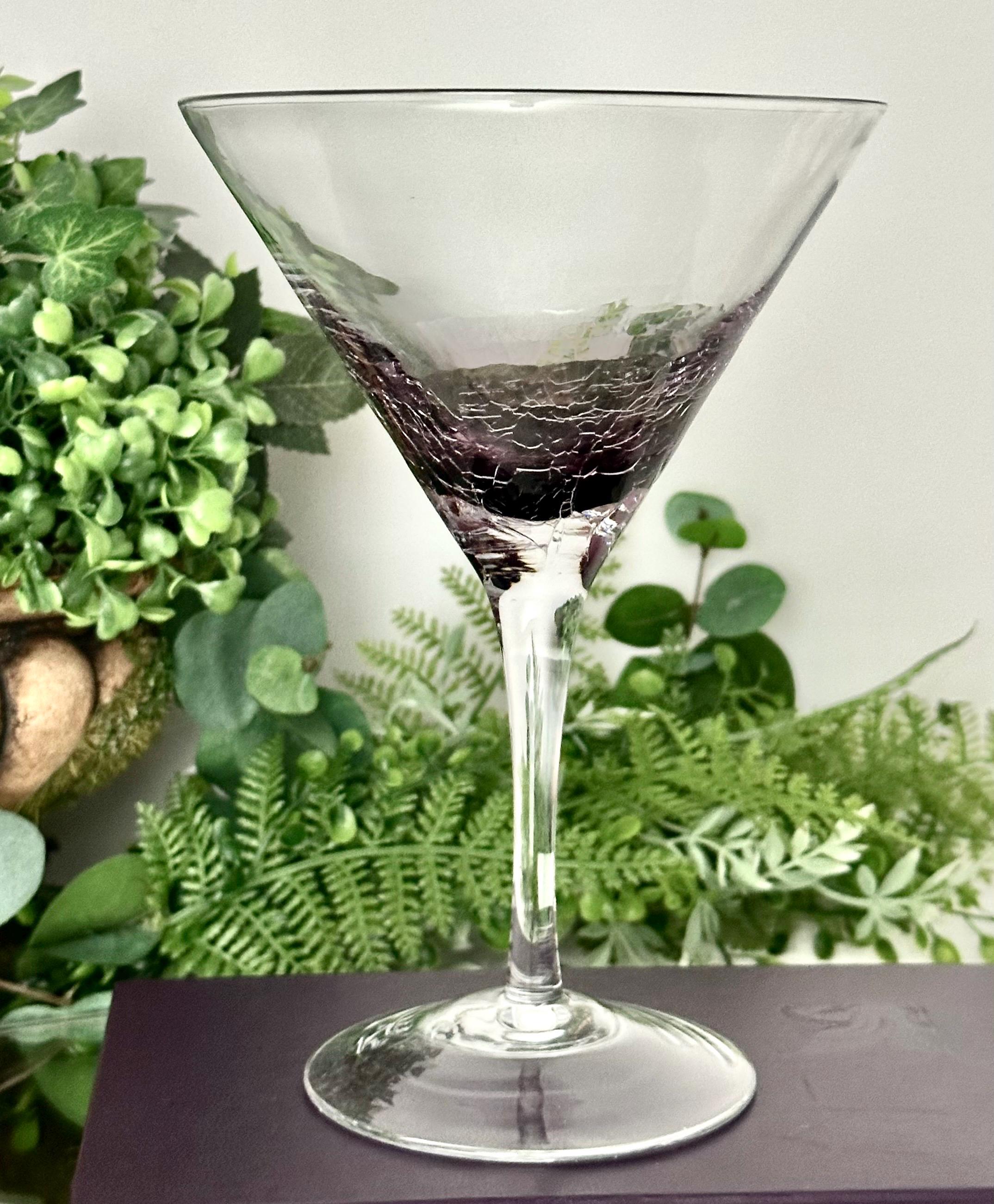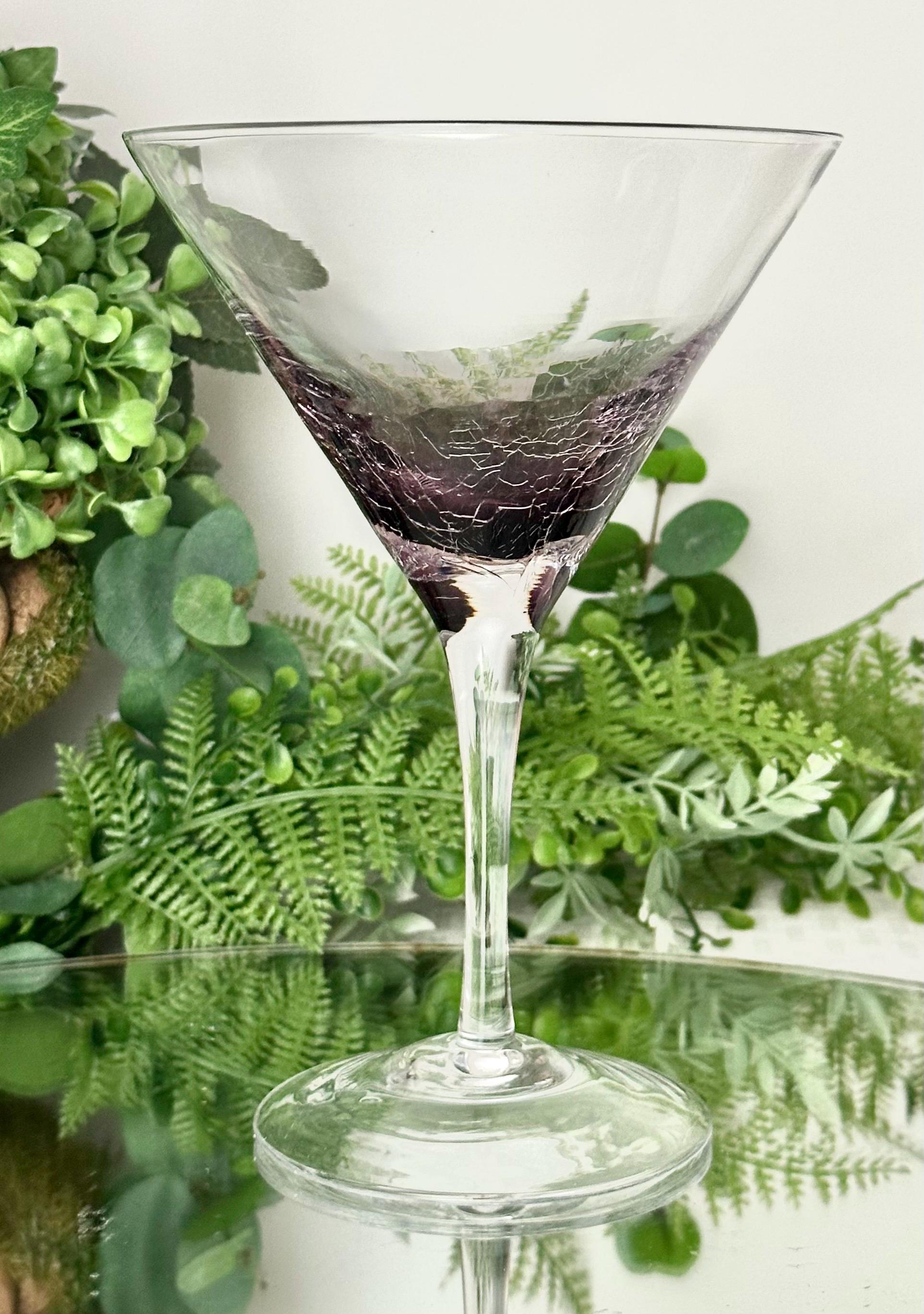 This is for a wonderful Purple and Clear colored Pier 1 Martini Glasses in the Crackle Glass pattern. These were produced from 2012 to 2020.