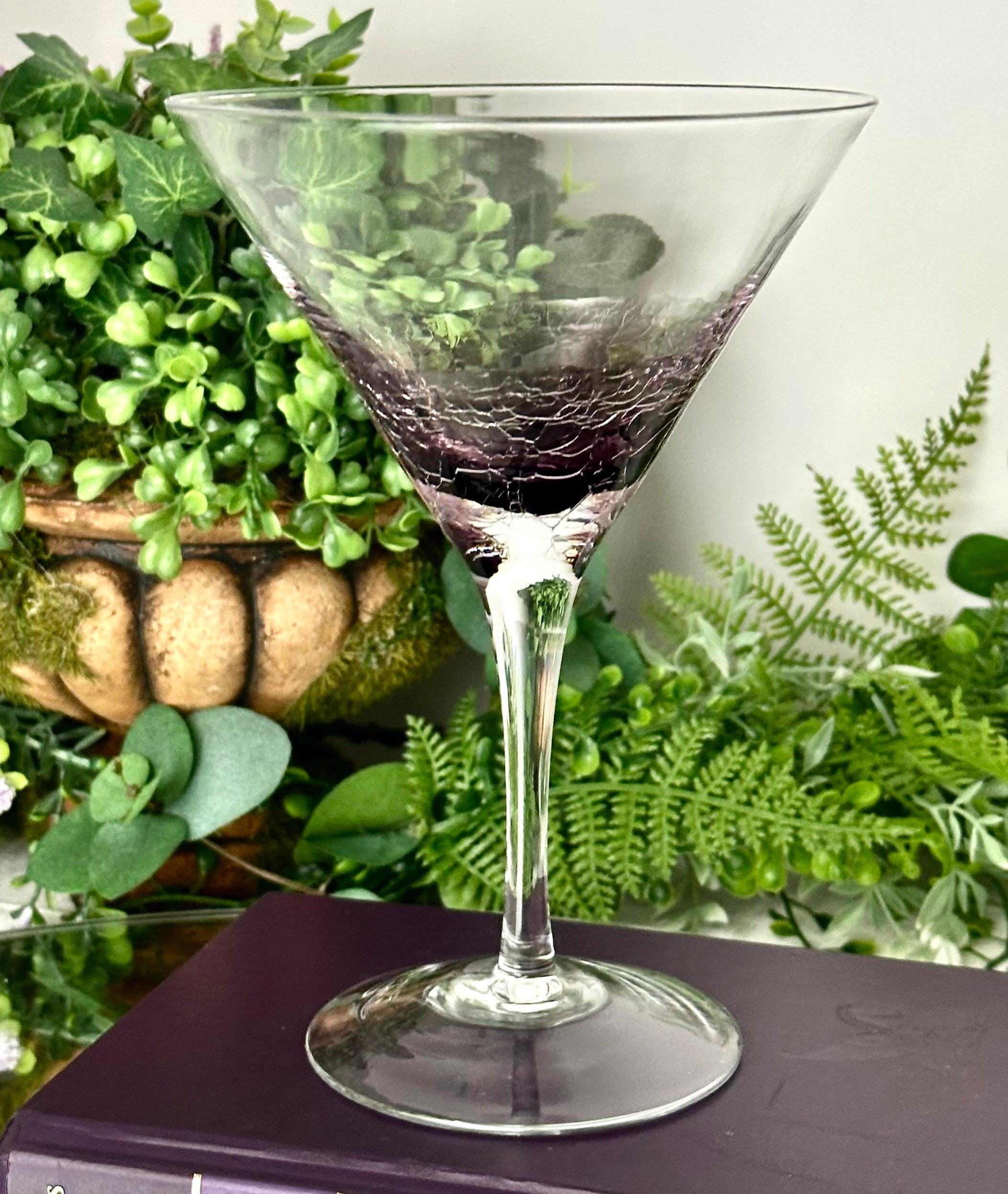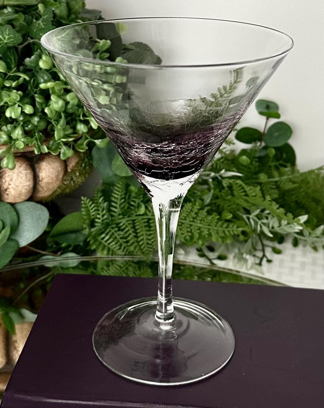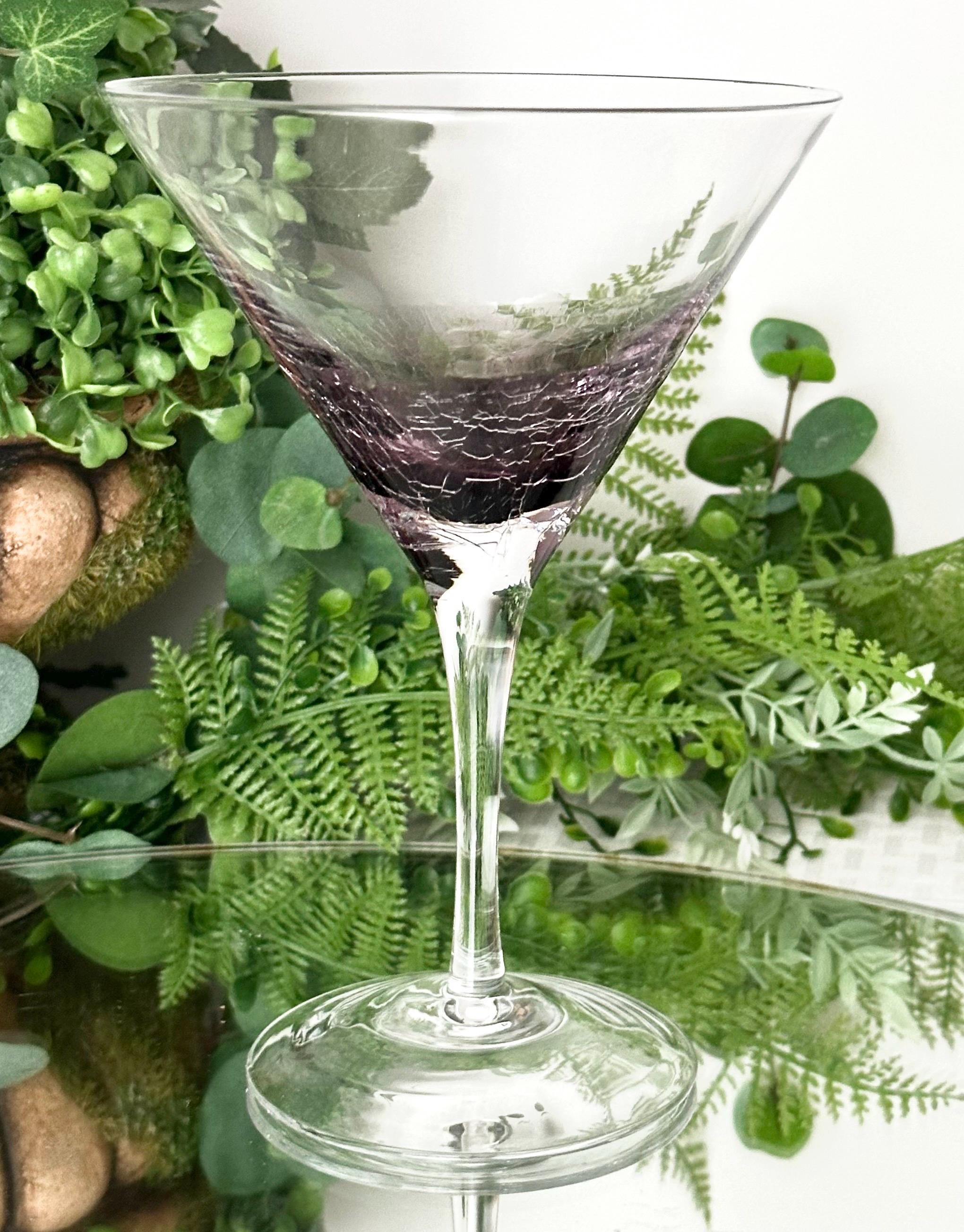 This is for a wonderful Purple and Clear colored Pier 1 Martini Glasses in the Crackle Glass pattern. These were produced from 2012 to 2020.