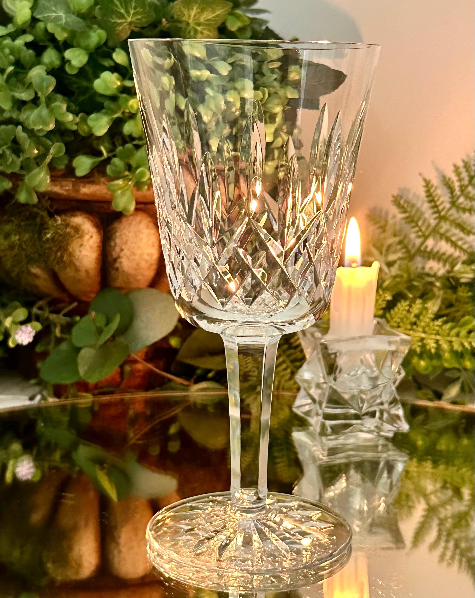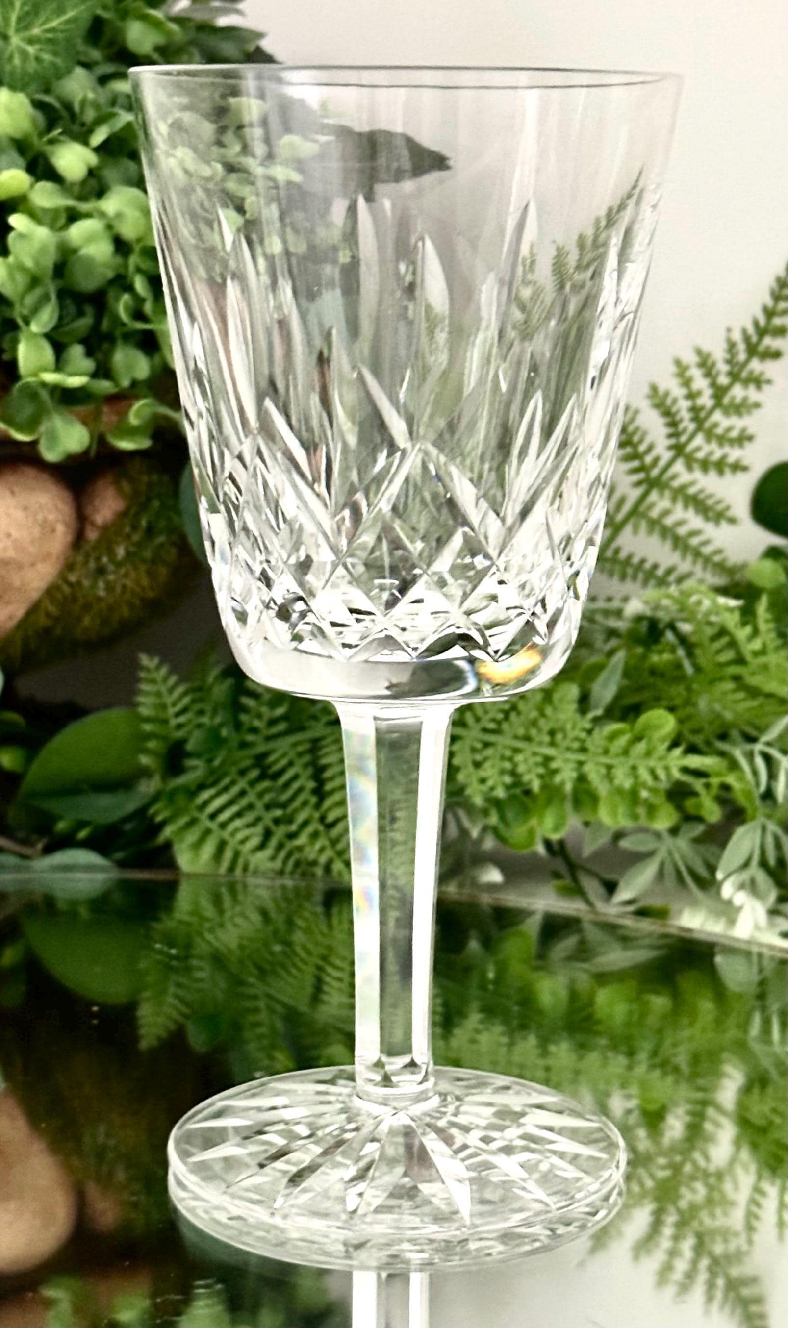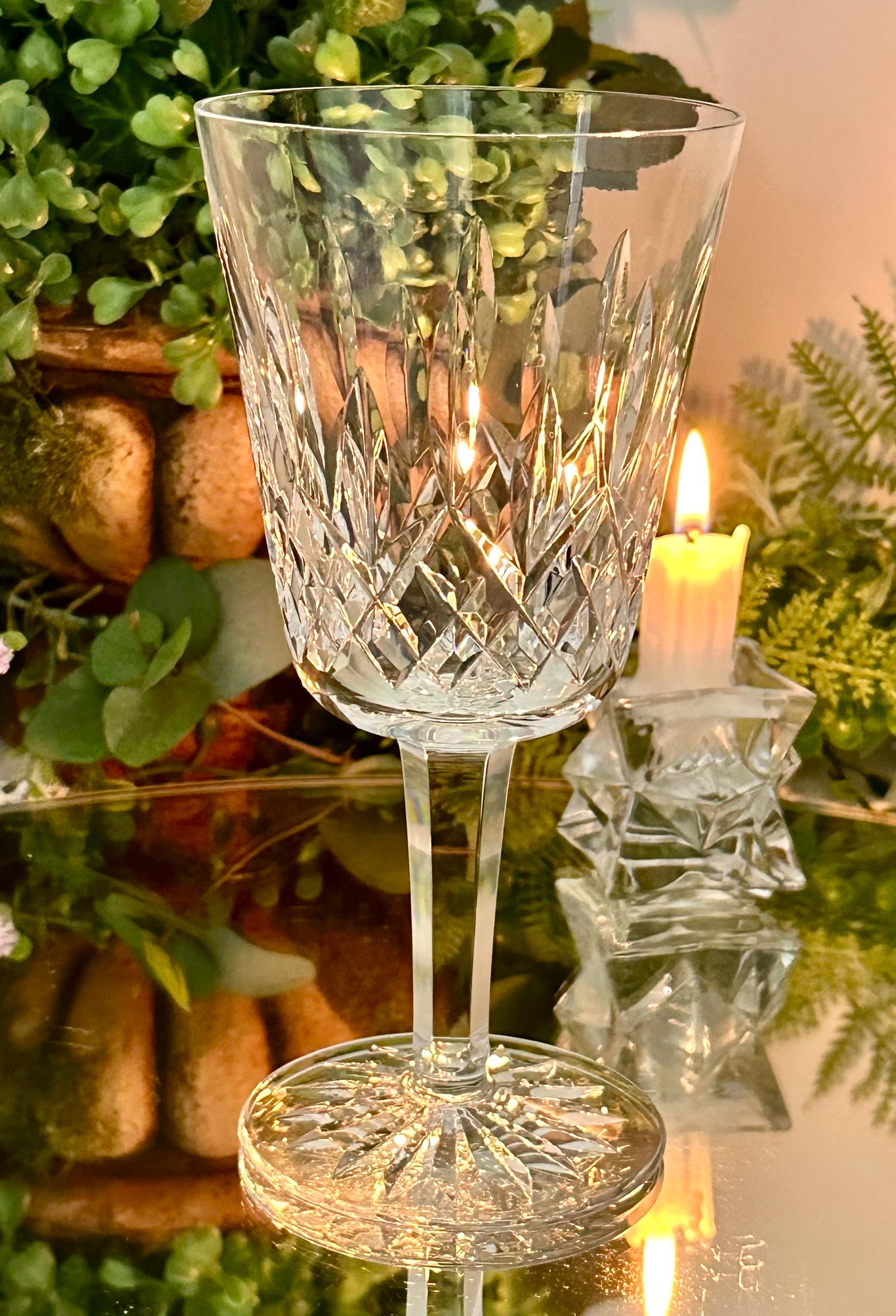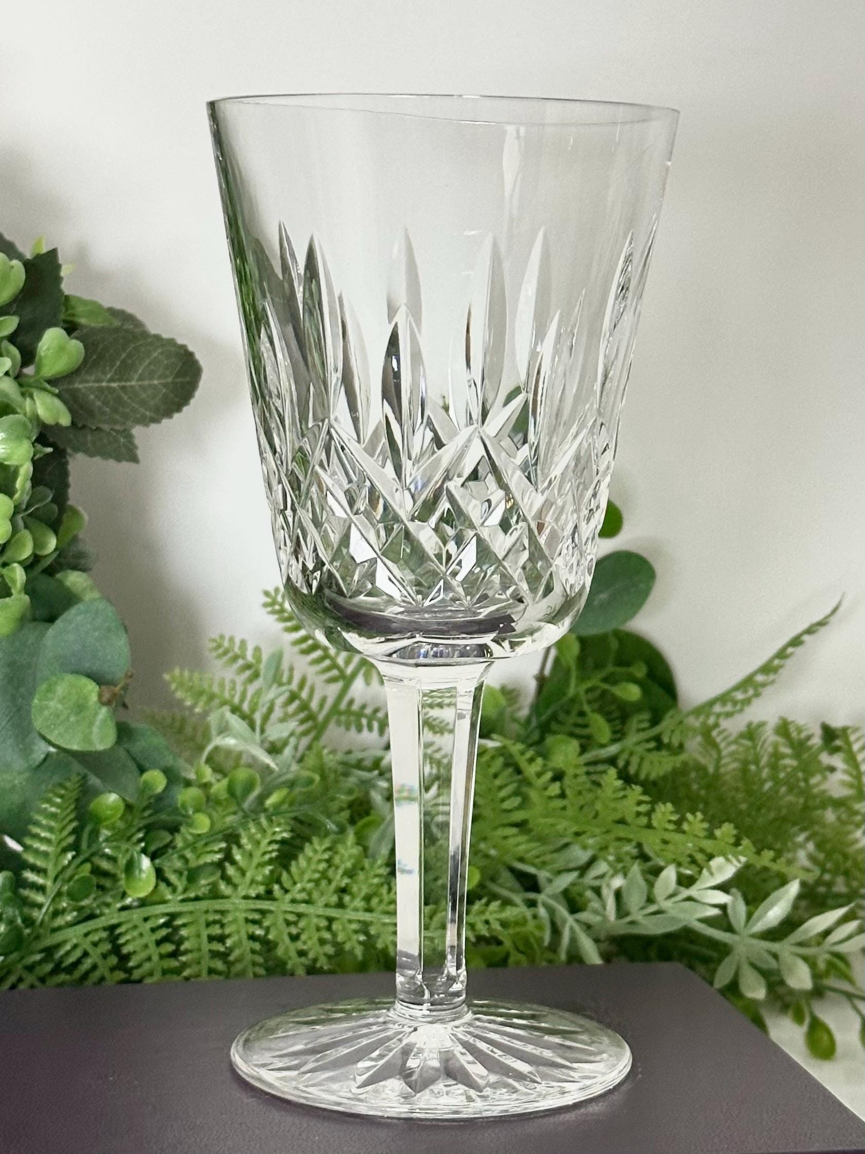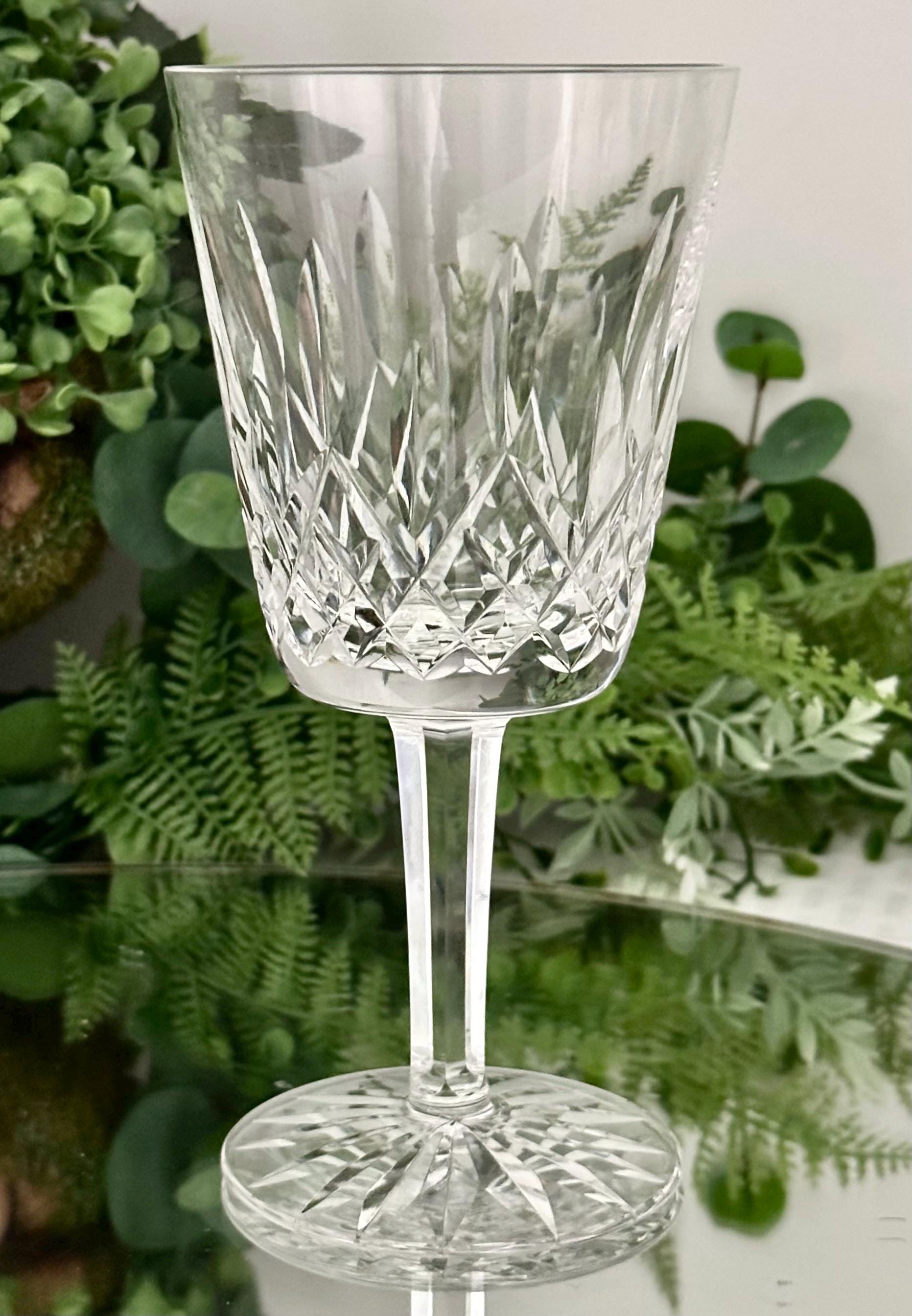 This is for 1 Elegant Vintage glass in the Waterford Crystal Water Goblet / Water Glass size in the Lismore pattern. This beautifully Hand Cut Crystal Glass measures: 6 7/8 inches tall x 3 3/8 inches in diameter. This vintage stemware water glass is Blown glass with vertical cuts on bowl and a fan cut on the base.