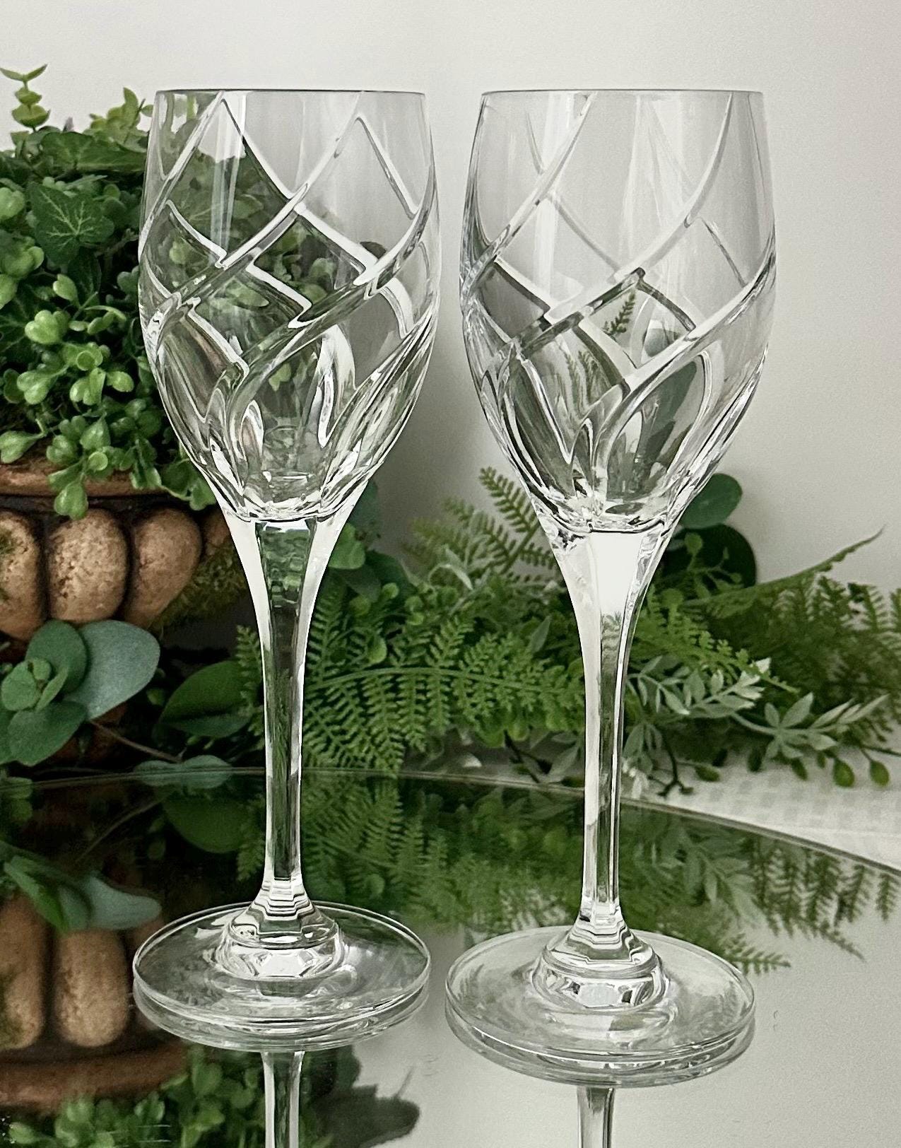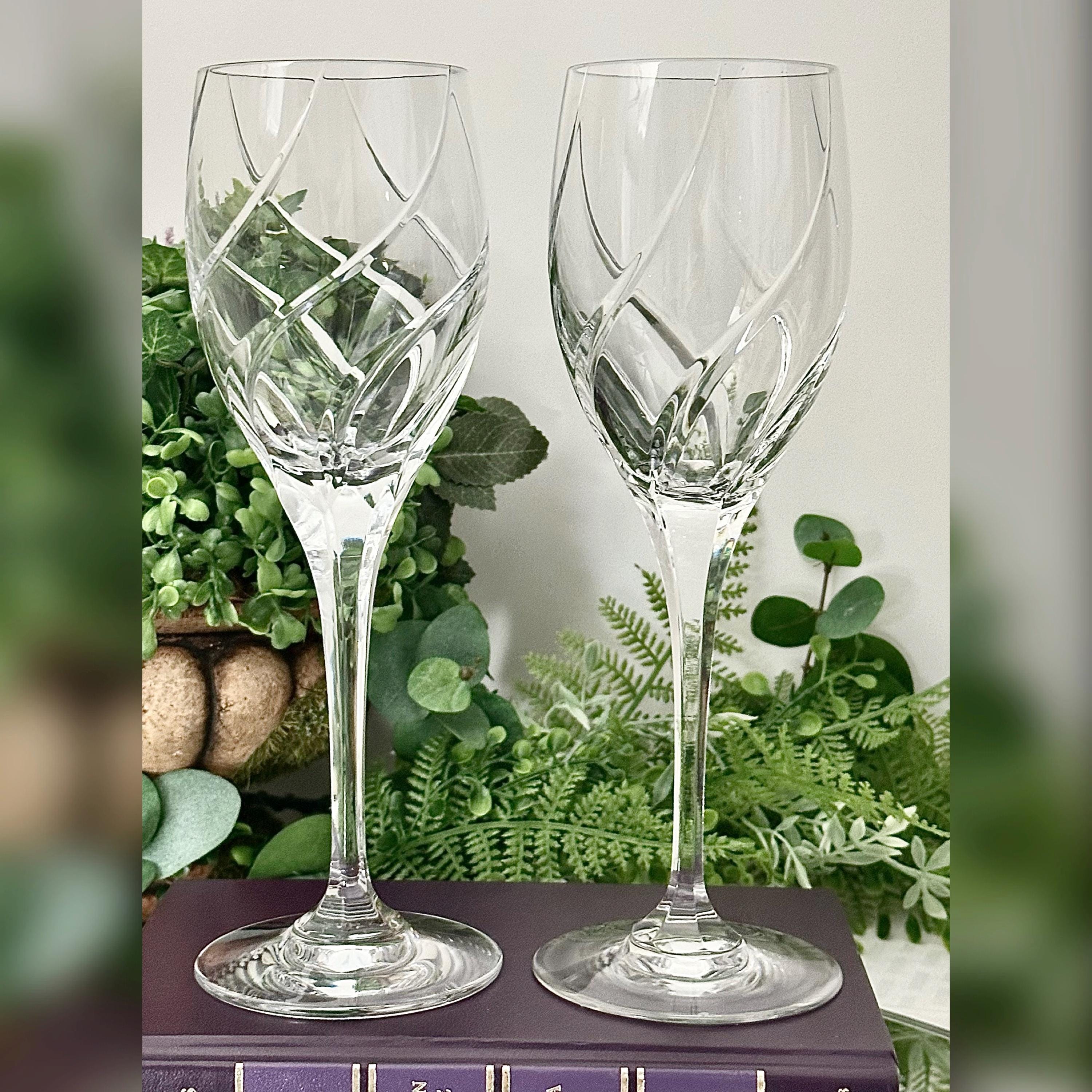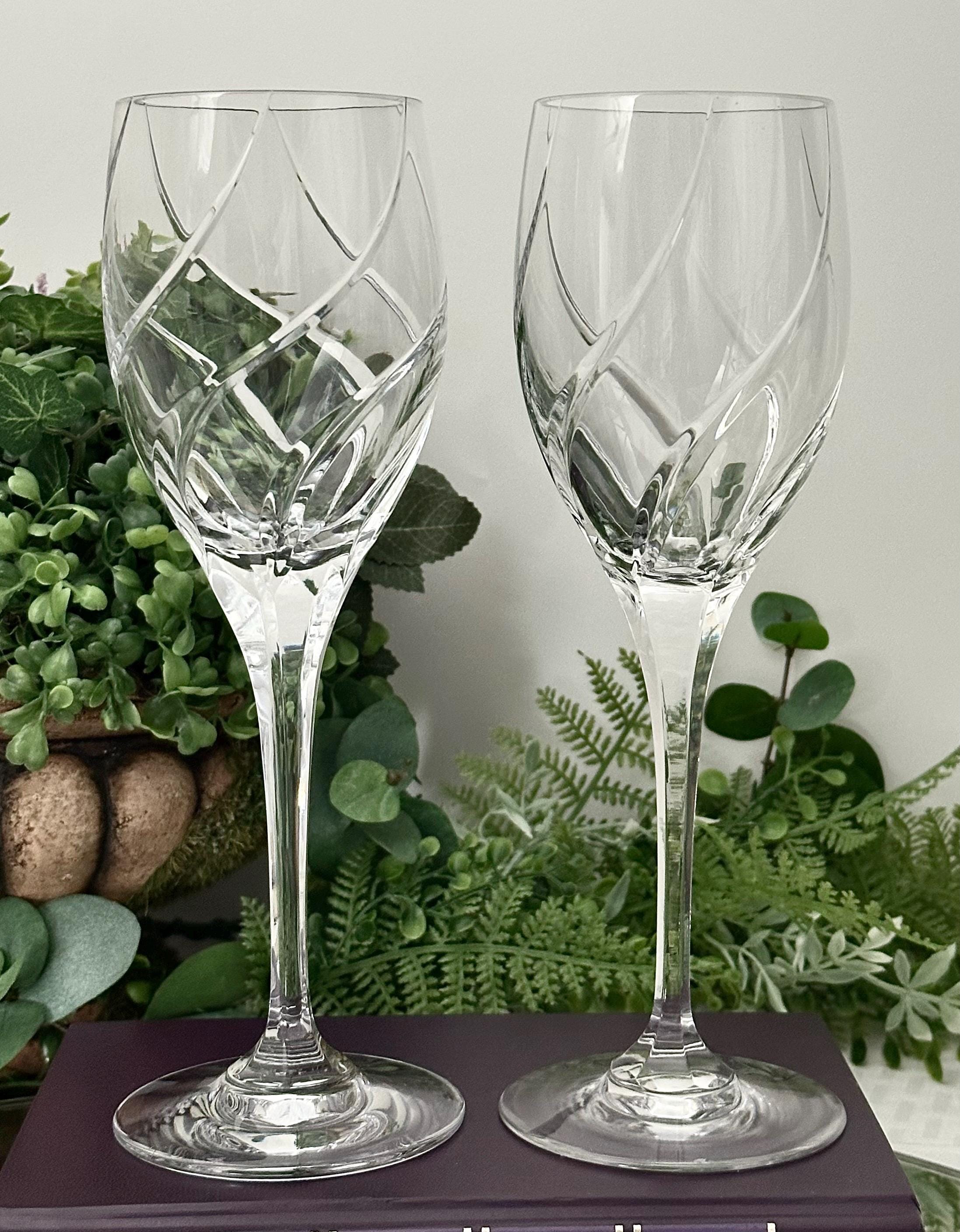 These have beautiful full swirl cuts on the bowl with a multisided stem and very light reflective. These are in wonderful condition with no chips, cracks or water staining and ready to use and enjoy for years to come!! These make for perfect replacement glasses or to start a new set.