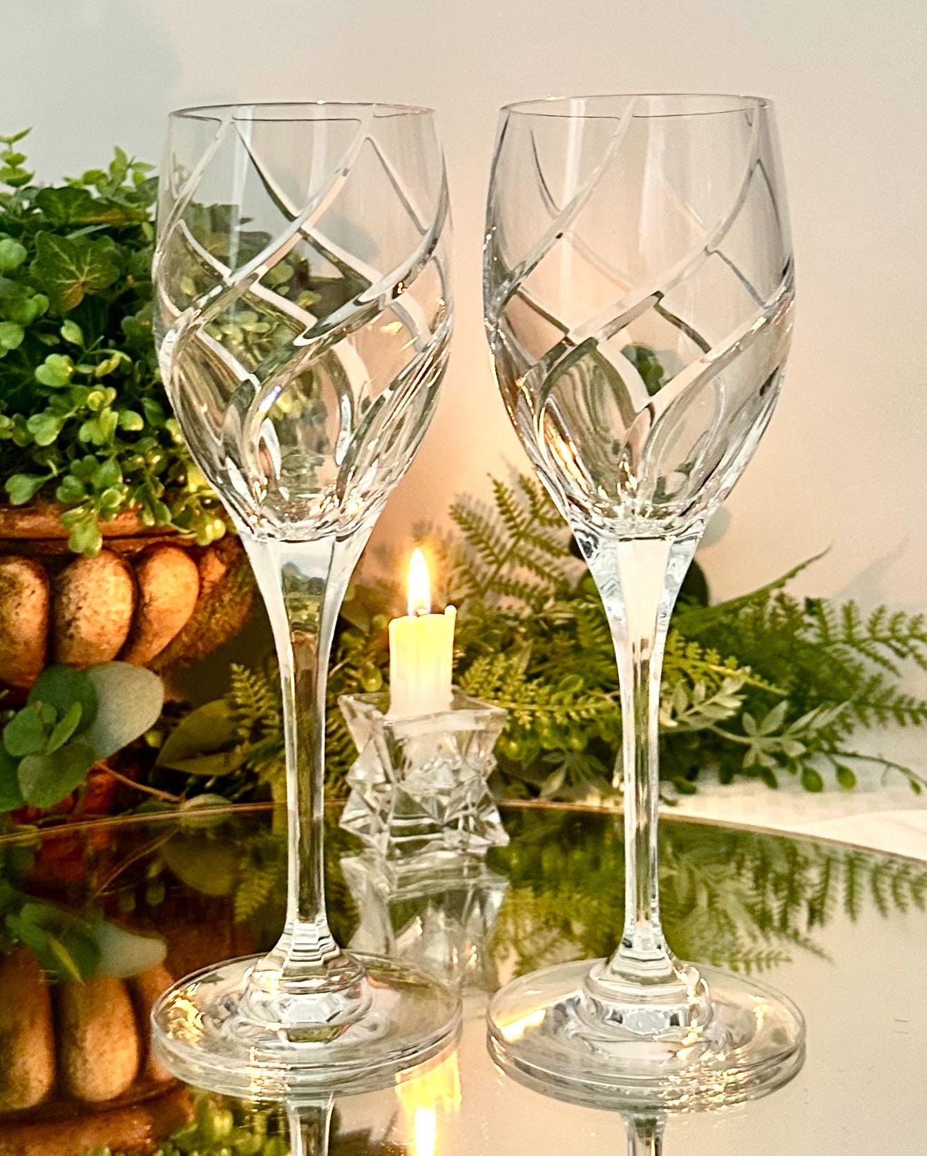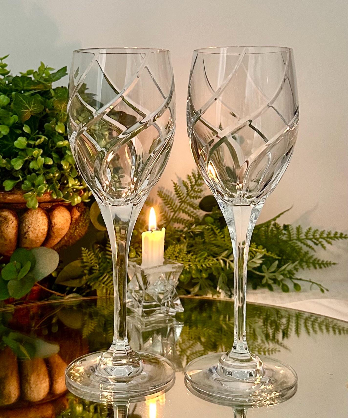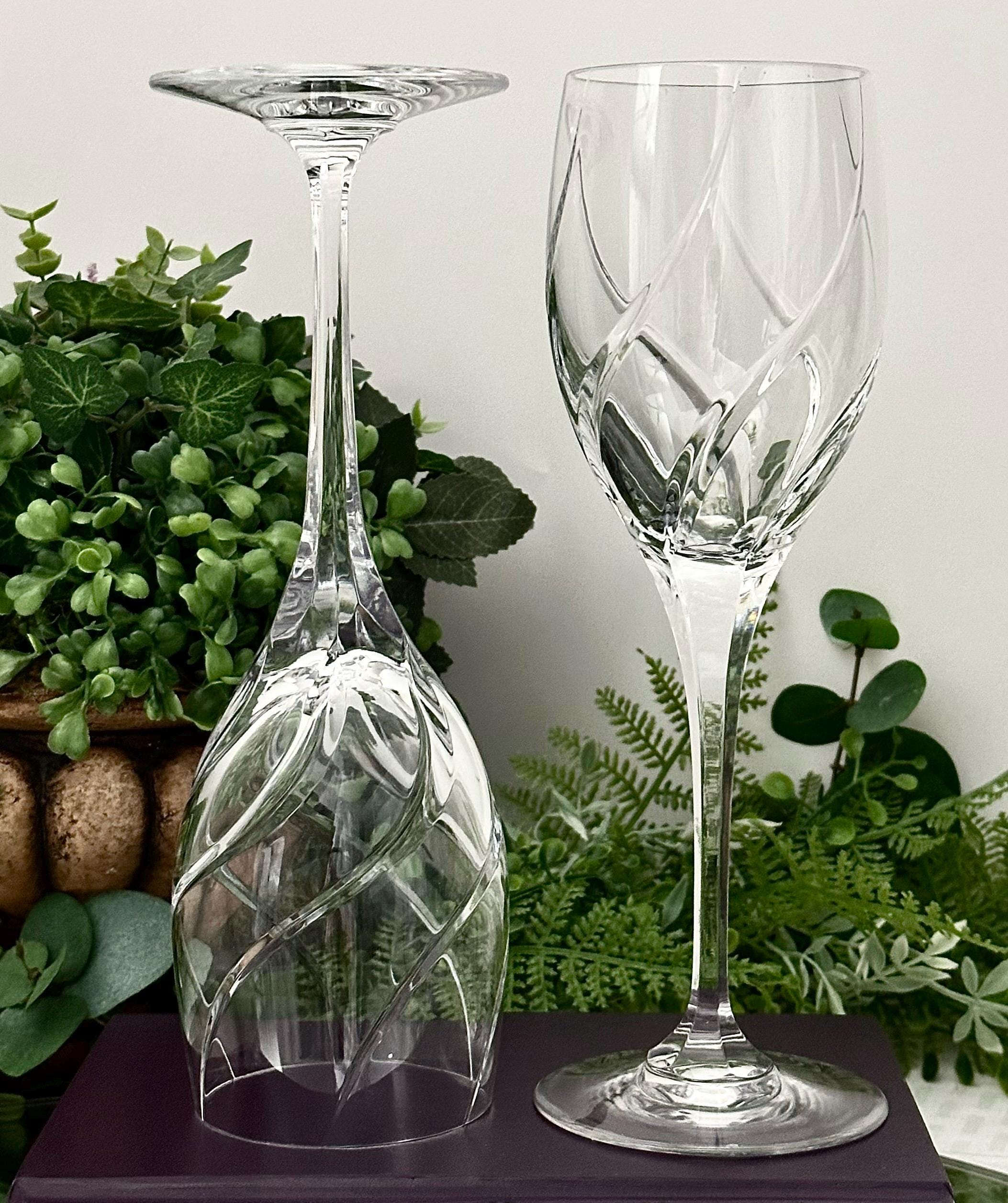 These have beautiful full swirl cuts on the bowl with a multisided stem and very light reflective. These are in wonderful condition with no chips, cracks or water staining and ready to use and enjoy for years to come!! These make for perfect replacement glasses or to start a new set.