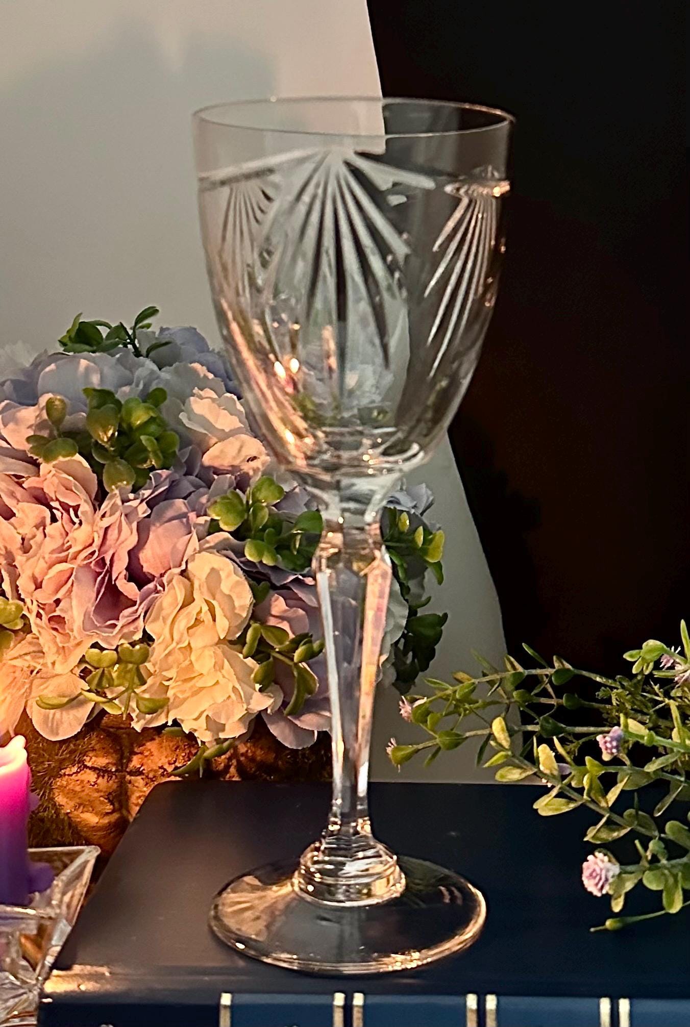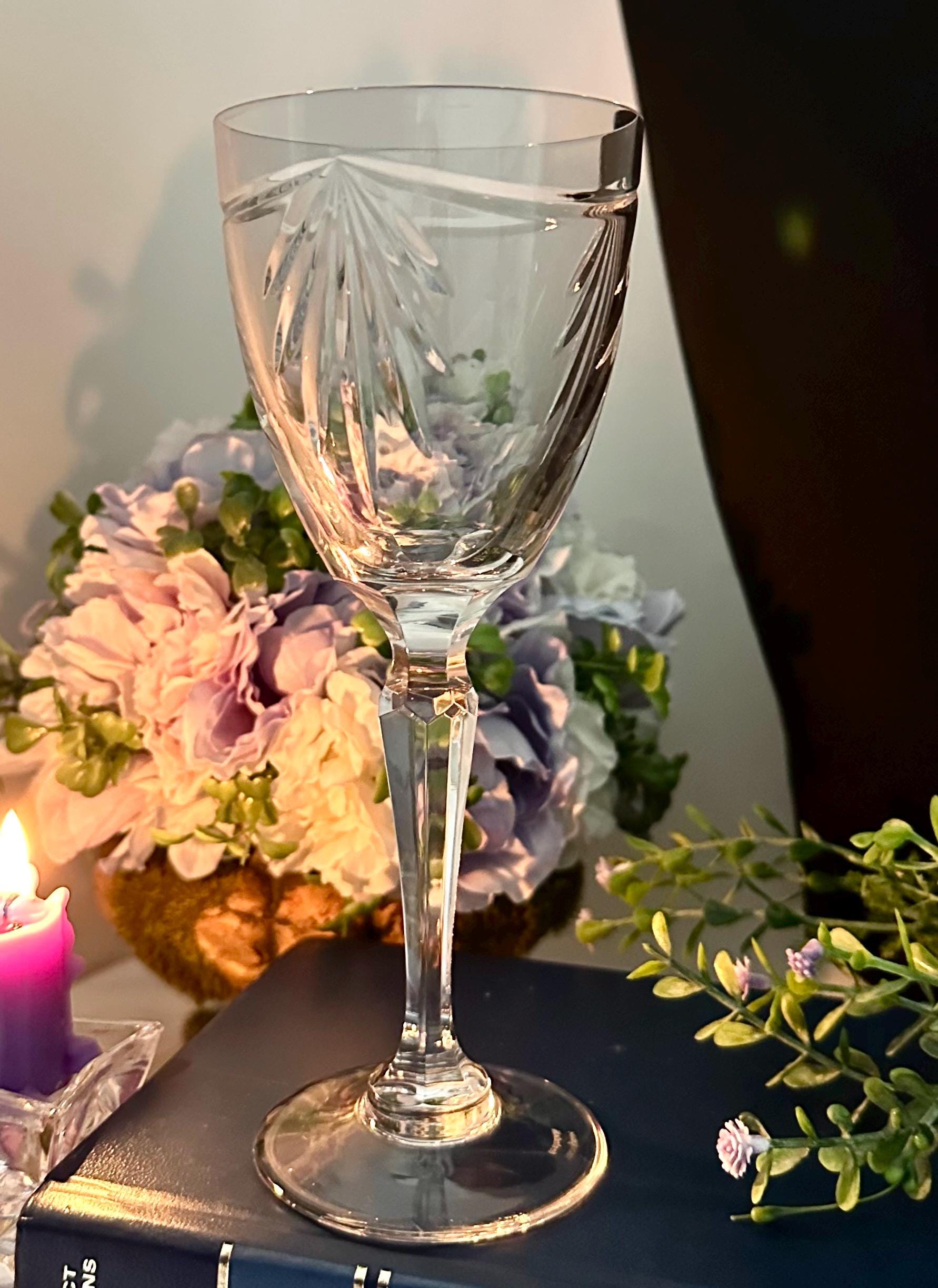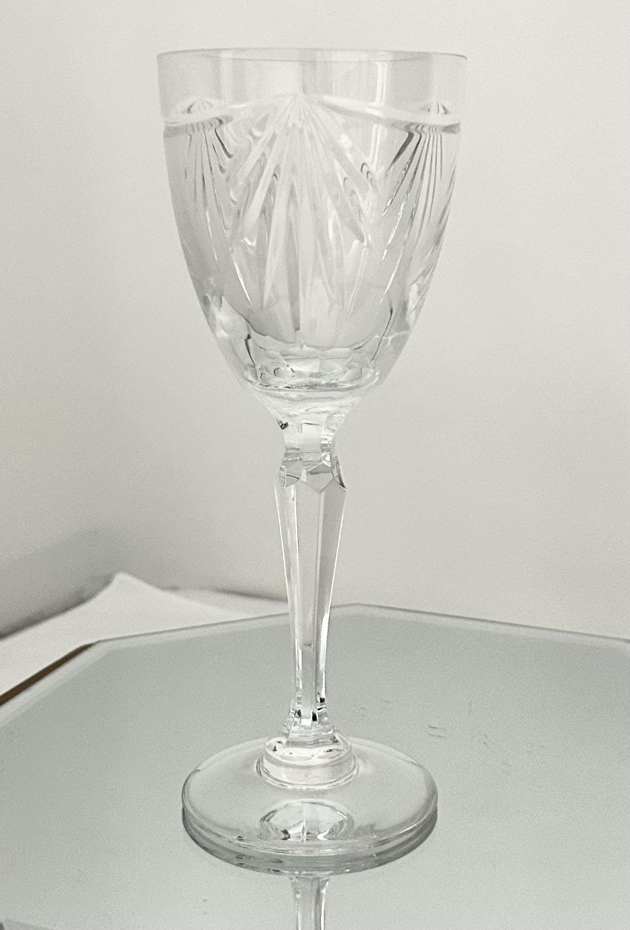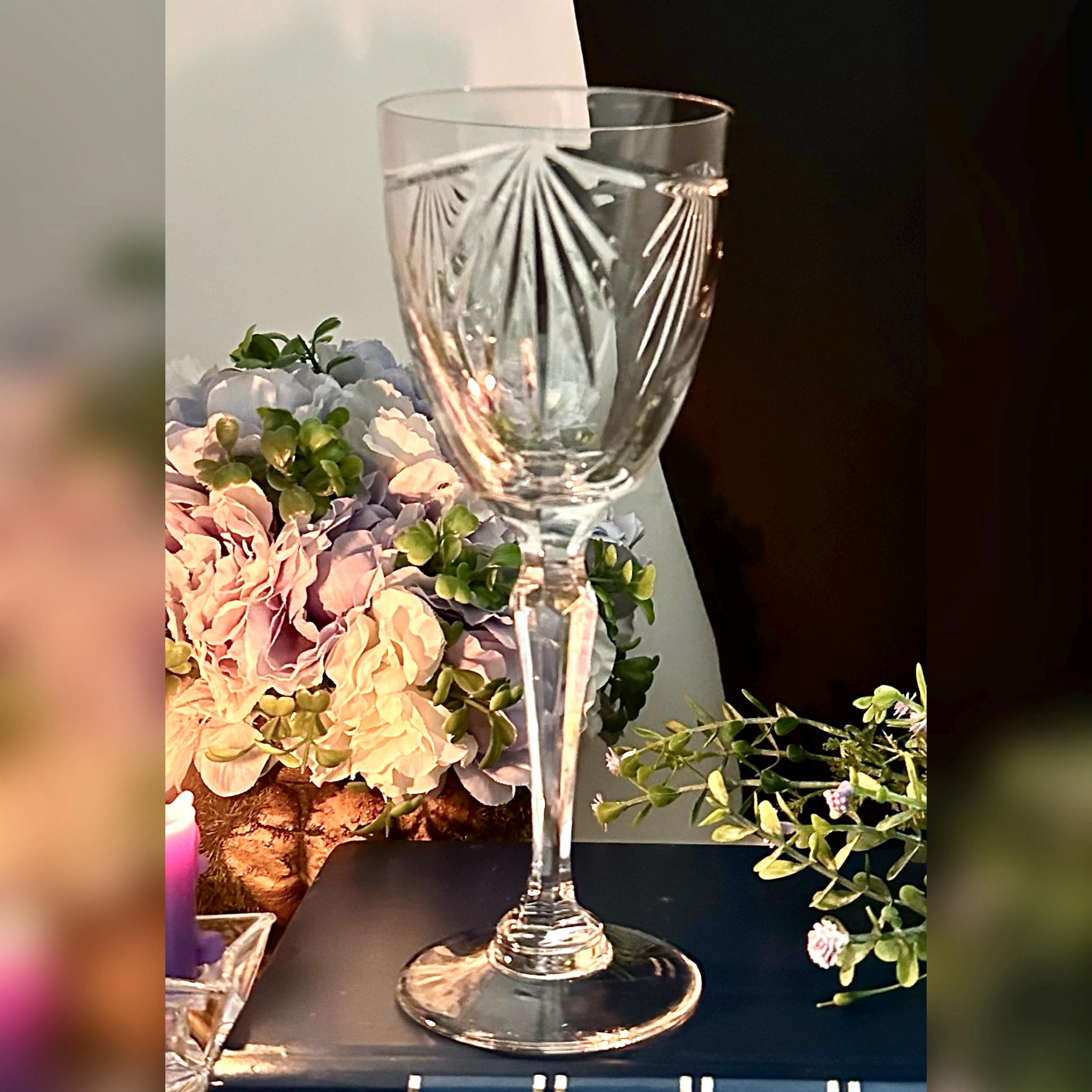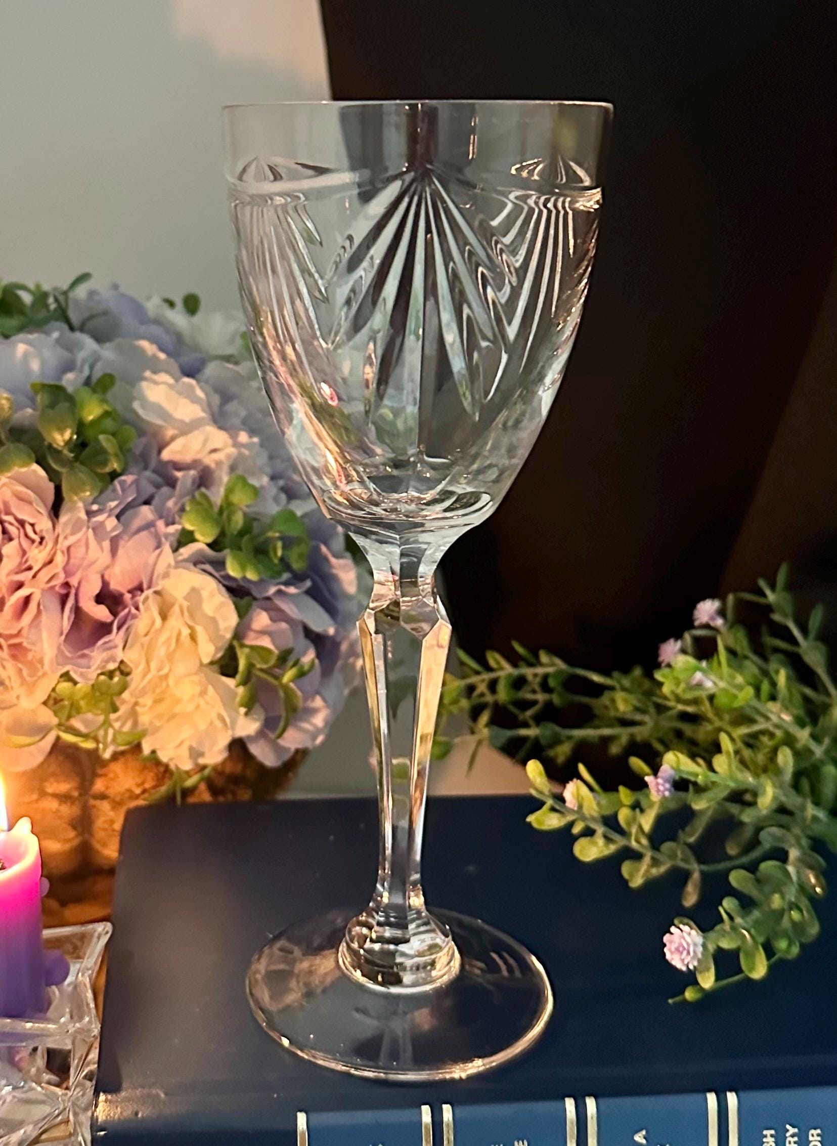 This Wine Glass is a vintage collectible wine glass made of elegant glass, featuring an all-over pattern and a contemporary style. The Bowl of this lovely glass is decorated with a Garland cut and a fan with a multi sided stem.