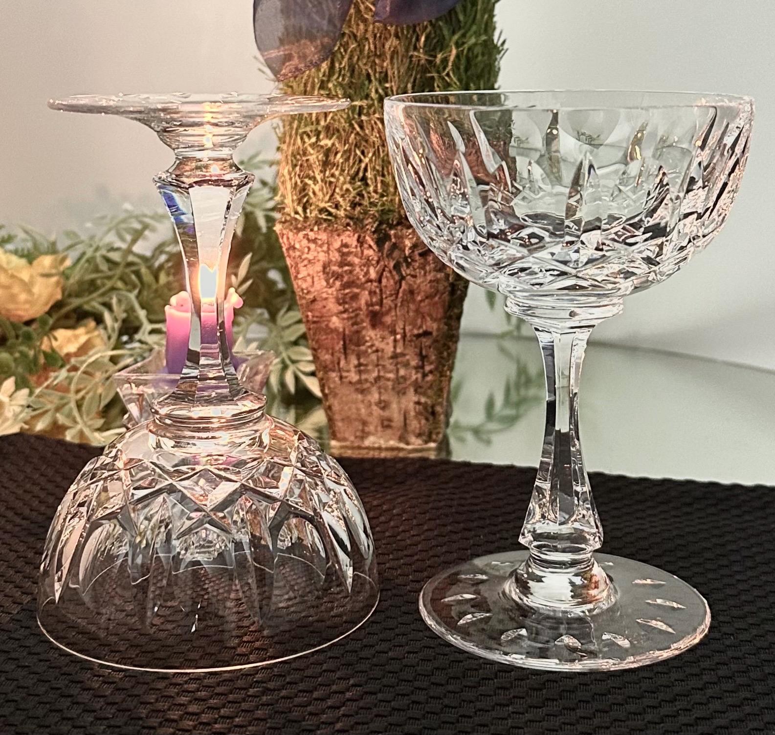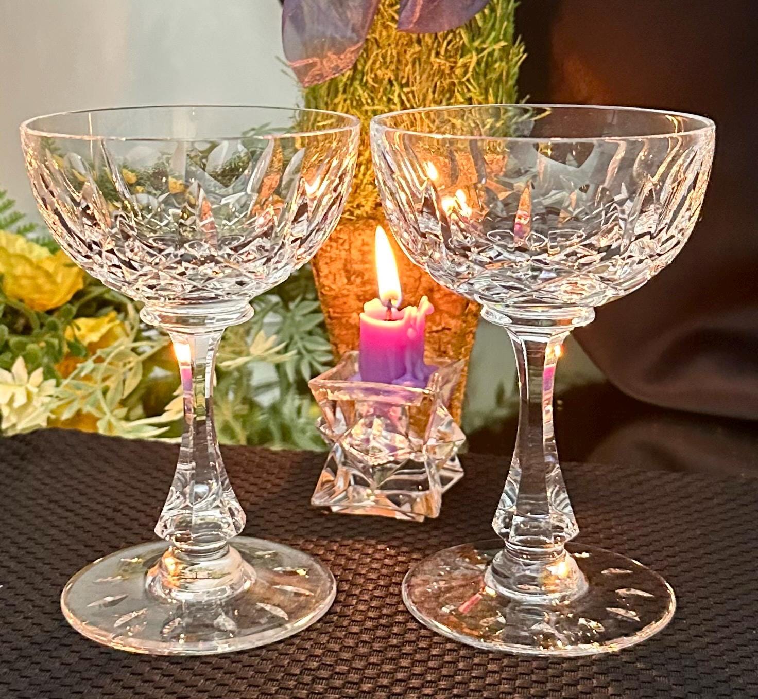 This is for a set of 2 Vintage elegant Josair Champagne crystal glasses. These are in the cut blown glass pattern of Monte Claire. This pattern has lovely deep cuts in the hand blown crystal. These tall dessert / champagne glasses were produced from 1964 to 1988 and are discontinued.