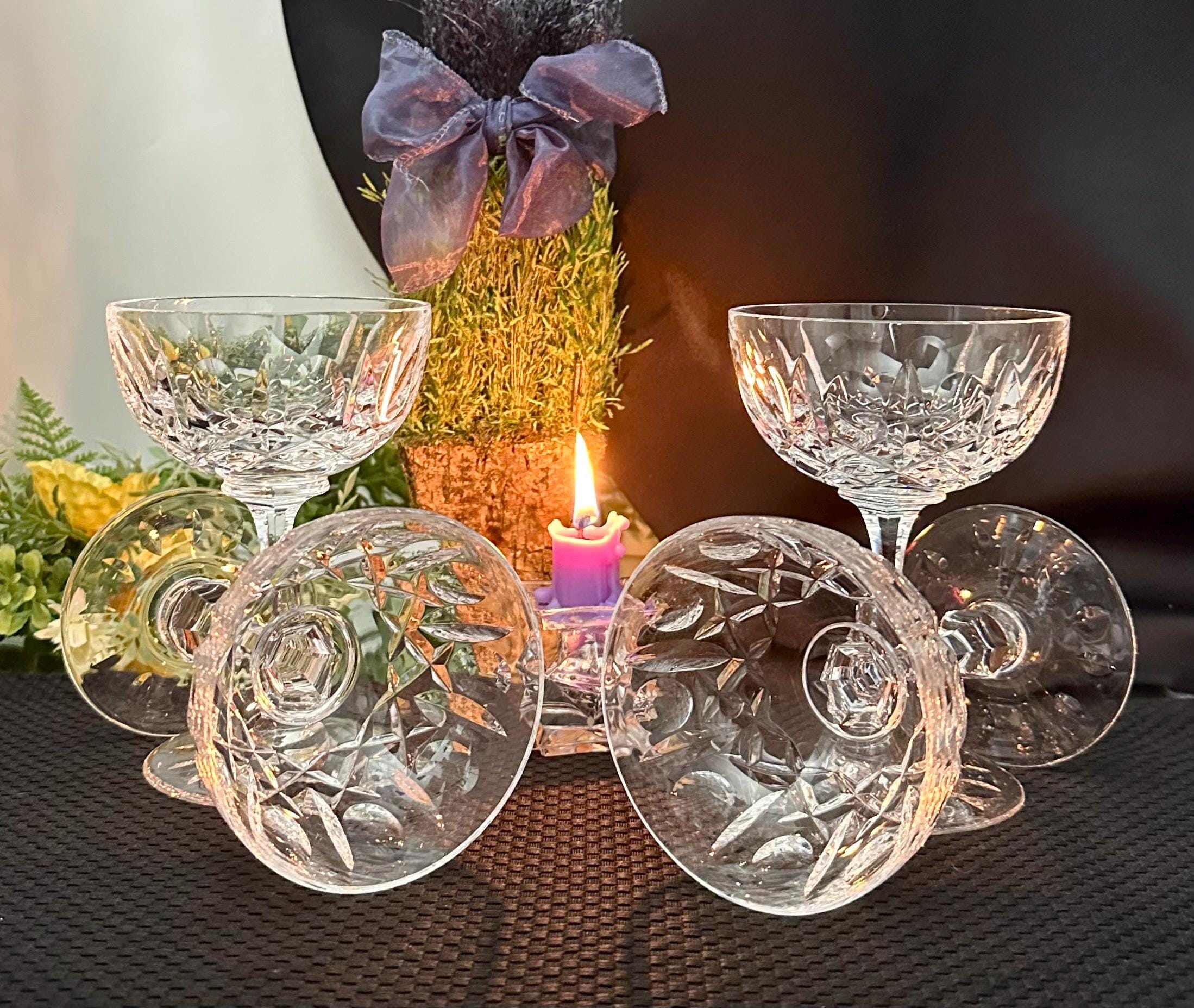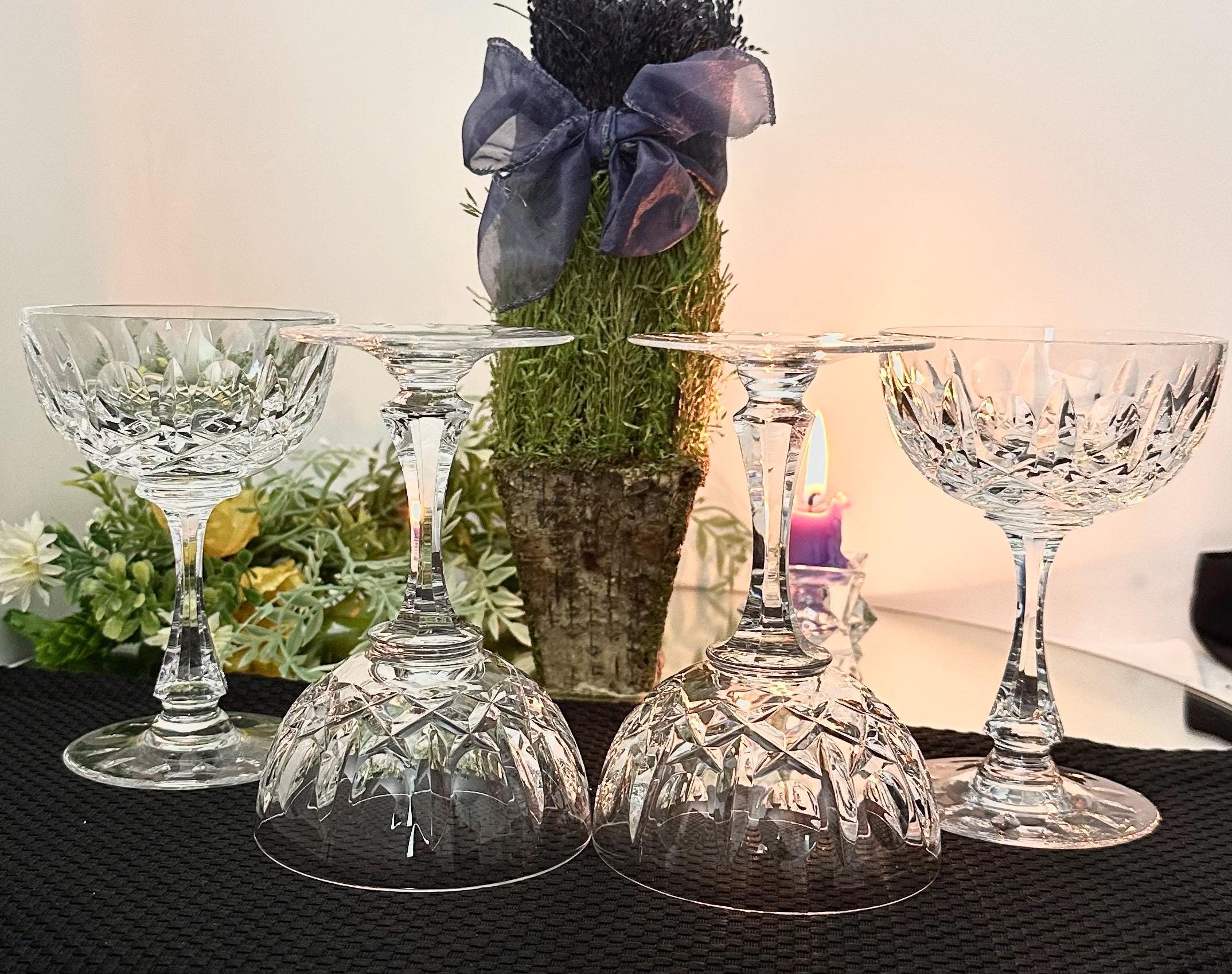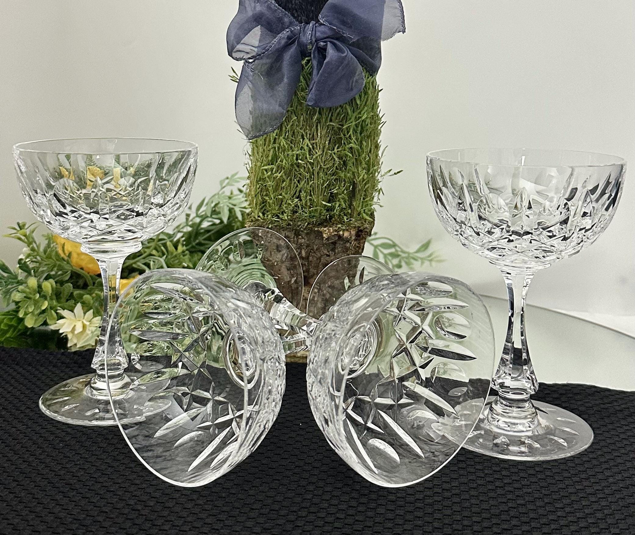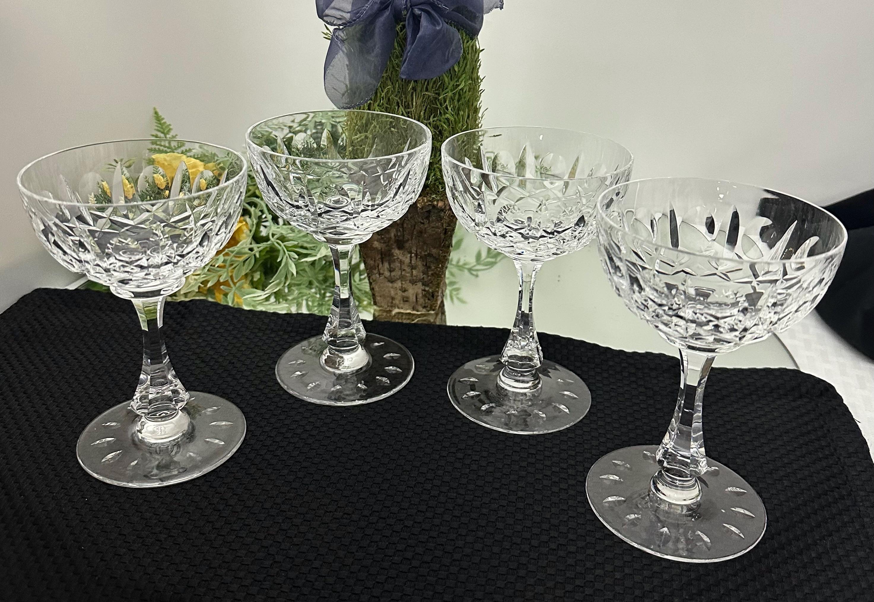 This is for a set of 4 Vintage Josair elegant tall Dessert Cup / Champagne Coupe crystal glasses. These are in the cut blown glass pattern of Monte Claire. This pattern has lovely deep cuts in the hand blown crystal. These toasting glasses were produced from 1964 to 1988 and are discontinued.
