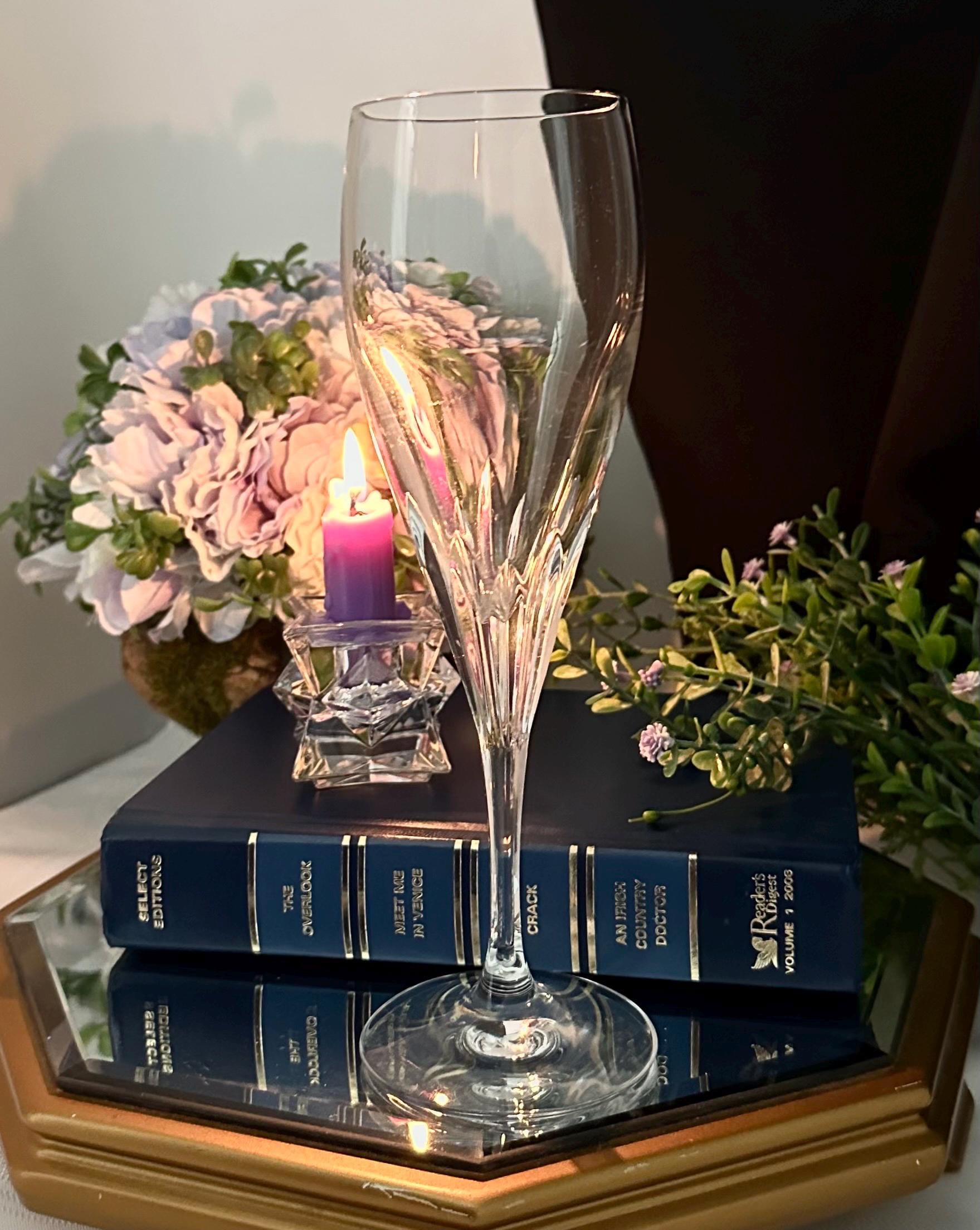 This lovely champagne glass has no chips, cracks or water staining and makes for a perfect replacement glass to add to your set or to start a new one!