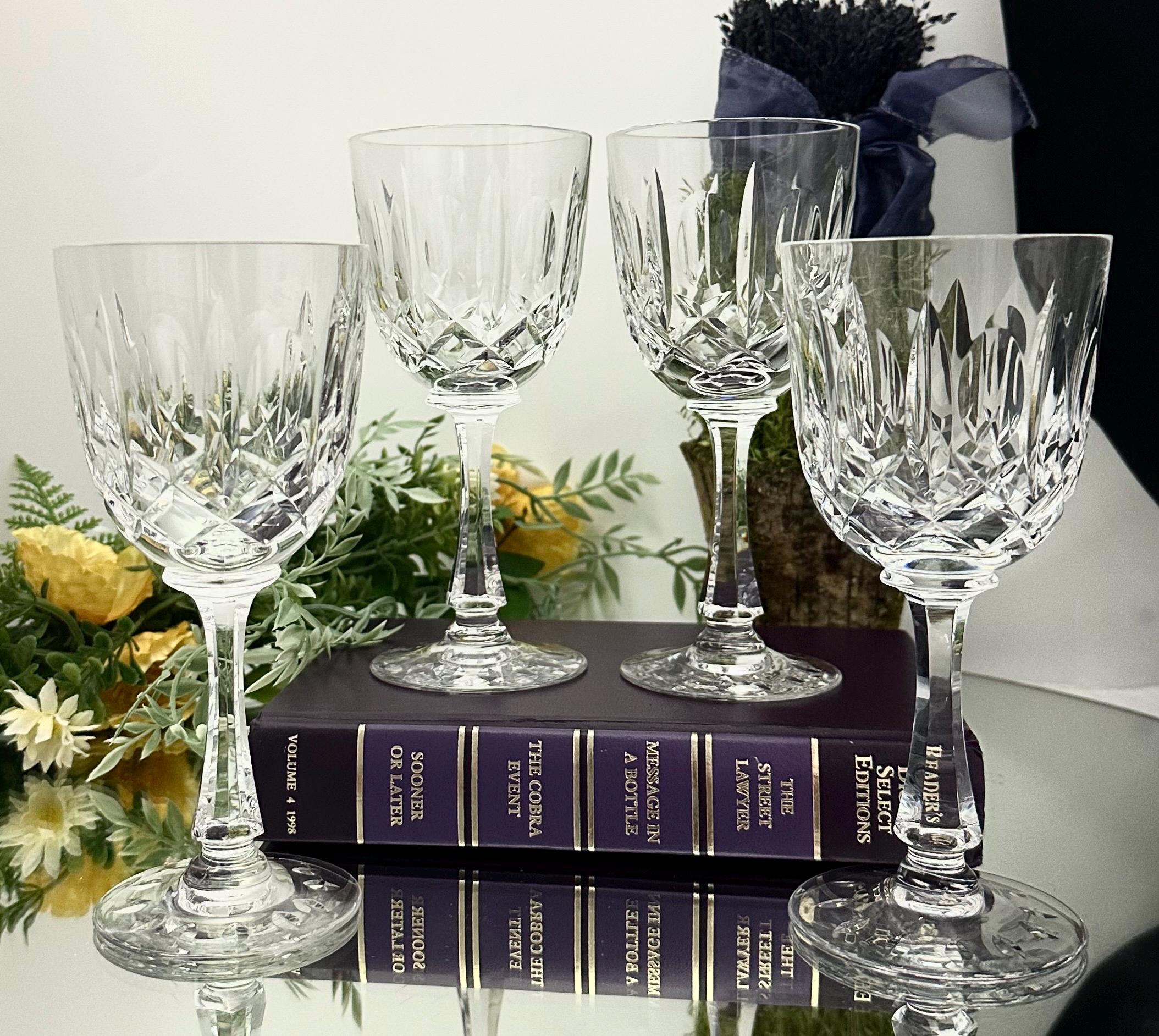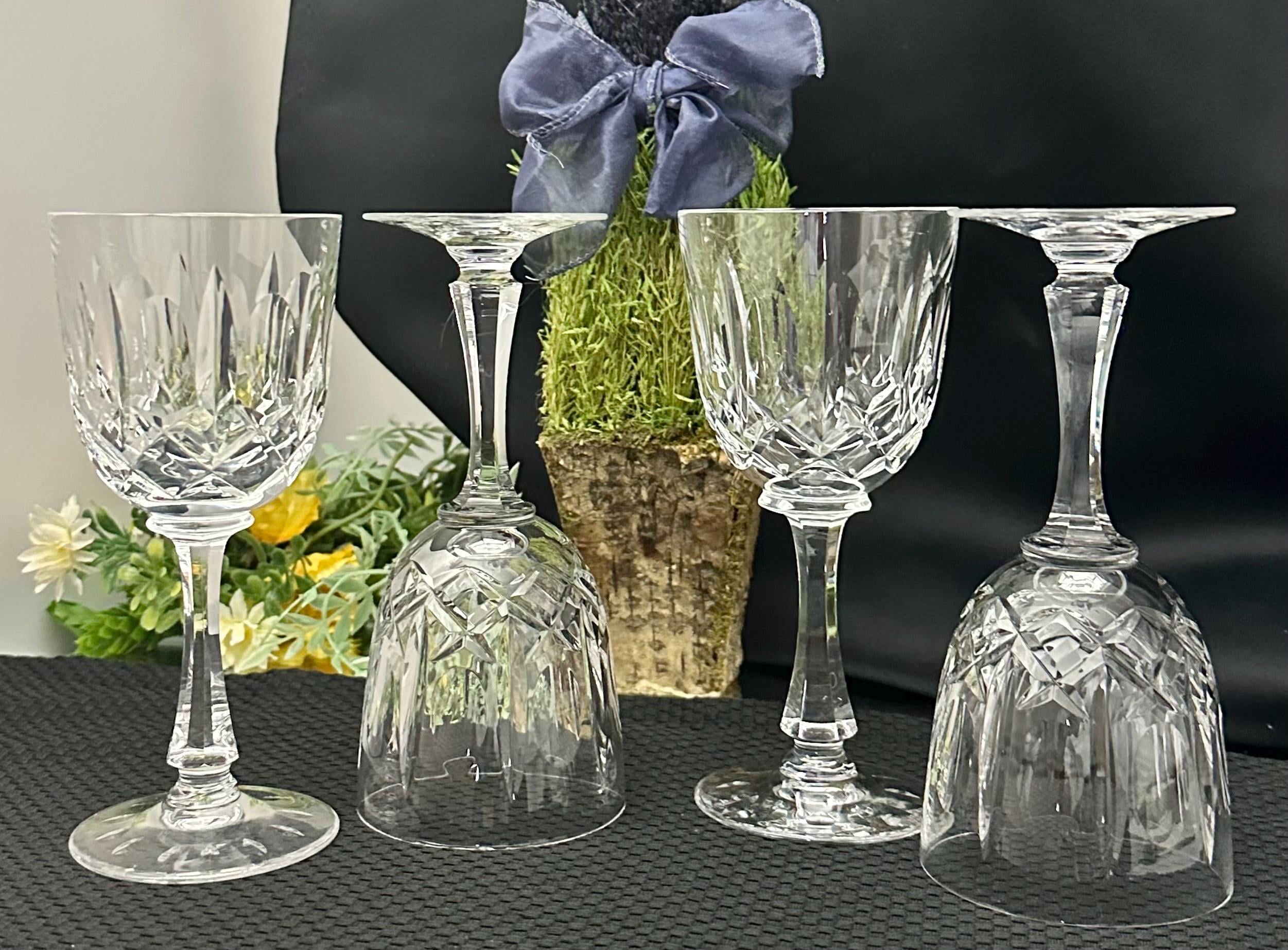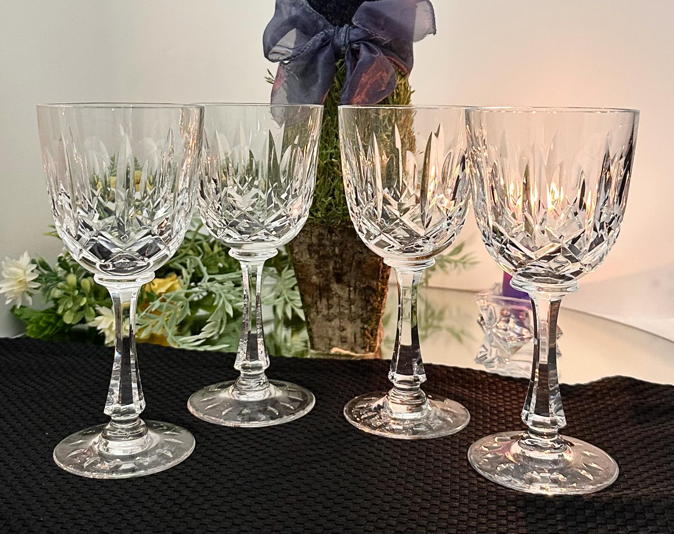 This is for a set of 4 elegant Josair Wine crystal glasses. These Vintage Cut Crystal Glasses are in the cut blown glass pattern of Monte Claire. This pattern has lovely deep cuts in the hand blown crystal. These wine glasses were produced from 1964 to 1988 and are discontinued.