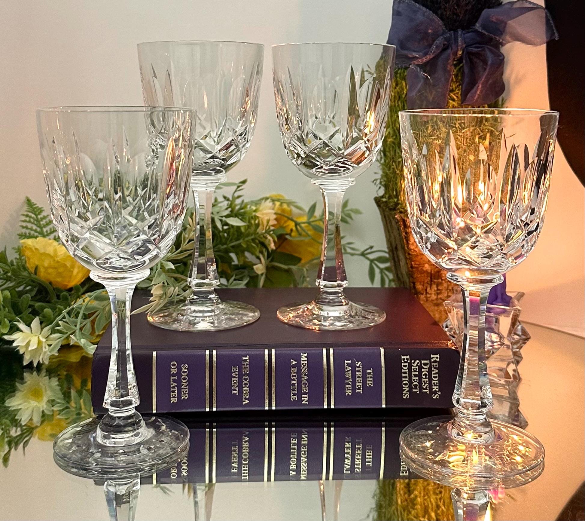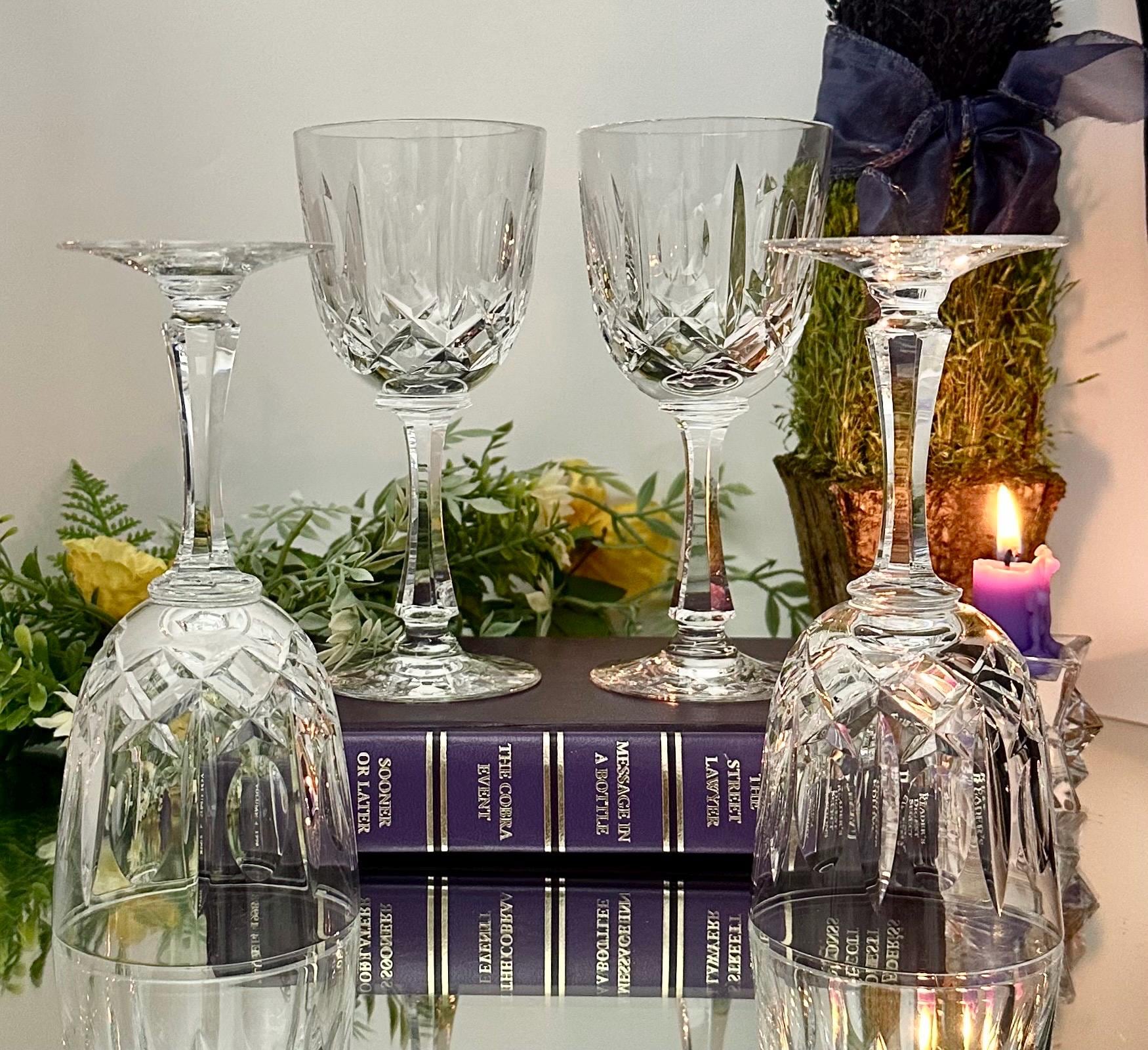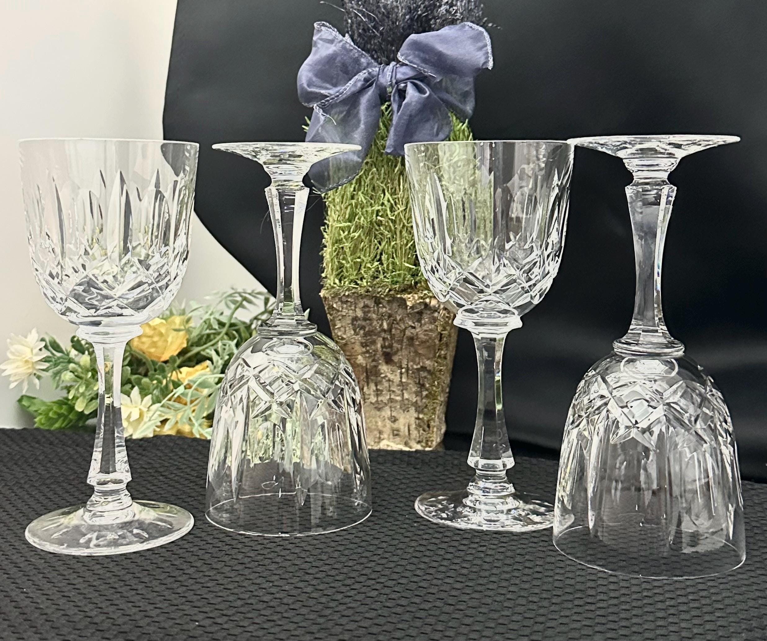 This is for a set of 4 elegant Josair Wine crystal glasses. These Vintage Cut Crystal Glasses are in the cut blown glass pattern of Monte Claire. This pattern has lovely deep cuts in the hand blown crystal. These wine glasses were produced from 1964 to 1988 and are discontinued.