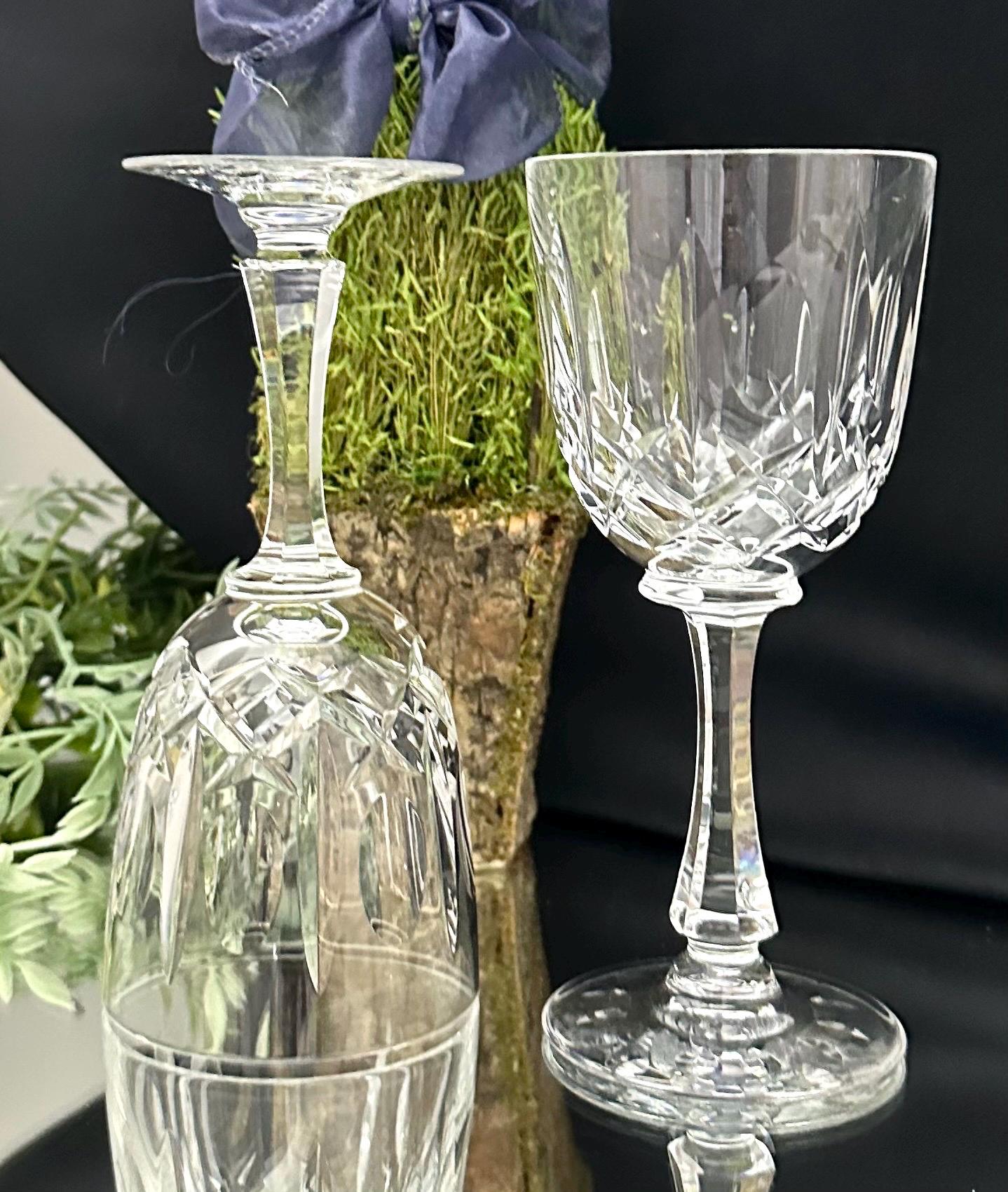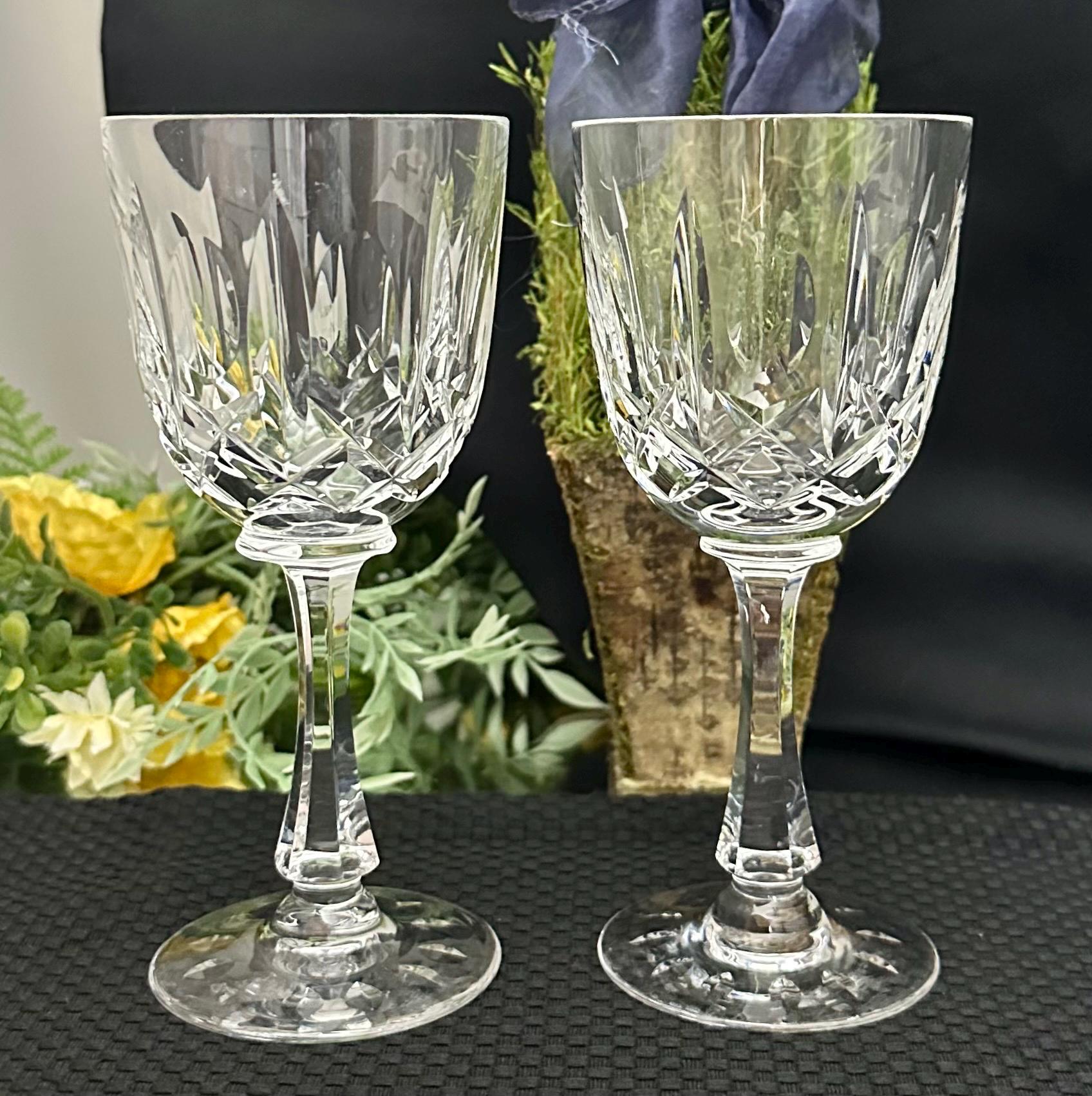 This is for a set of 2 elegant Josair Wine crystal glasses. These Vintage Cut Crystal Glasses are in the cut blown glass pattern of Monte Claire. This pattern has lovely deep cuts in the hand blown crystal. These glasses were produced from 1964 to 1988 and are discontinued.