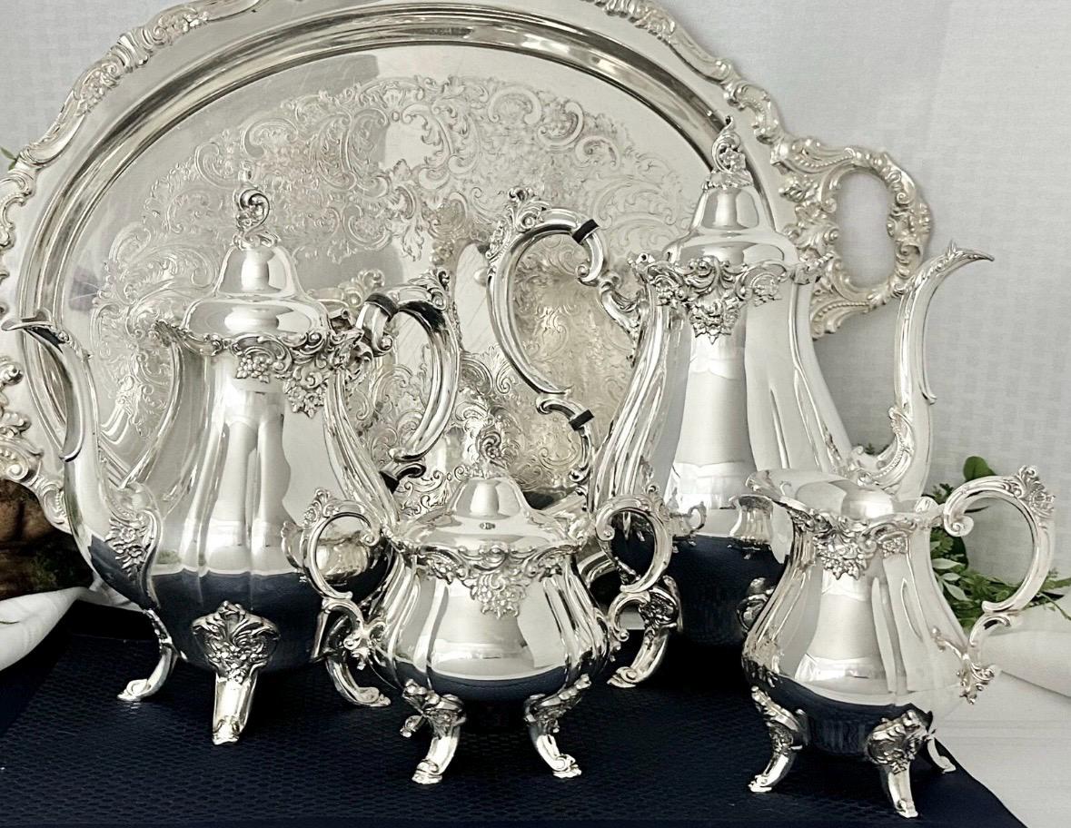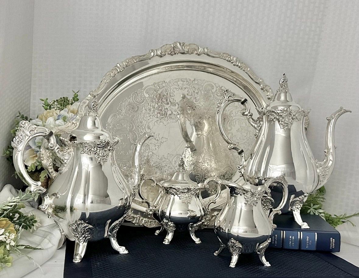 This is for a lovely Elegant Silver plated Tea set from Wallace in the Baroque pattern. There are five pieces in this set. This set is in nice condition to use or display and will be enjoyed for years to come!