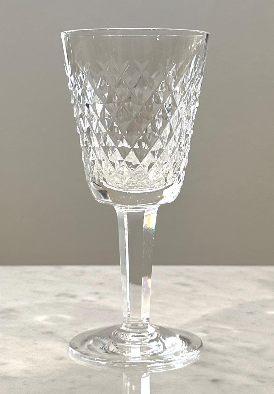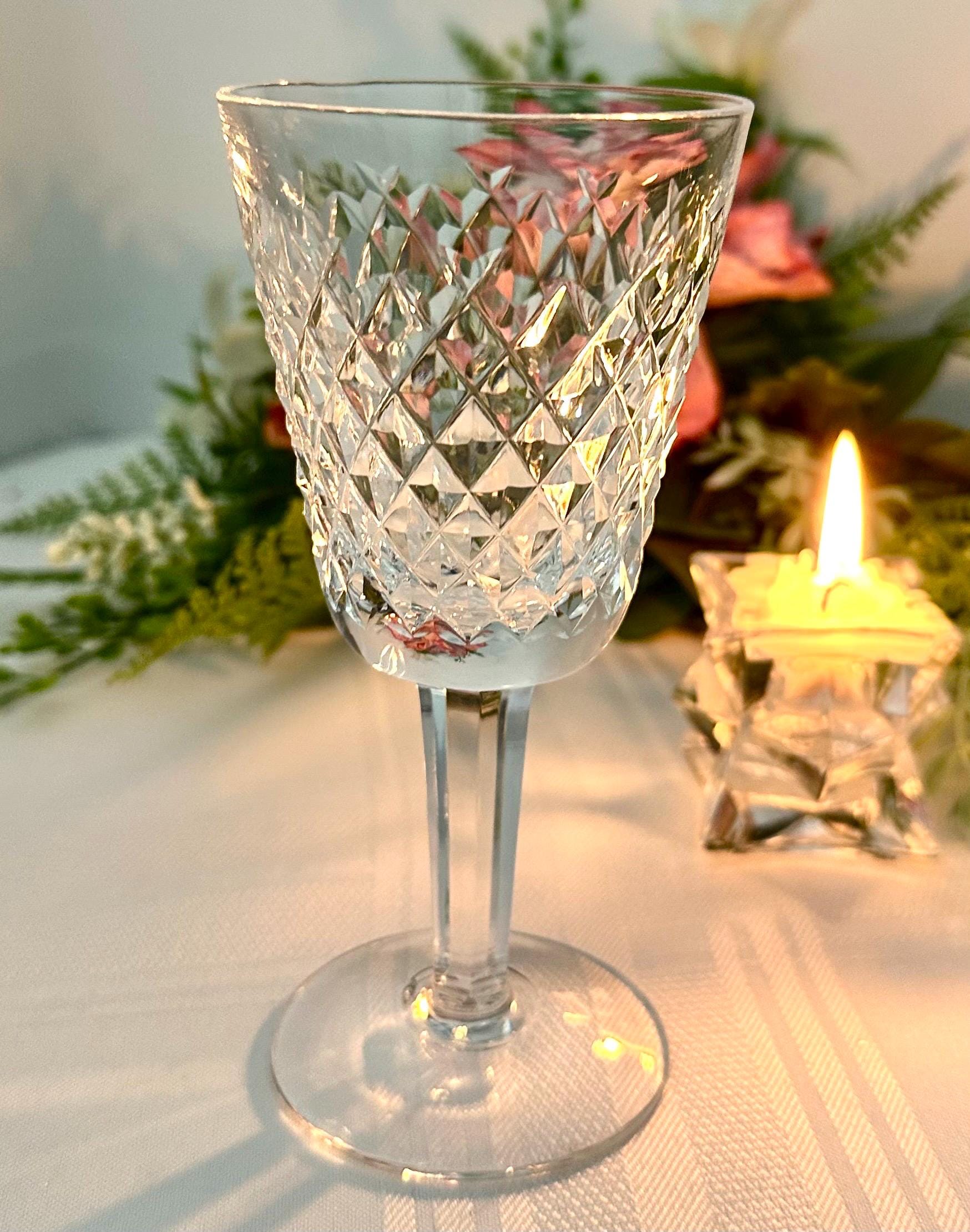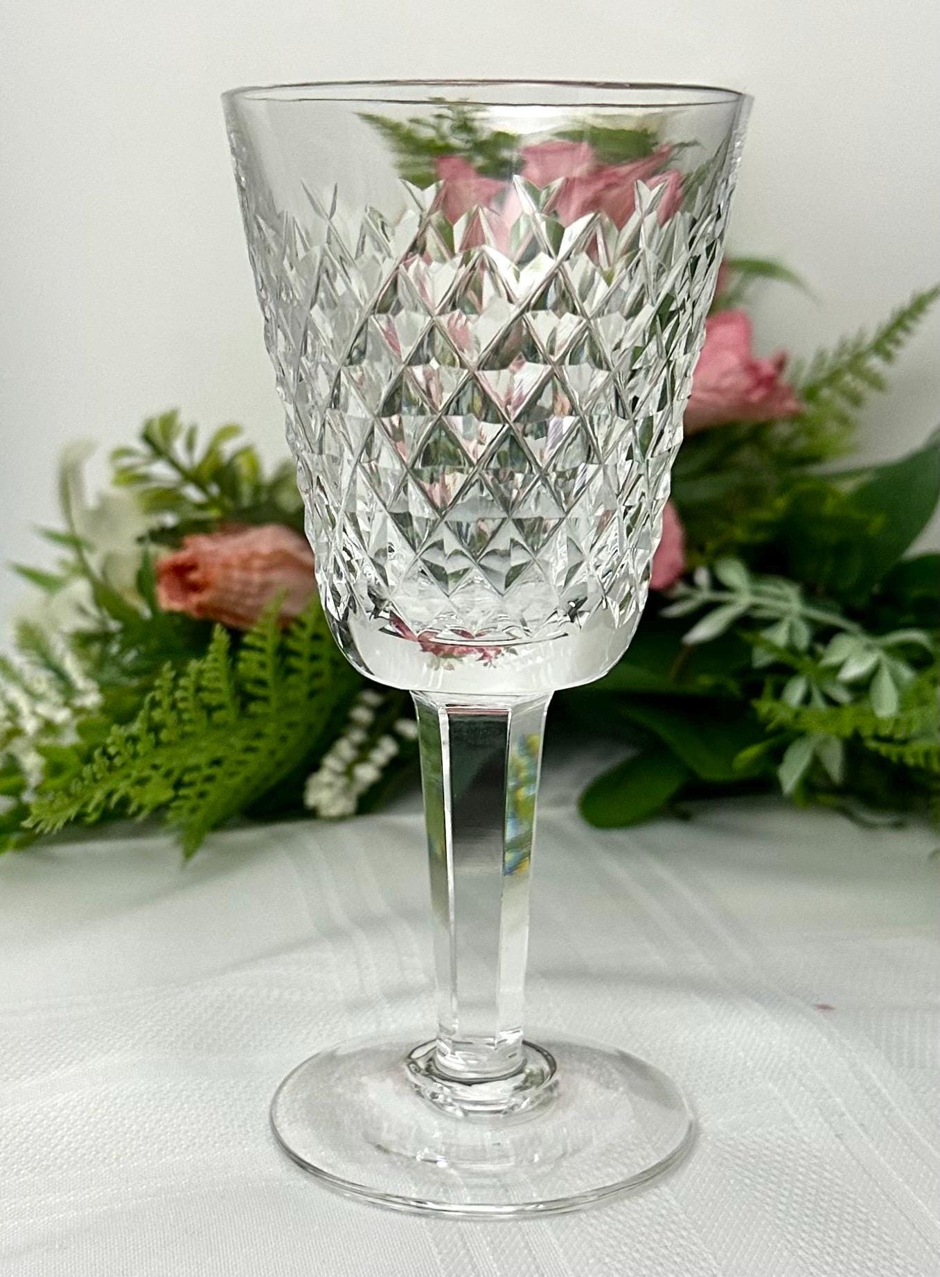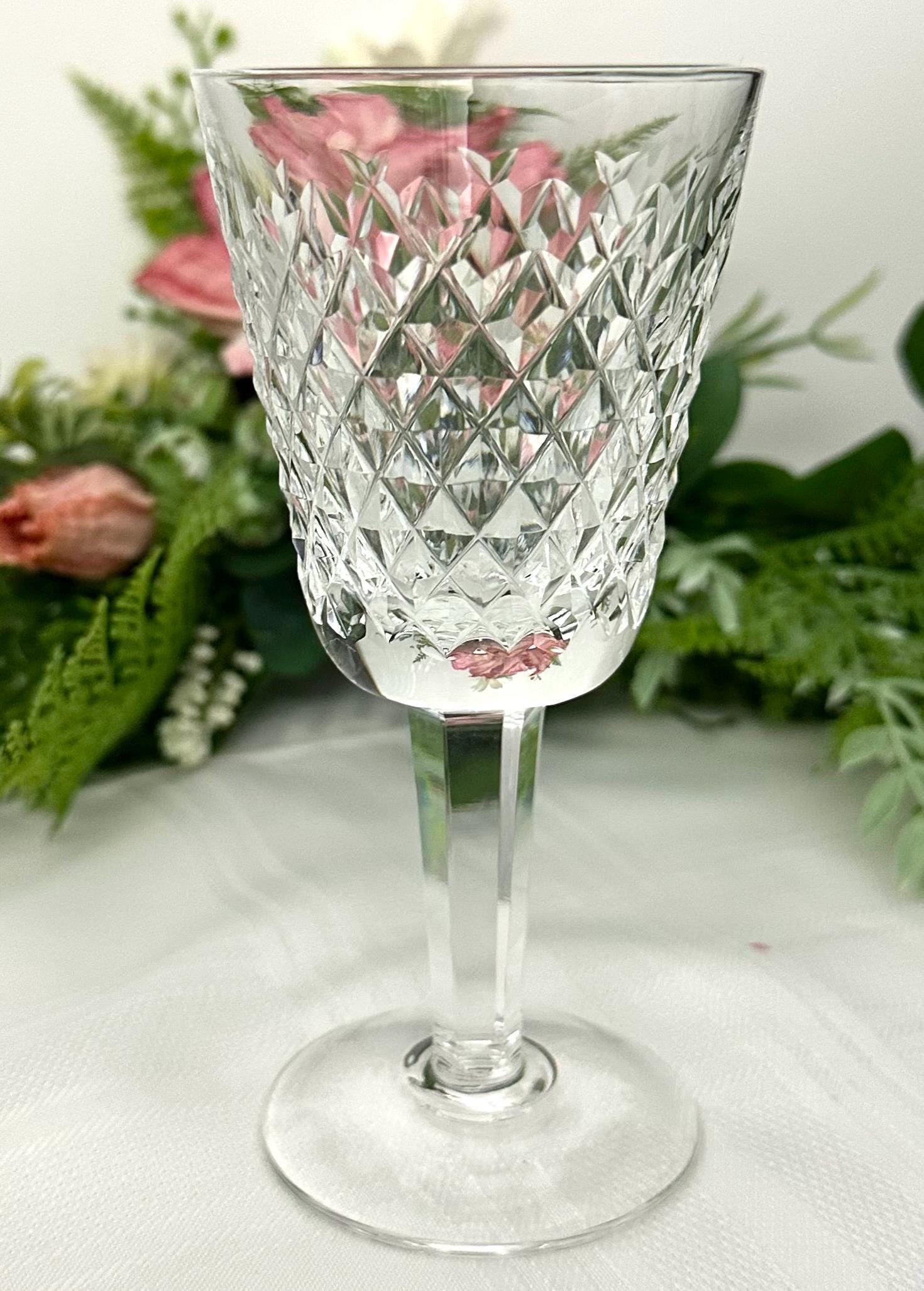 Elevate your collection with this Alana Waterford Crystal White Wine Glass. This is for an elegantly crafted glass designed to impress. Made in Ireland, the crystal's pristine clarity is complemented by the sophisticated diamond cuts, creating a traditional look that's both timeless and chic. The glass has a height of 5.5 inches and a diameter of 2 5/8 inches approximately.