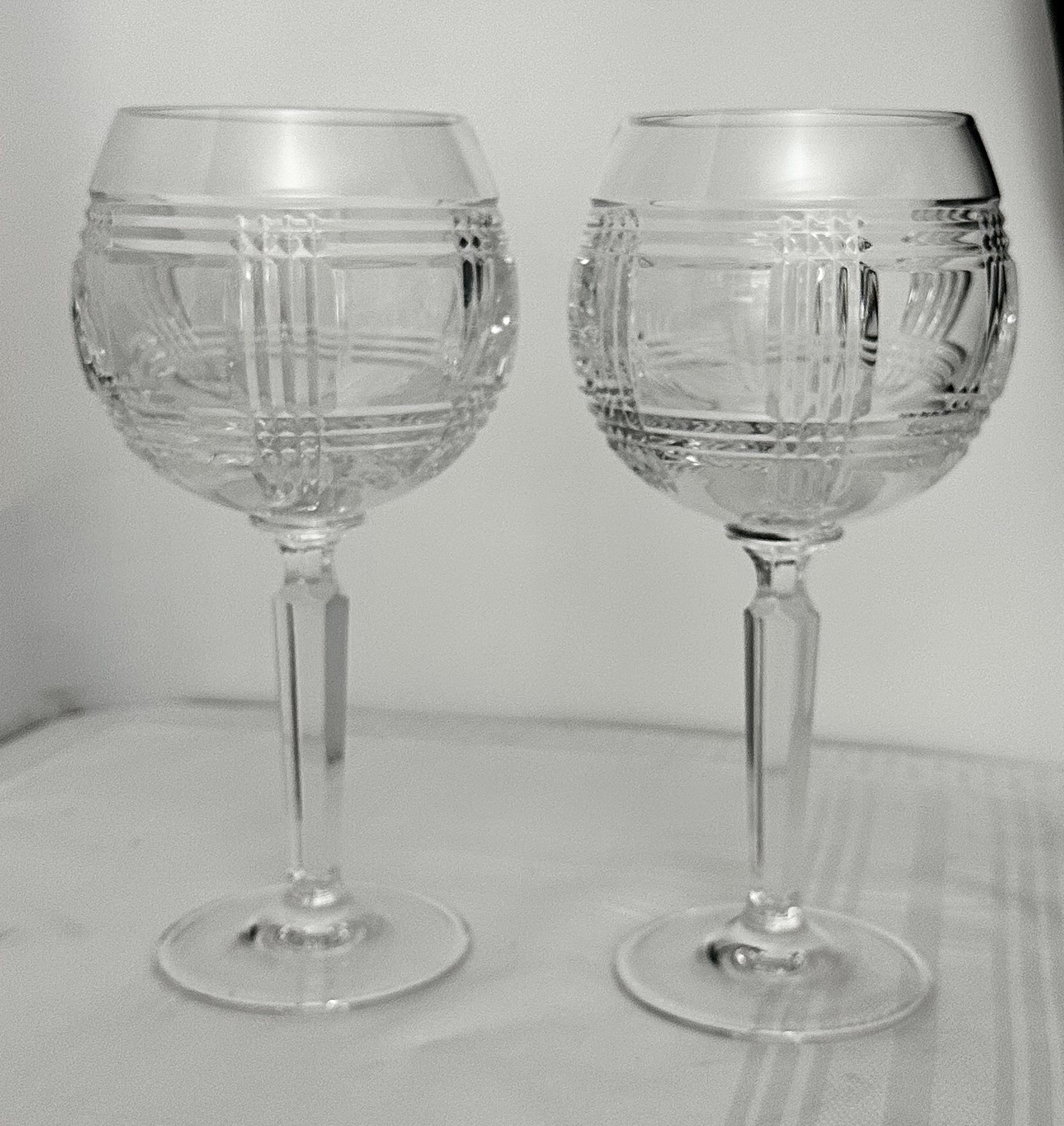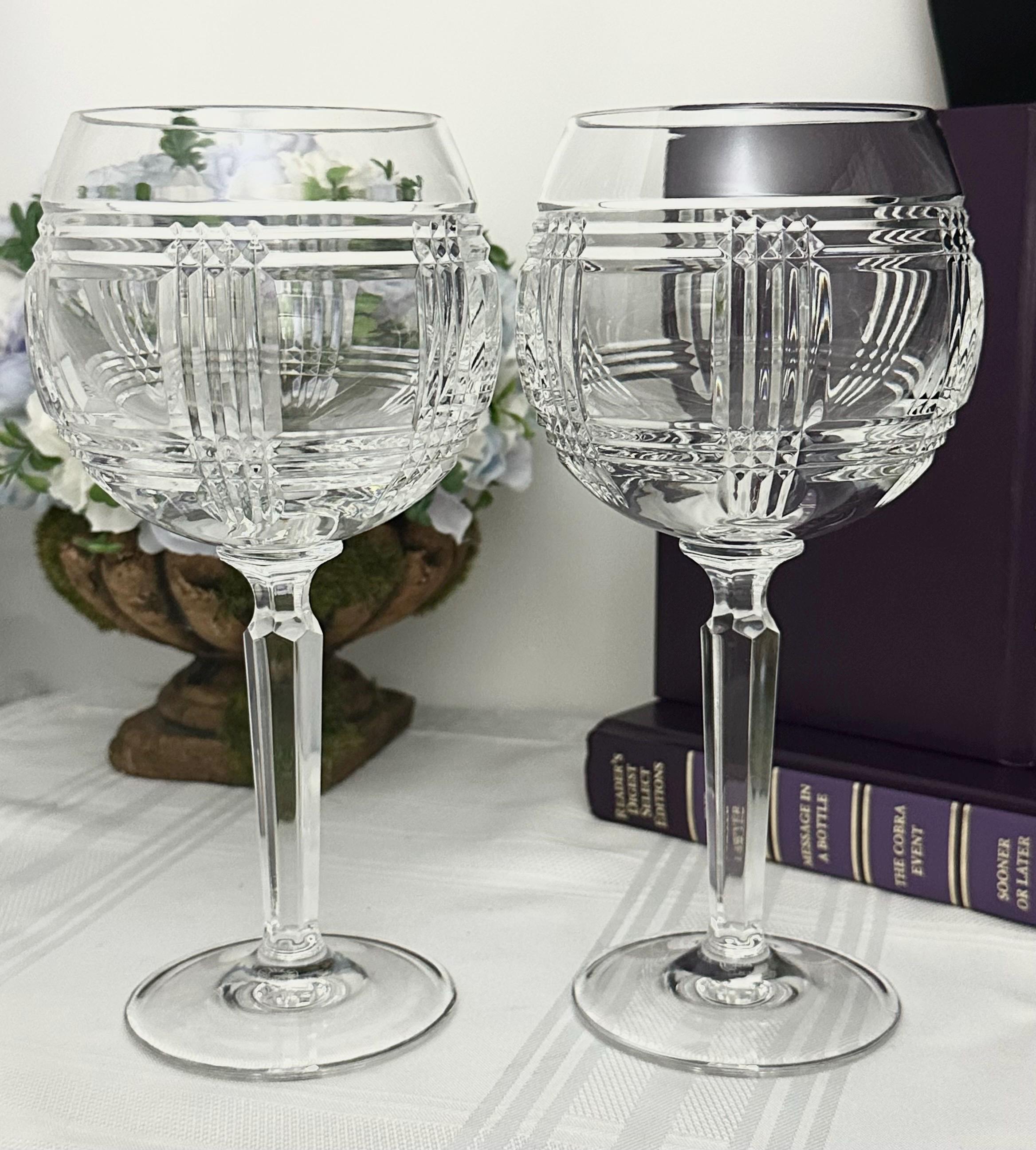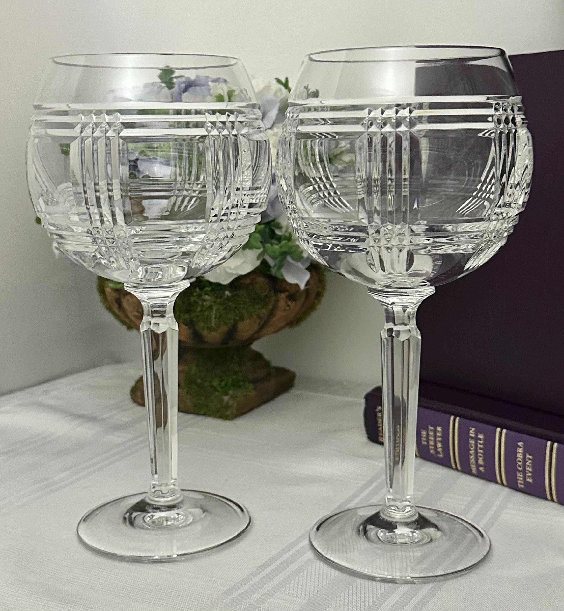 This is for 2 Goblet Birdbath Ralph Lauren Glen Plaid elegant glasses. These are a very large glass that measures: 8.75 inches tall x 3.25 inches in diameter and holds 14 Oz of liquid. These were first produced starting in 1995 and s discontinuation date of 2002.