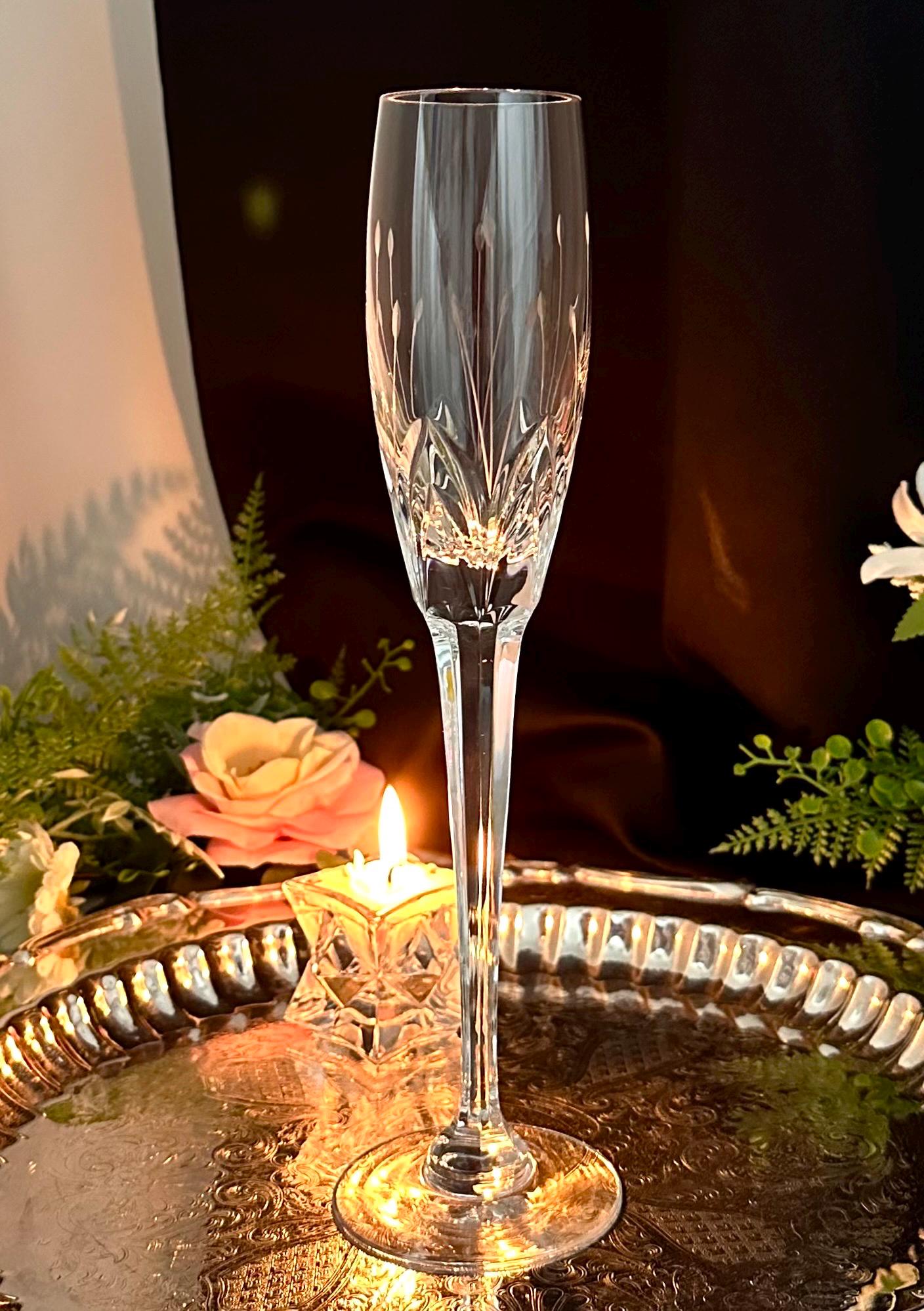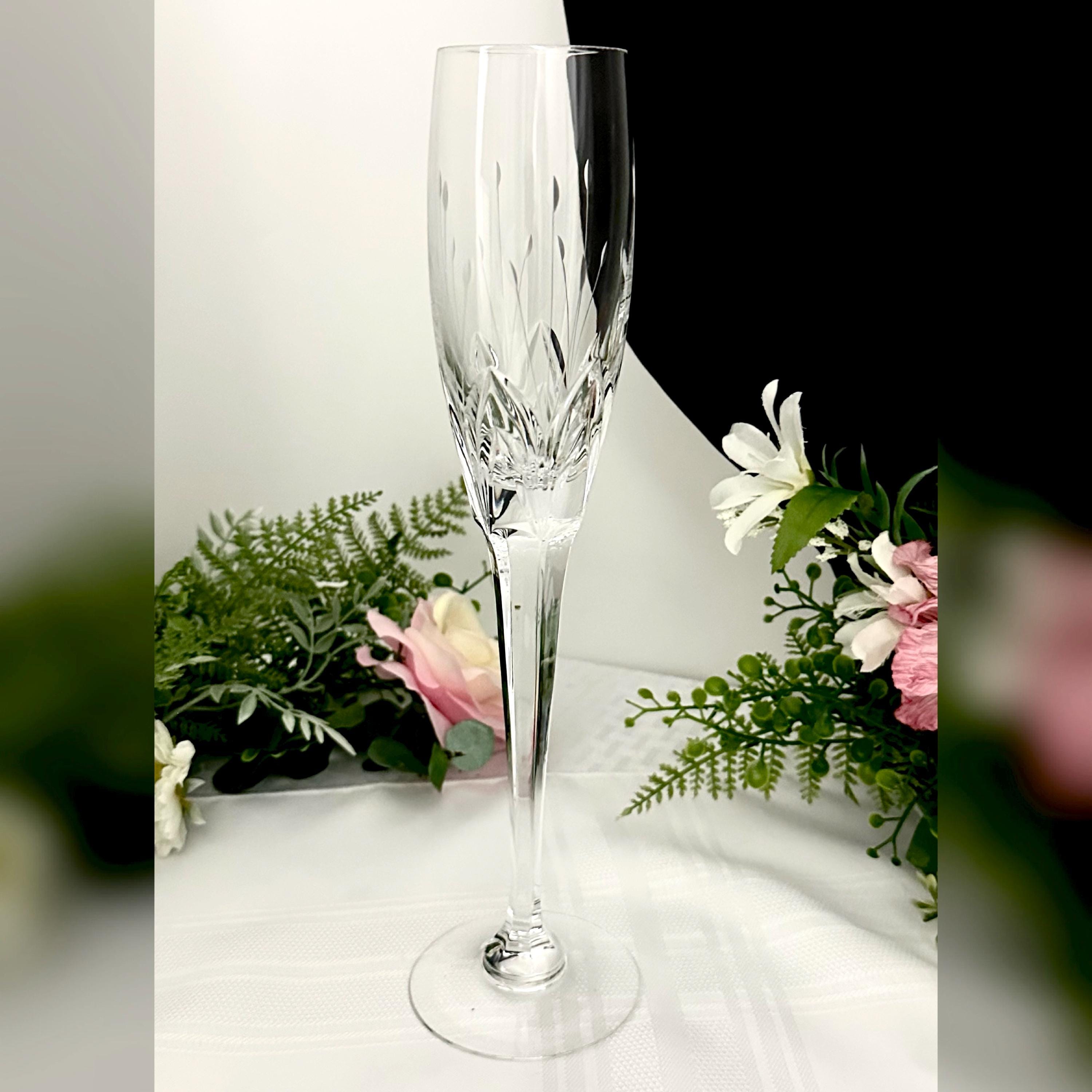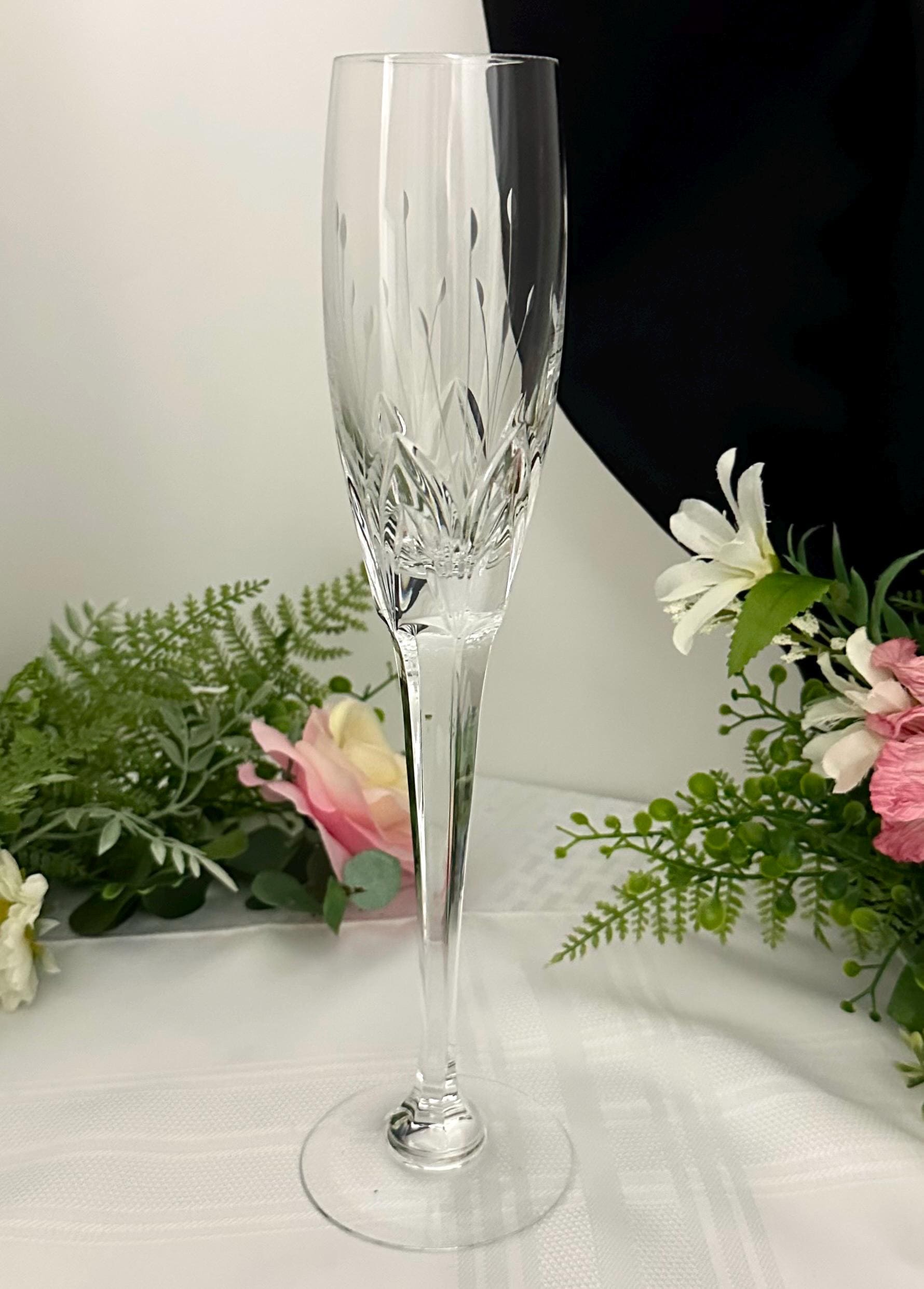This is for 1 Mikasa Petit Points Champagne Glass. This toasting flute was produced from 1995 to 2004 and are now discontinued. The champagne flute is decorated with plants / small buds - flowers and leaves on the sides of the bowl. The champagne glass measures: 10.75 inches tall x 1 7/8 inches in diameter. This will be lovely keep sake from any special celebration.