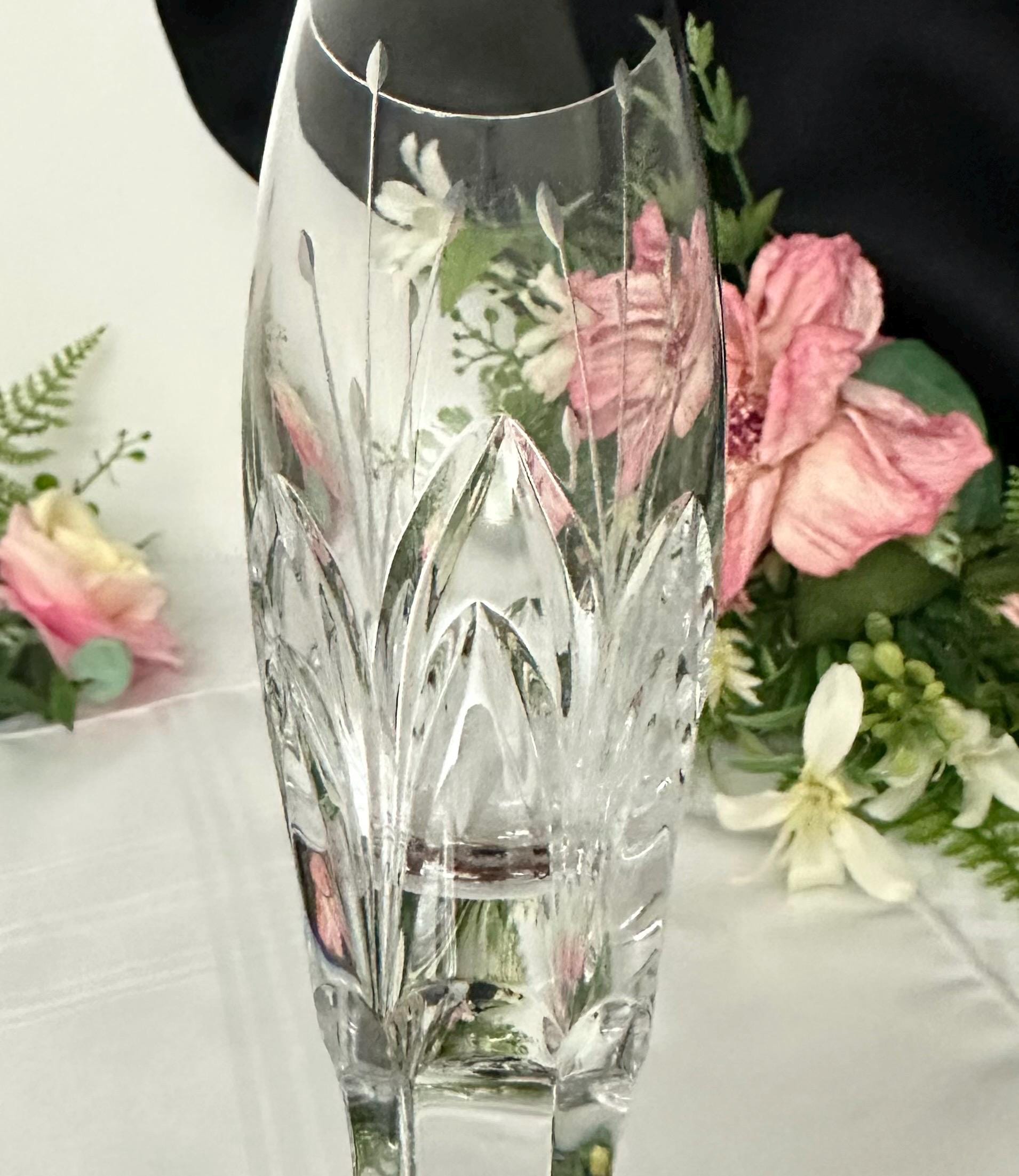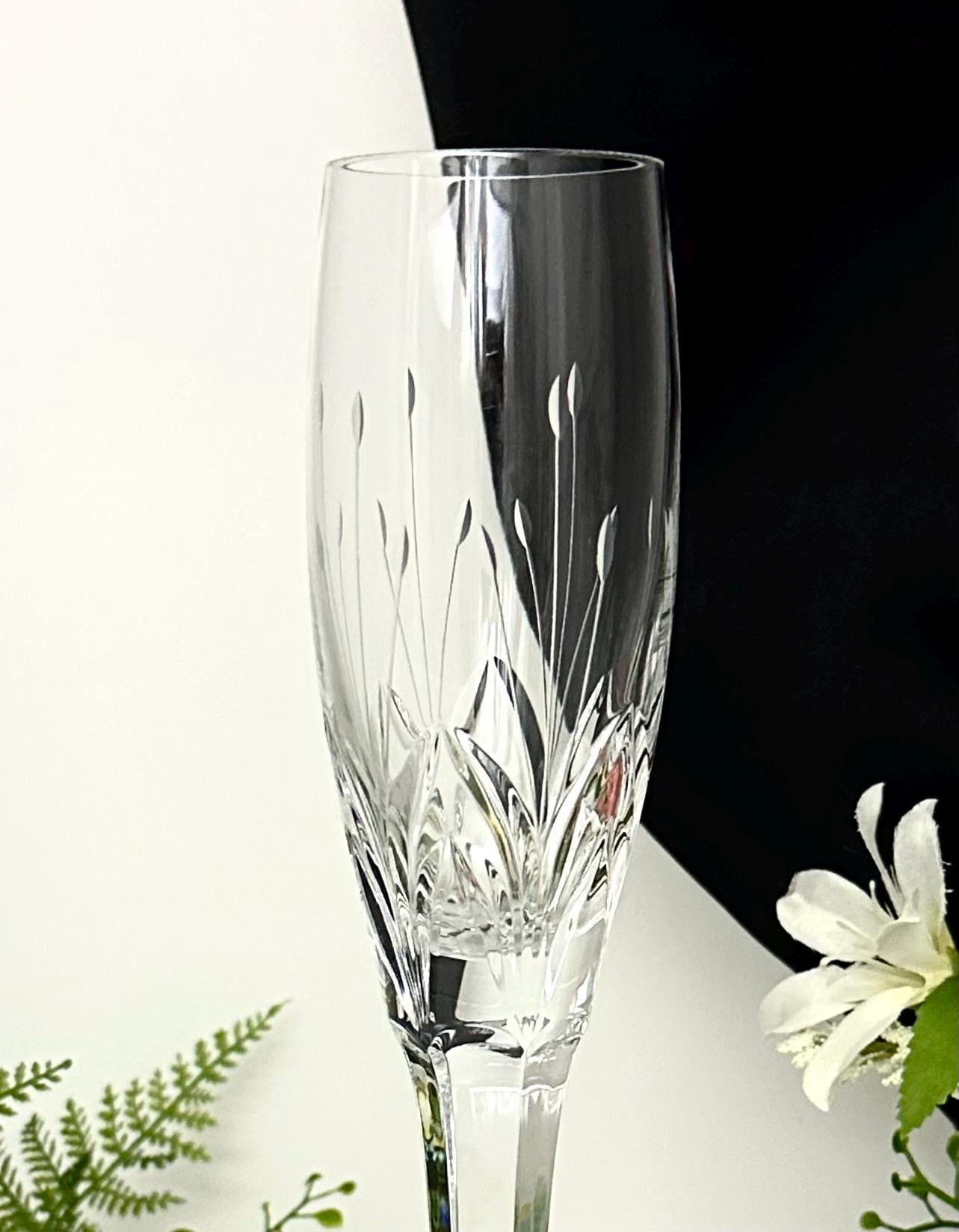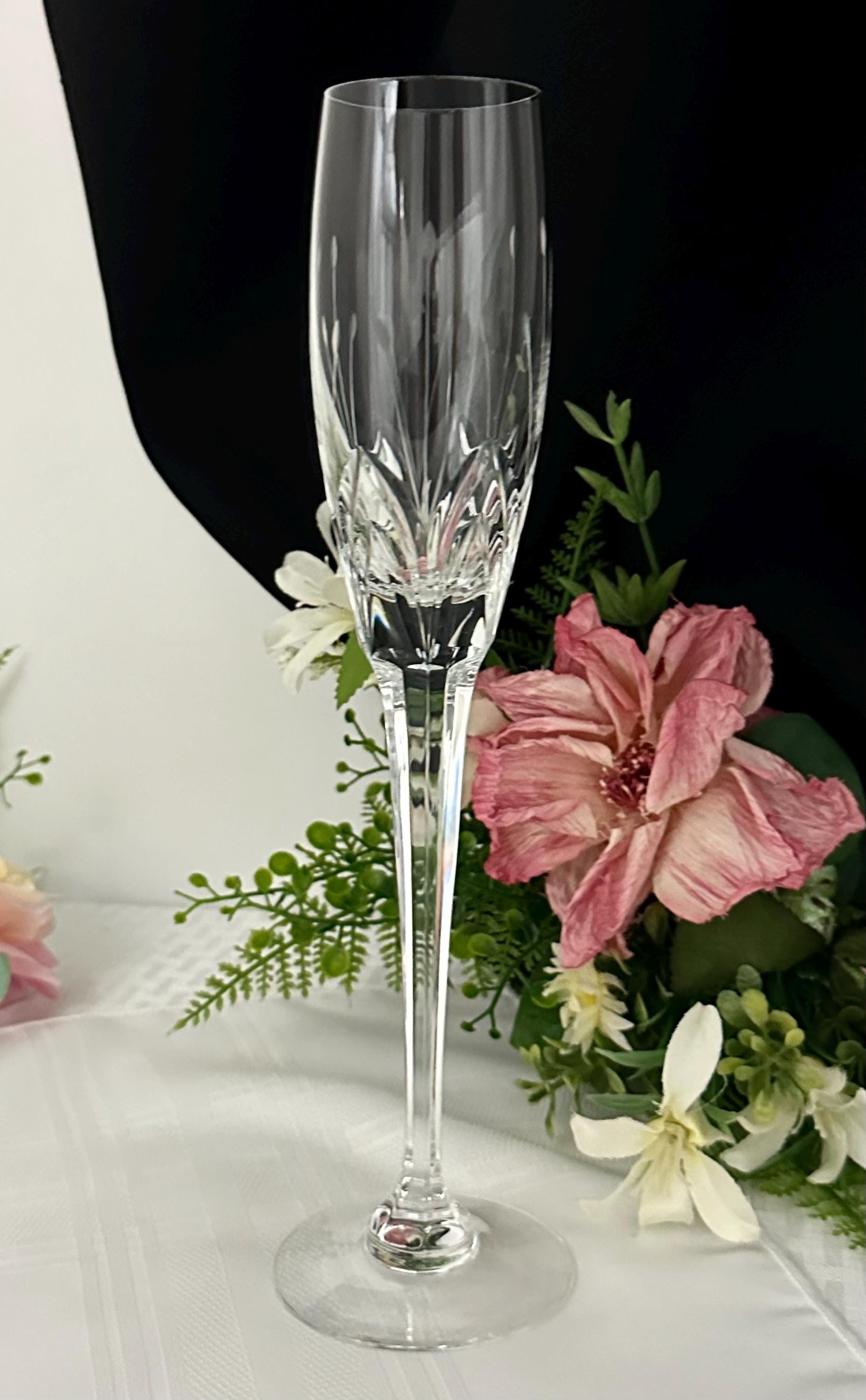 This is for 1 Mikasa Petit Points Champagne Glass. This toasting flute was produced from 1995 to 2004 and are now discontinued. The champagne flute is decorated with plants / small buds - flowers and leaves on the sides of the bowl. The champagne glass measures: 10.75 inches tall x 1 7/8 inches in diameter. This will be lovely keep sake from any special celebration.