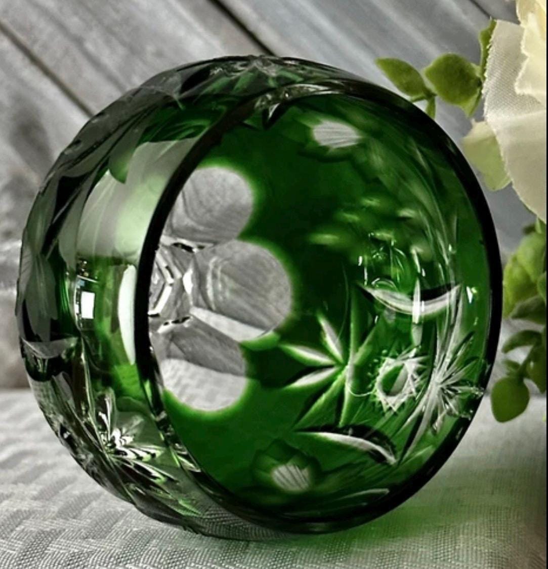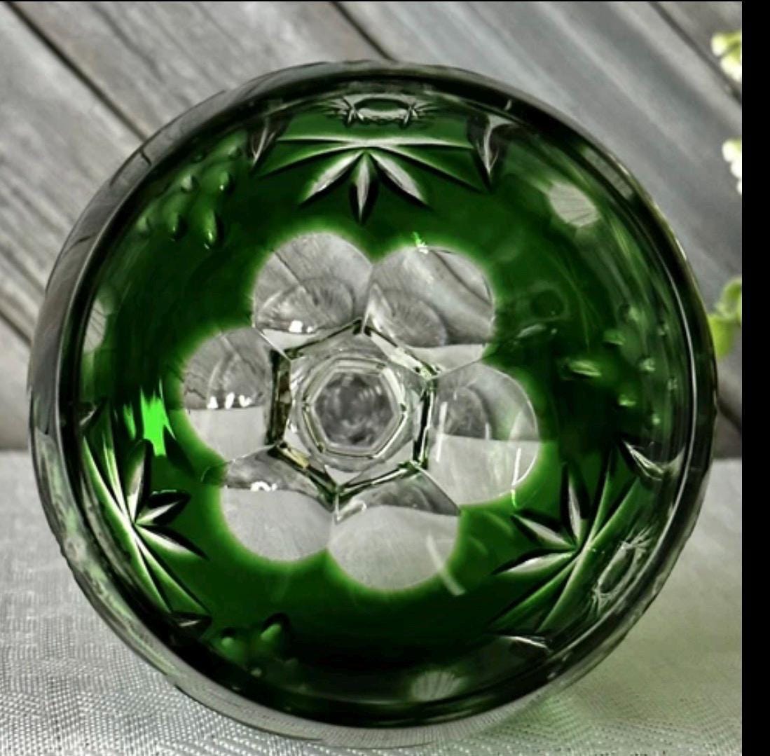 This is for a wonderful glass from Nachtmann in the Traube pattern. This glass is in the Wine Glass size and measures: 6 7/8 inches tall. Included is Wine Goblets in the Emerald Green color.