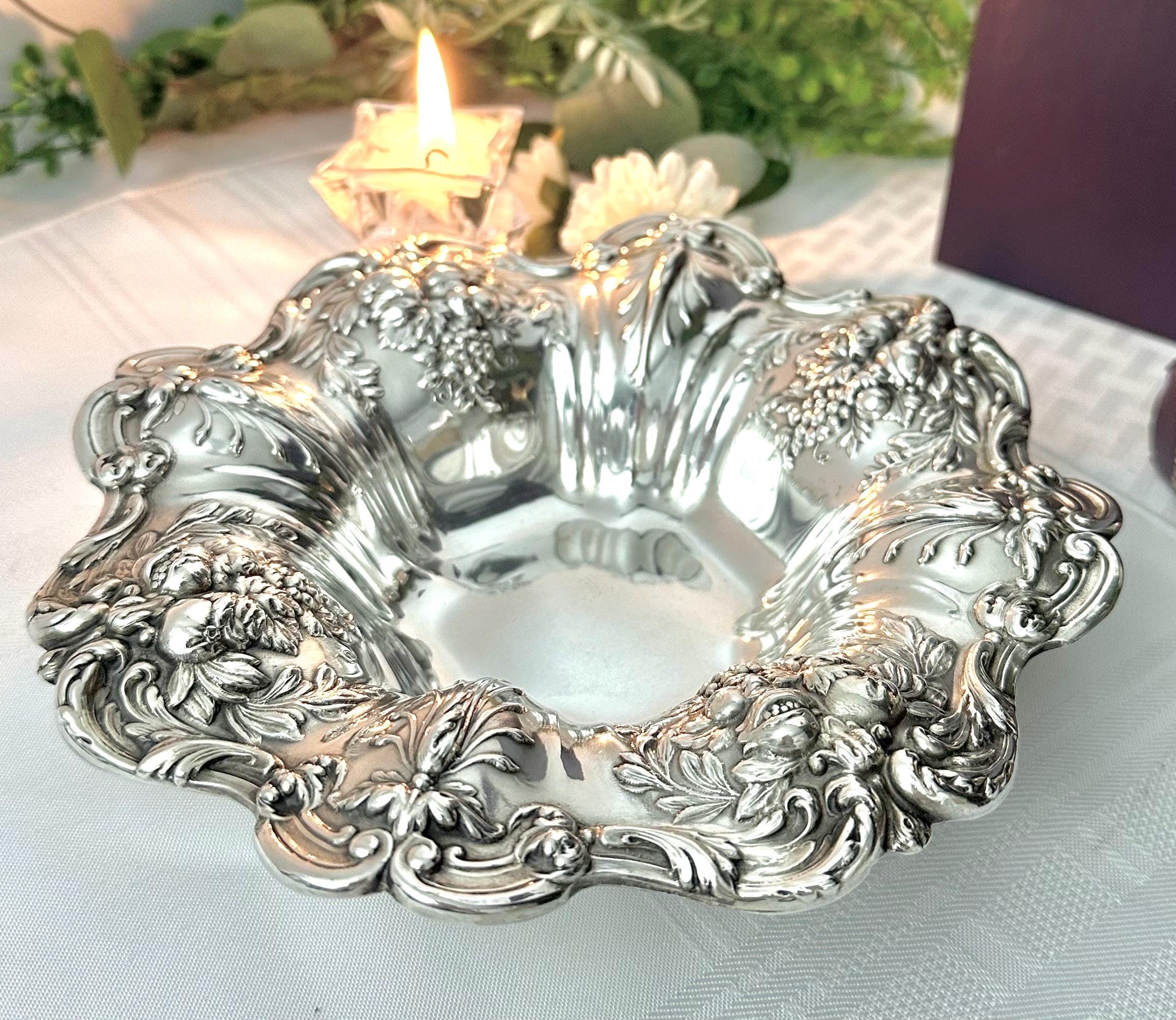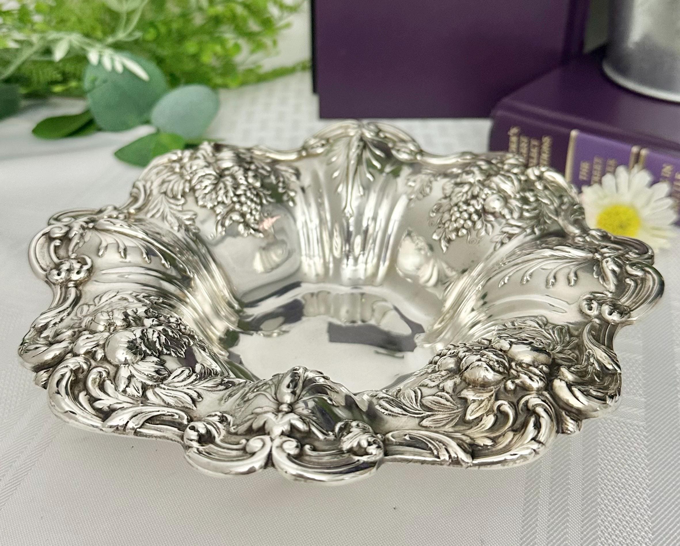 With its intricate detailing and classic design, this sterling silver bowl would make a stunning centerpiece for any dining table or special occasion. This piece is a timeless heirloom to be enjoyed for years to come!
