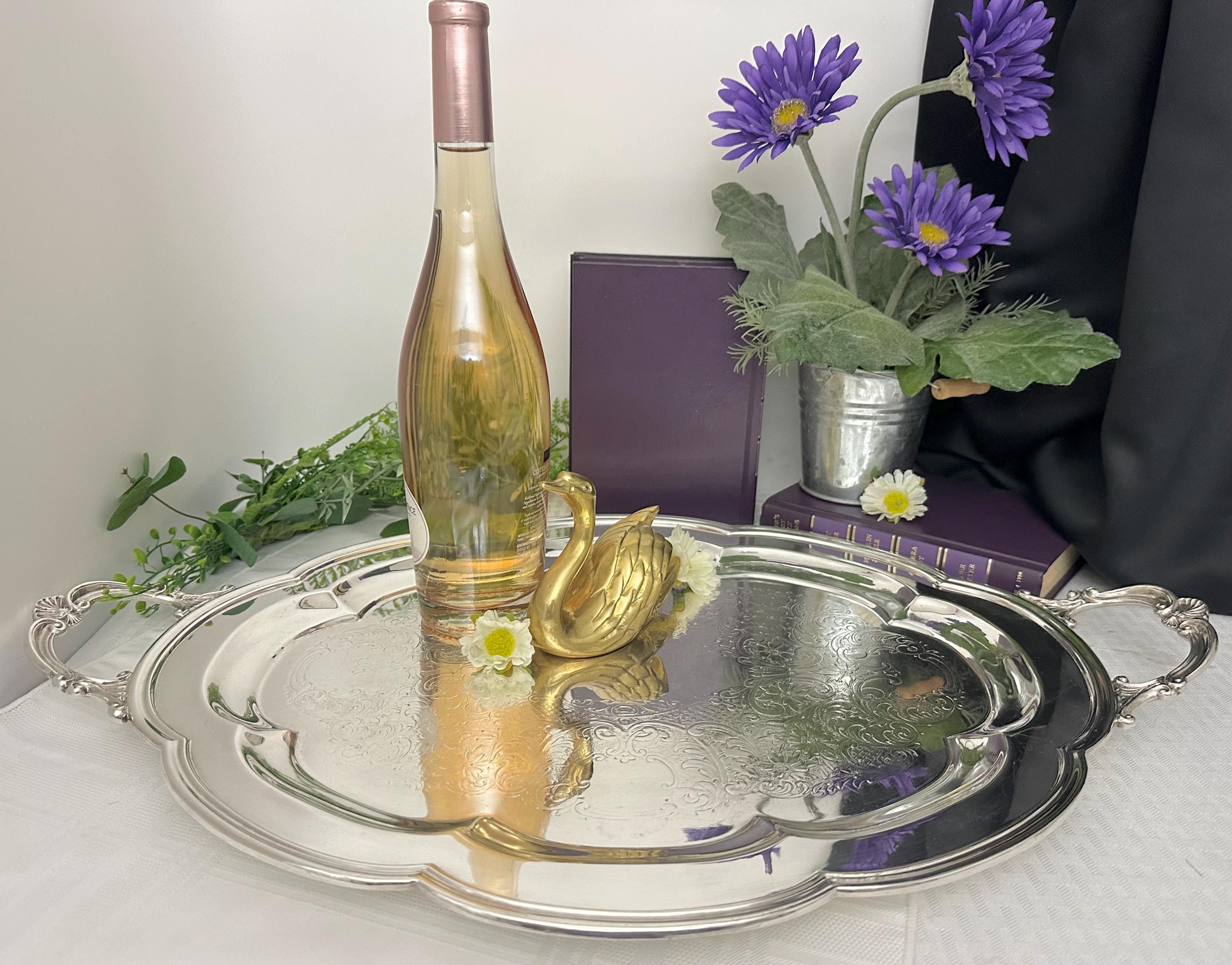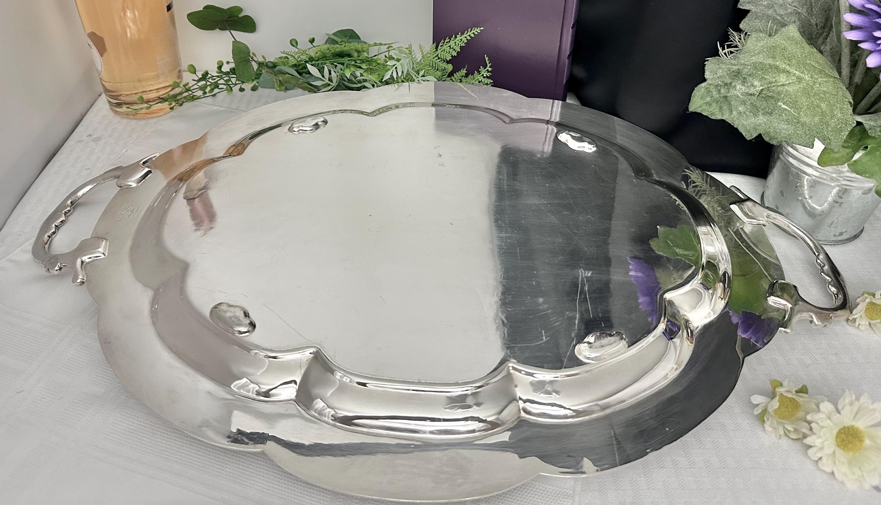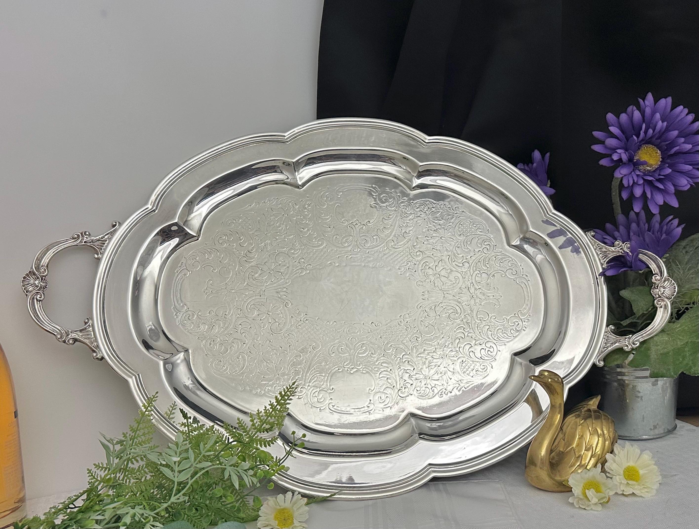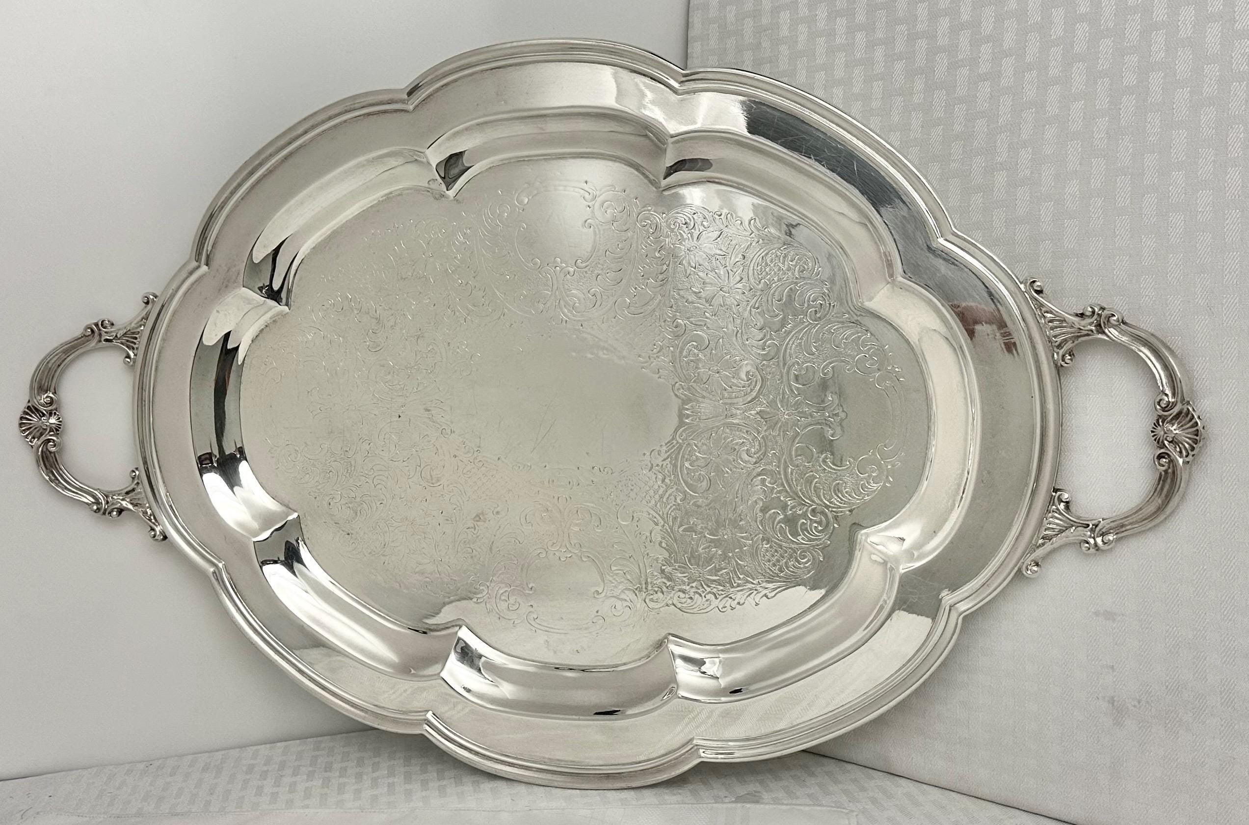 This is for a vintage Middletown Silverware Company (MSC) tea serving / handled butlers tray. This has a lovely Victorian styling and is made of silver plate and was crafted in Conn., United States. This is from late 19th to early 20th century.