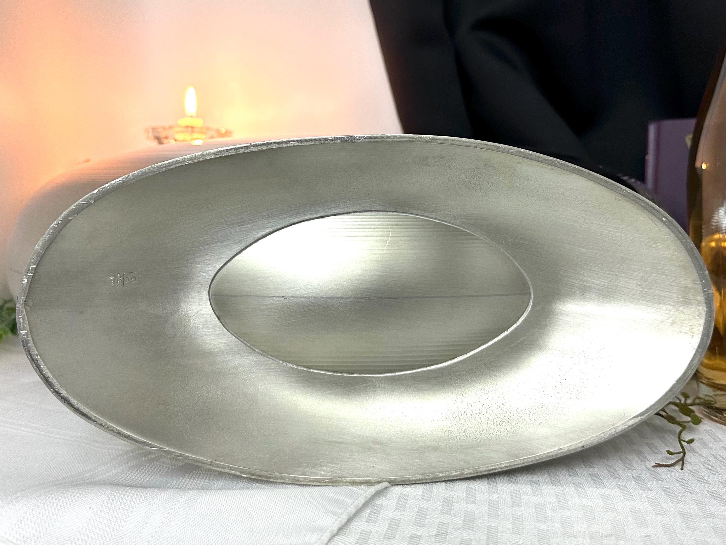 This is for a wonderful RARE Double Magnum Pewter Champagne Cooler by L'Orfevrerie, France. The makers marks are on the foot. The large half moon shape makes the piece very unusual while also being a statement piece for any gathering! This is perfect for those large Magnum bottles to hold 4 - 6 standard wine / champagne bottles to chill and serve from!